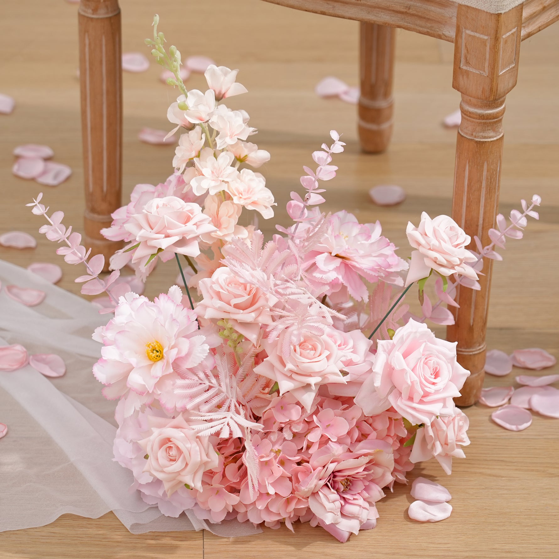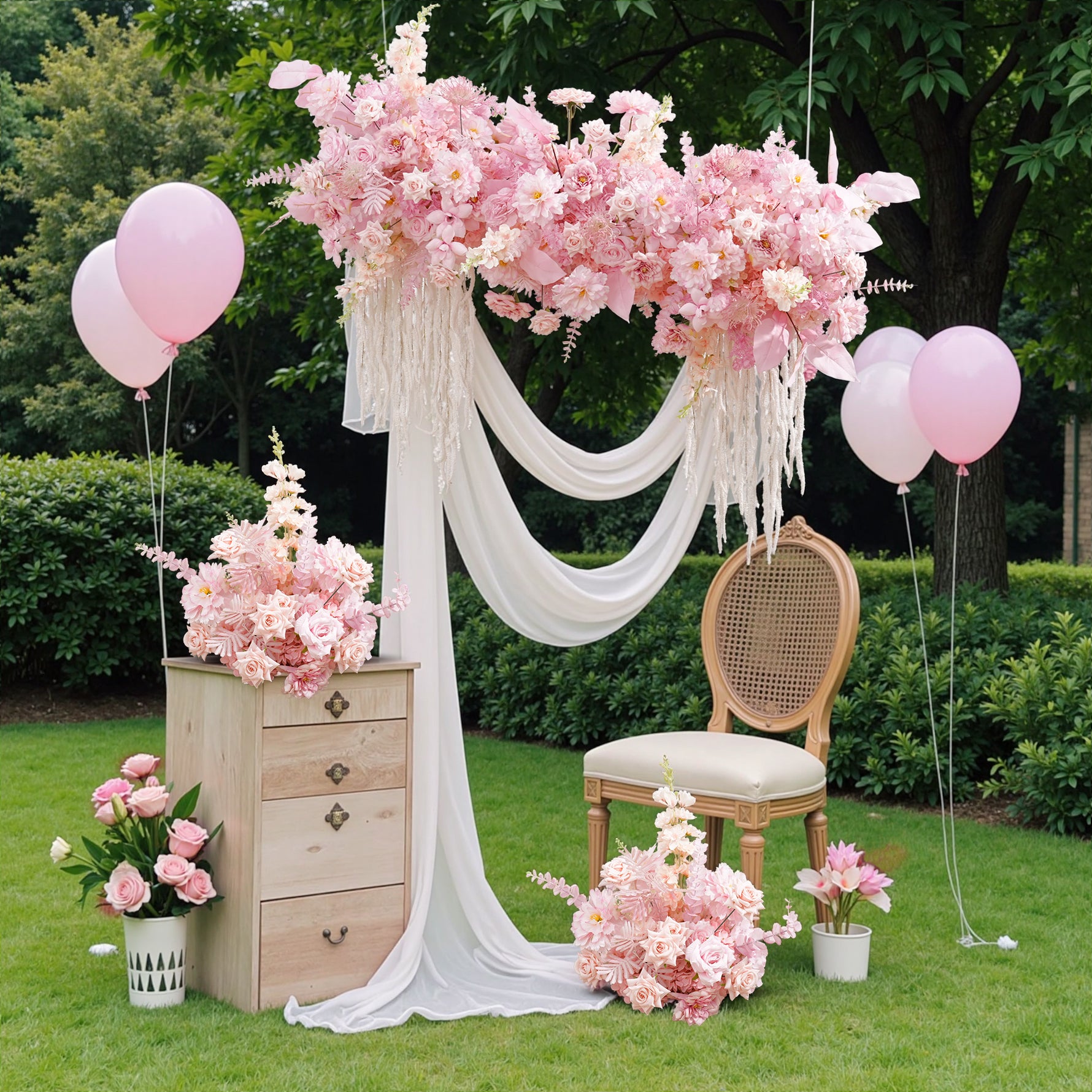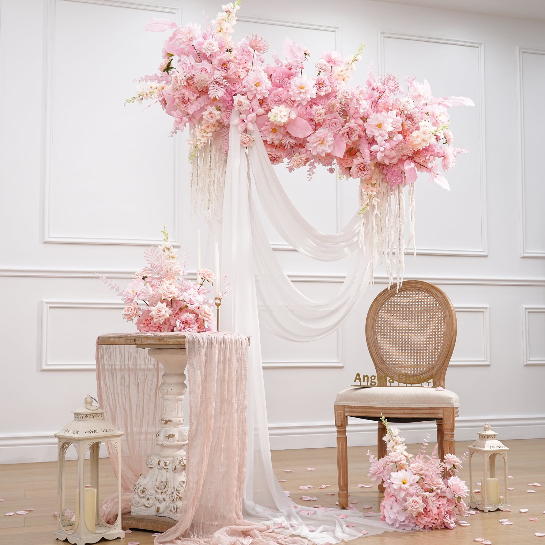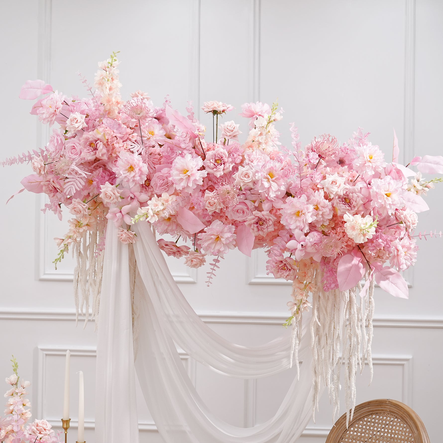 Color Inspiration: This pink floral garland blends romantic roses, elegant chrysanthemums, luxurious peonies, and delicate hyacinths in soft blush tones, accented with champagne gold and creamy white for a dreamy, ethereal look. The mix of matte and satin finishes creates subtle dimension, making it perfect for weddings, parties, and birthdays.