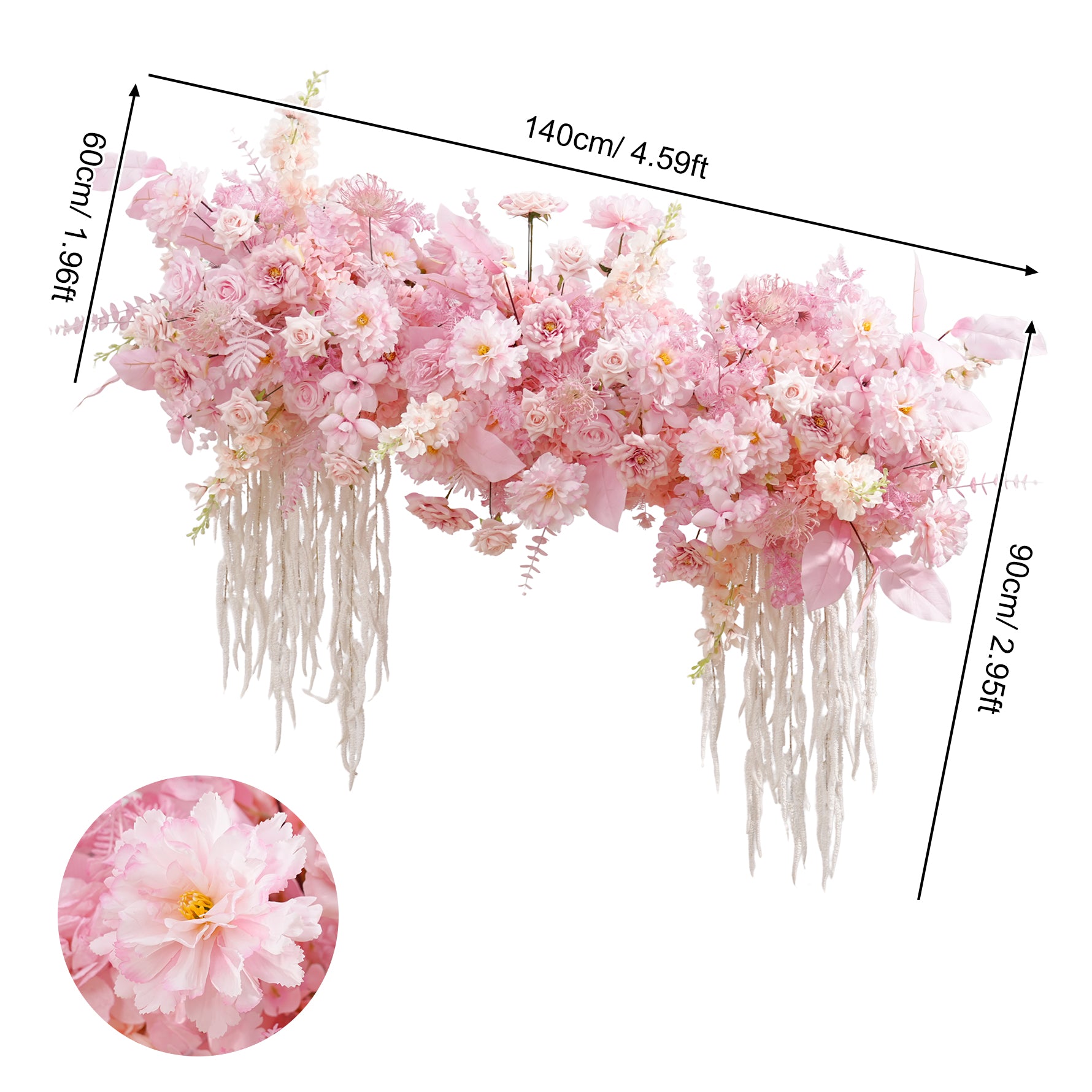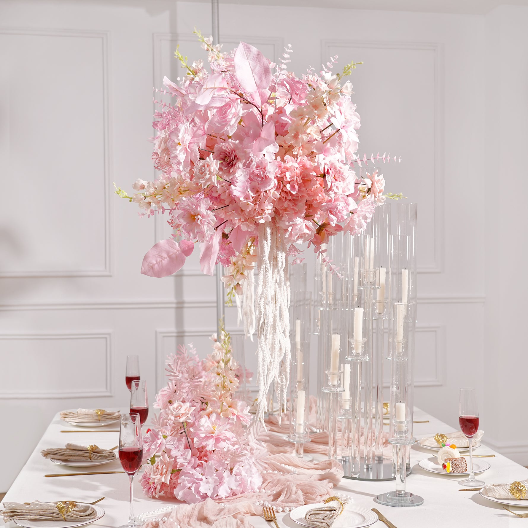 A8968 Pink 2 Sides Floral Row Table Centerpiece Wedding Event Banquet Decor