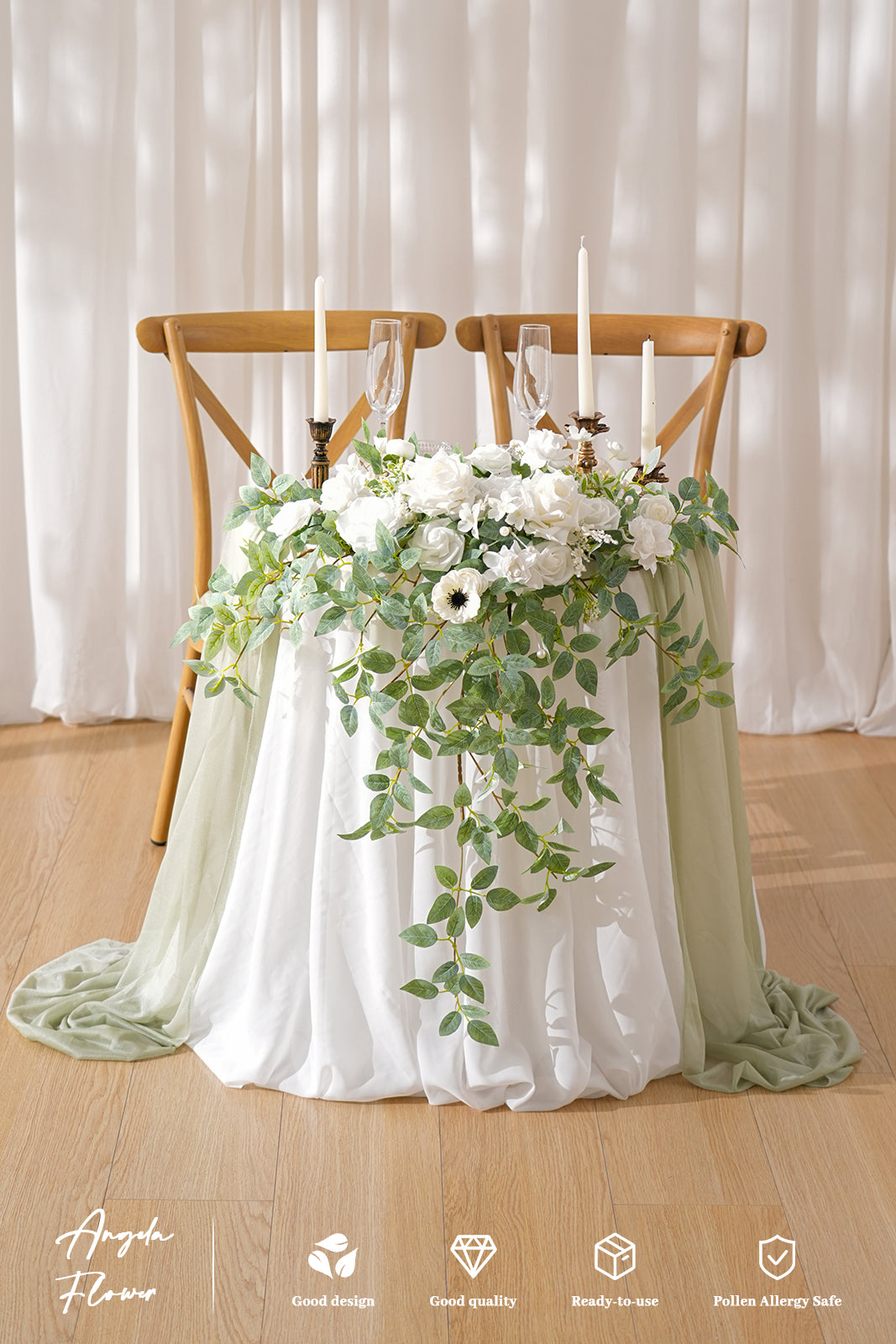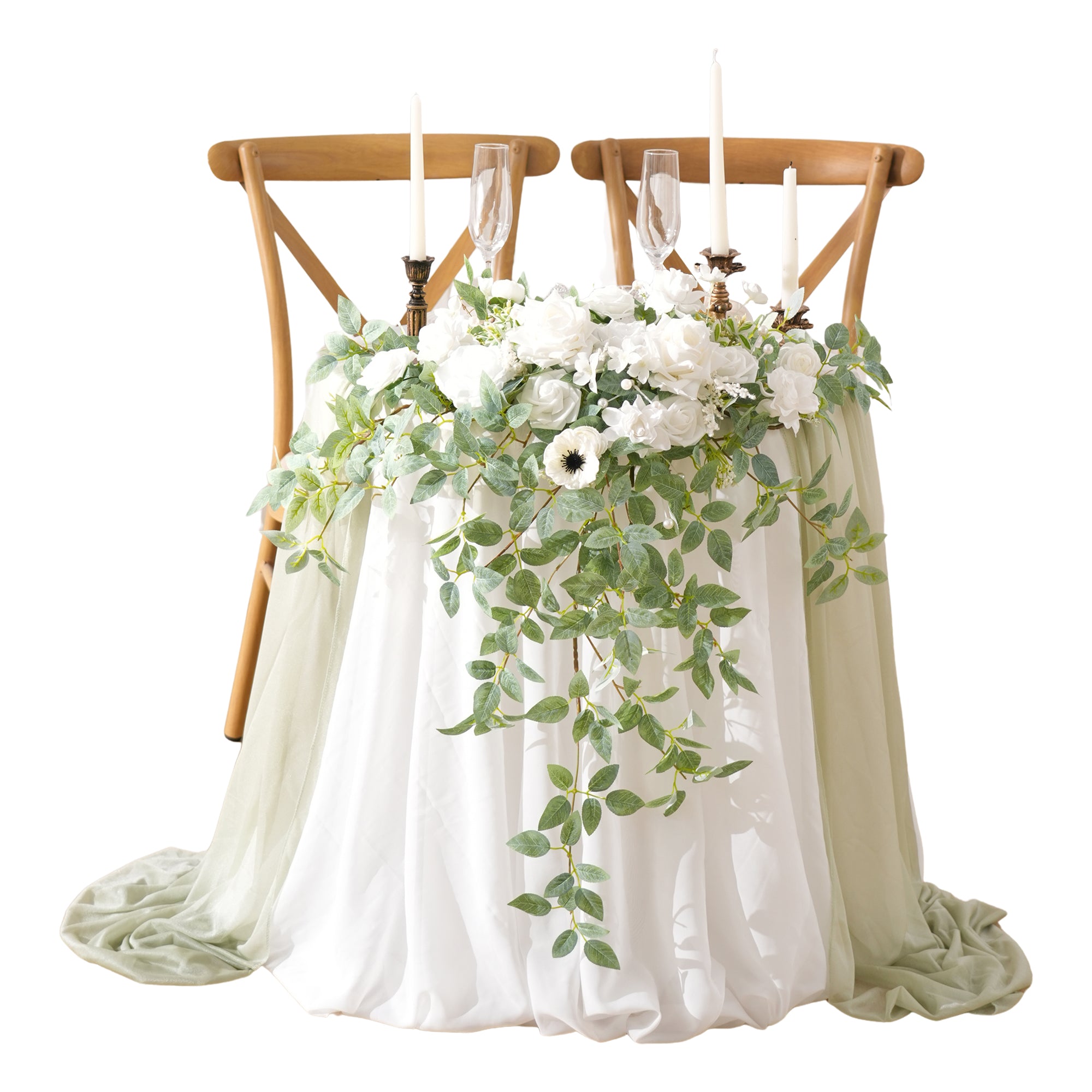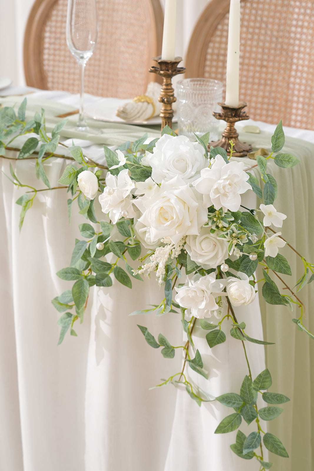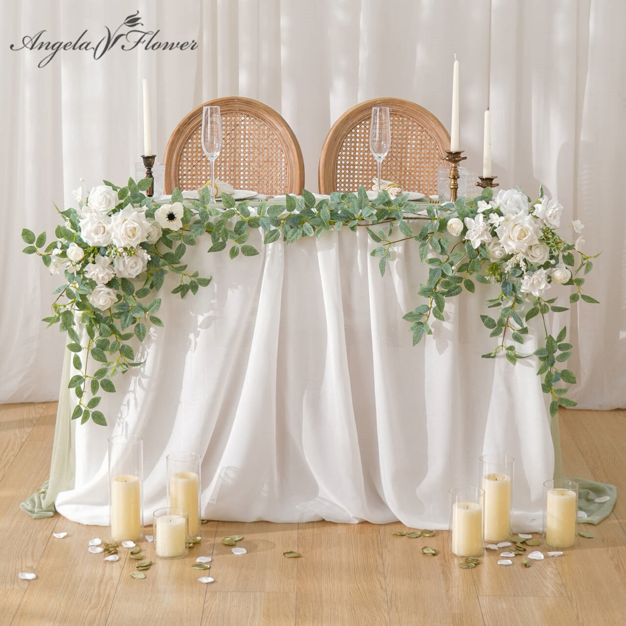A8995 2pcs White Rose Eucalyptus Table Flower Garland Reception Home Decor