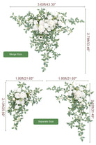 Size: Two artificial flowers can be merged and used together, or they can be used separately, depending on what you like. After the two flowers are combined, the approximate dimensions are 43'' by 33''. One flower corner swag design measures about 21.6"L x 25.5" W, another flower tie measures 21.6"L x 31.4" W.