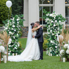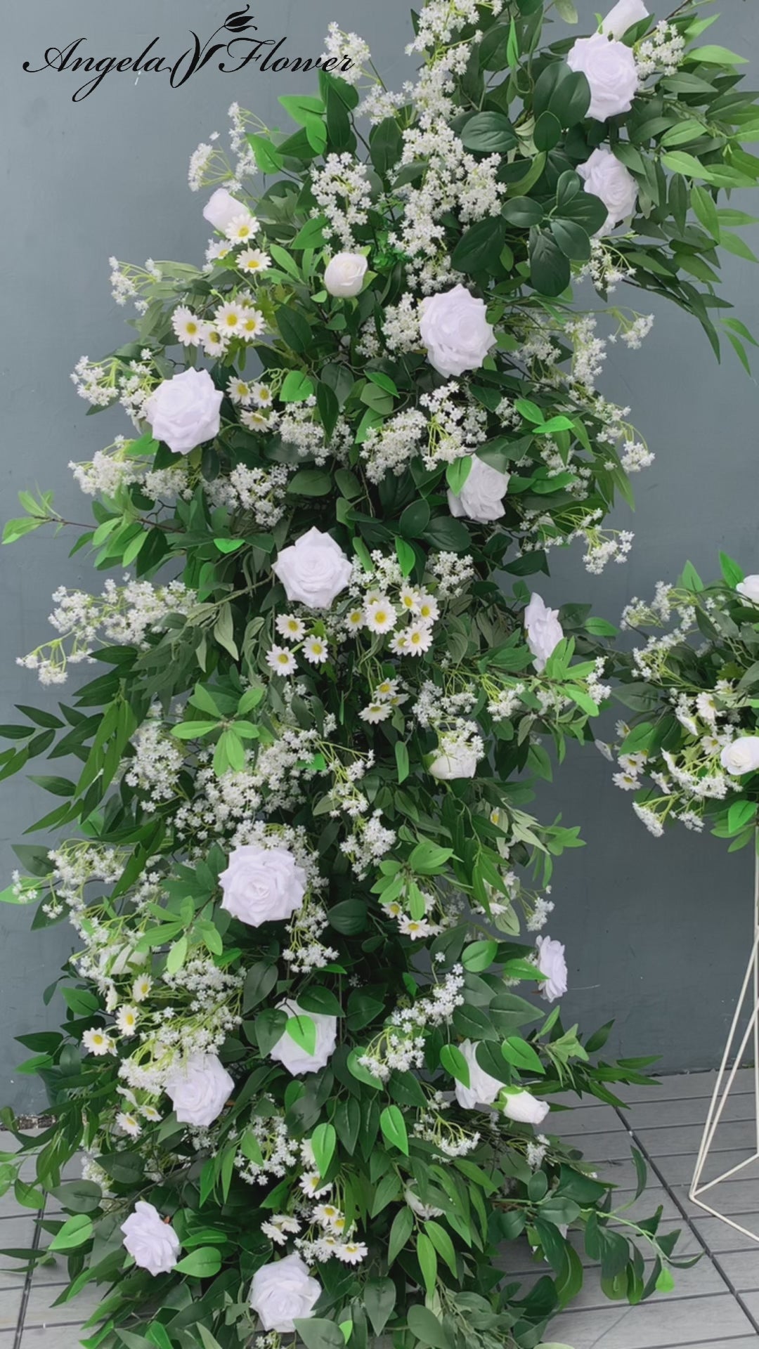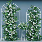 A7768 White Rose Dandelion Green Leaf Aangular Arch Wedding Background Flower