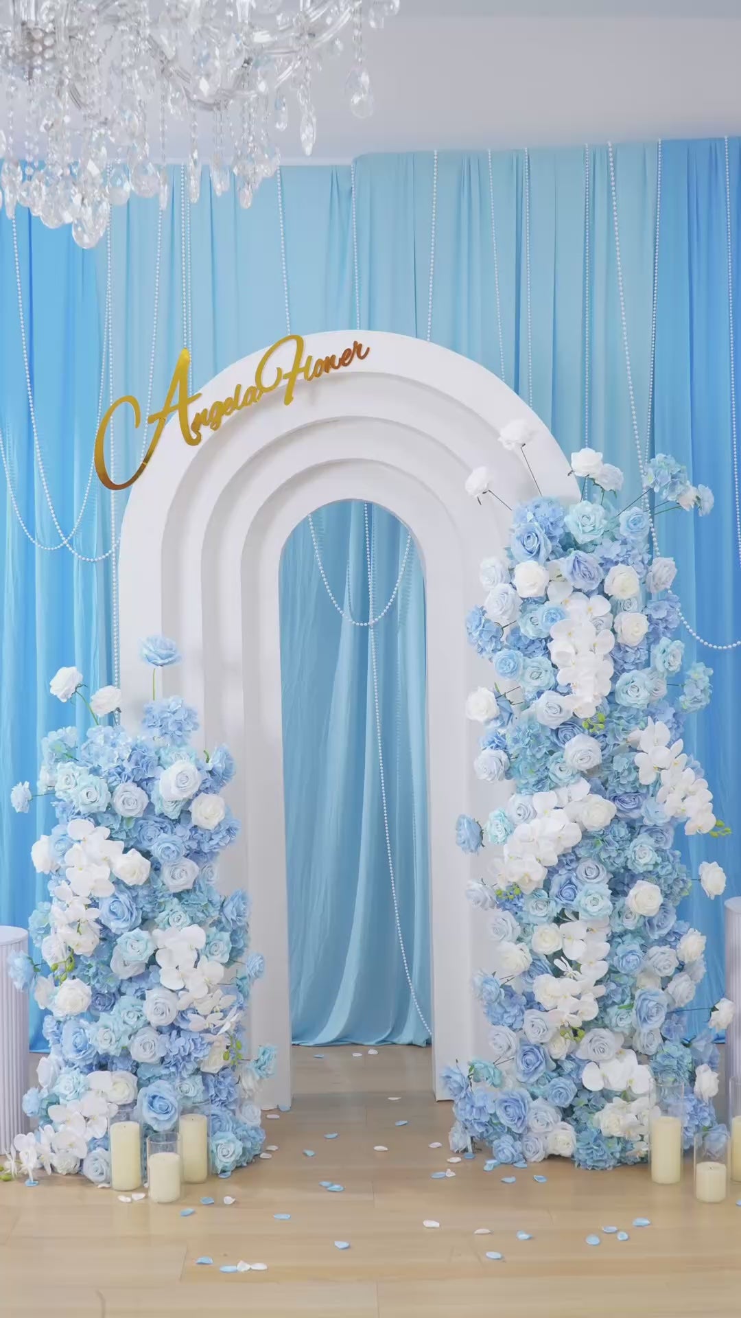 A8955 Blue Rose White Orchid Floral Row KT Board Wedding Backdrop Event Supplies