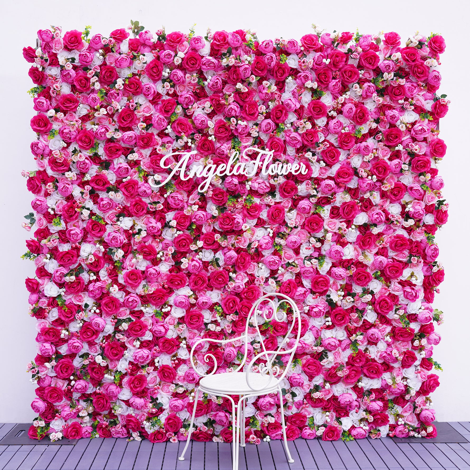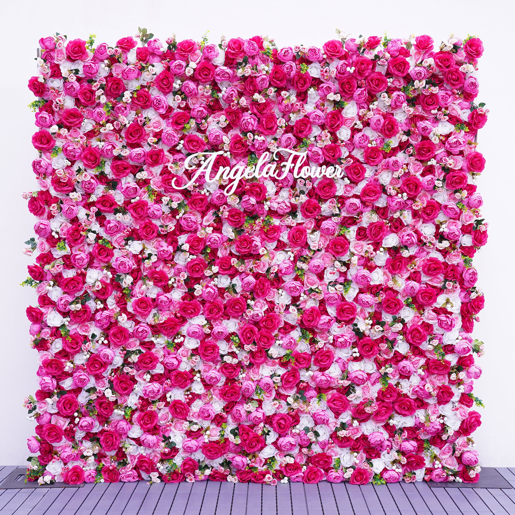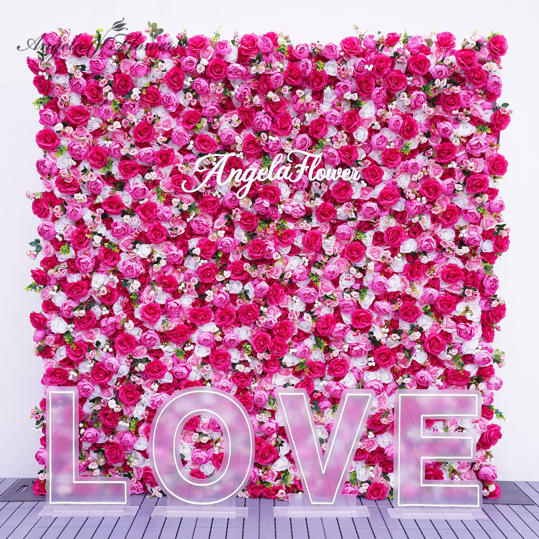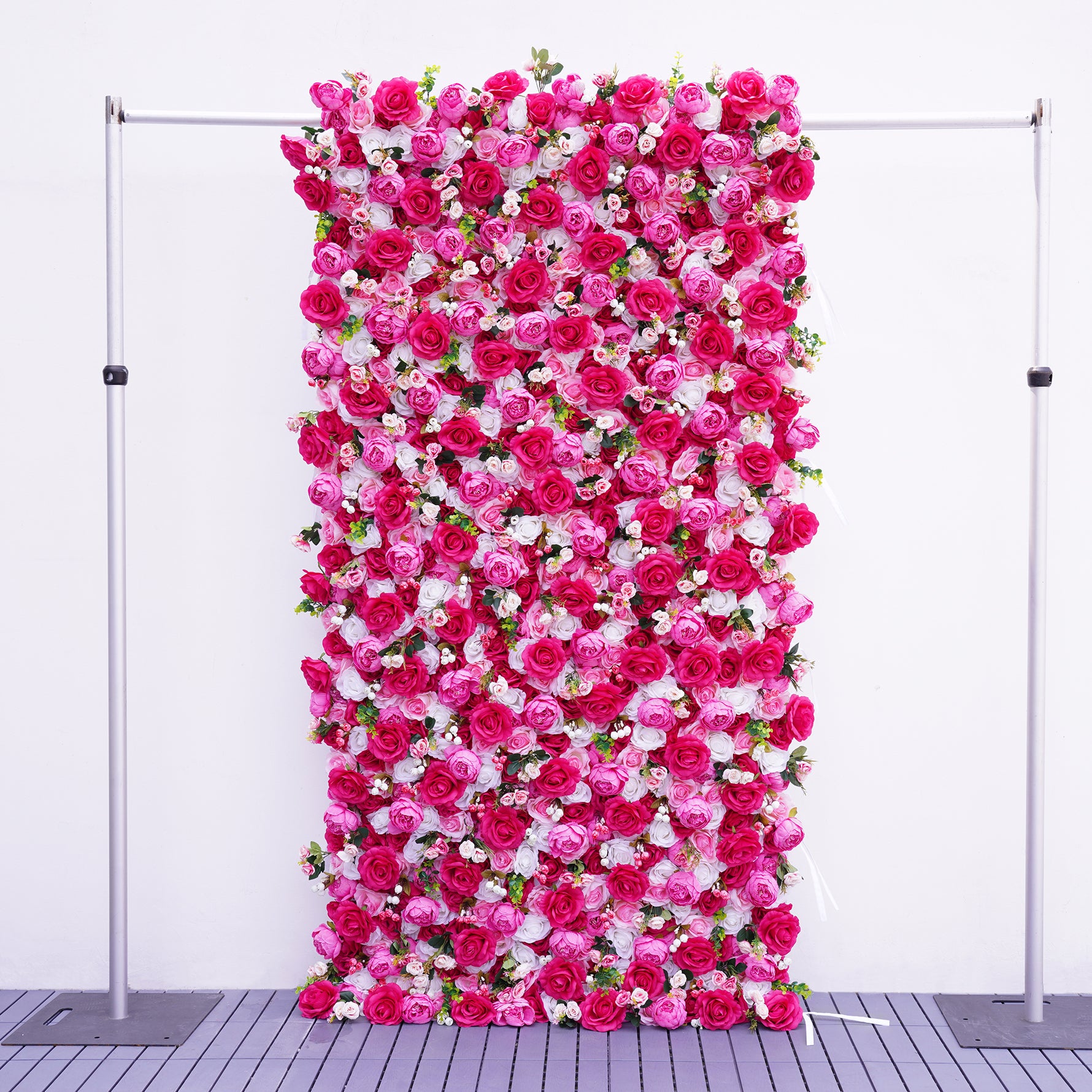 A4787 5D Red Artificial Rose Cloth Flower Wall Wedding Backdrop Fabric Floral Wall