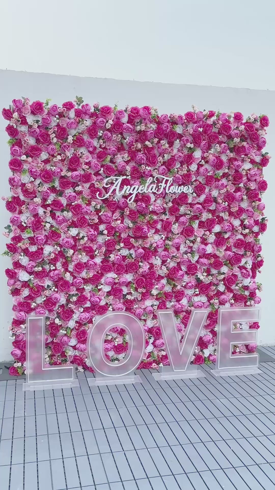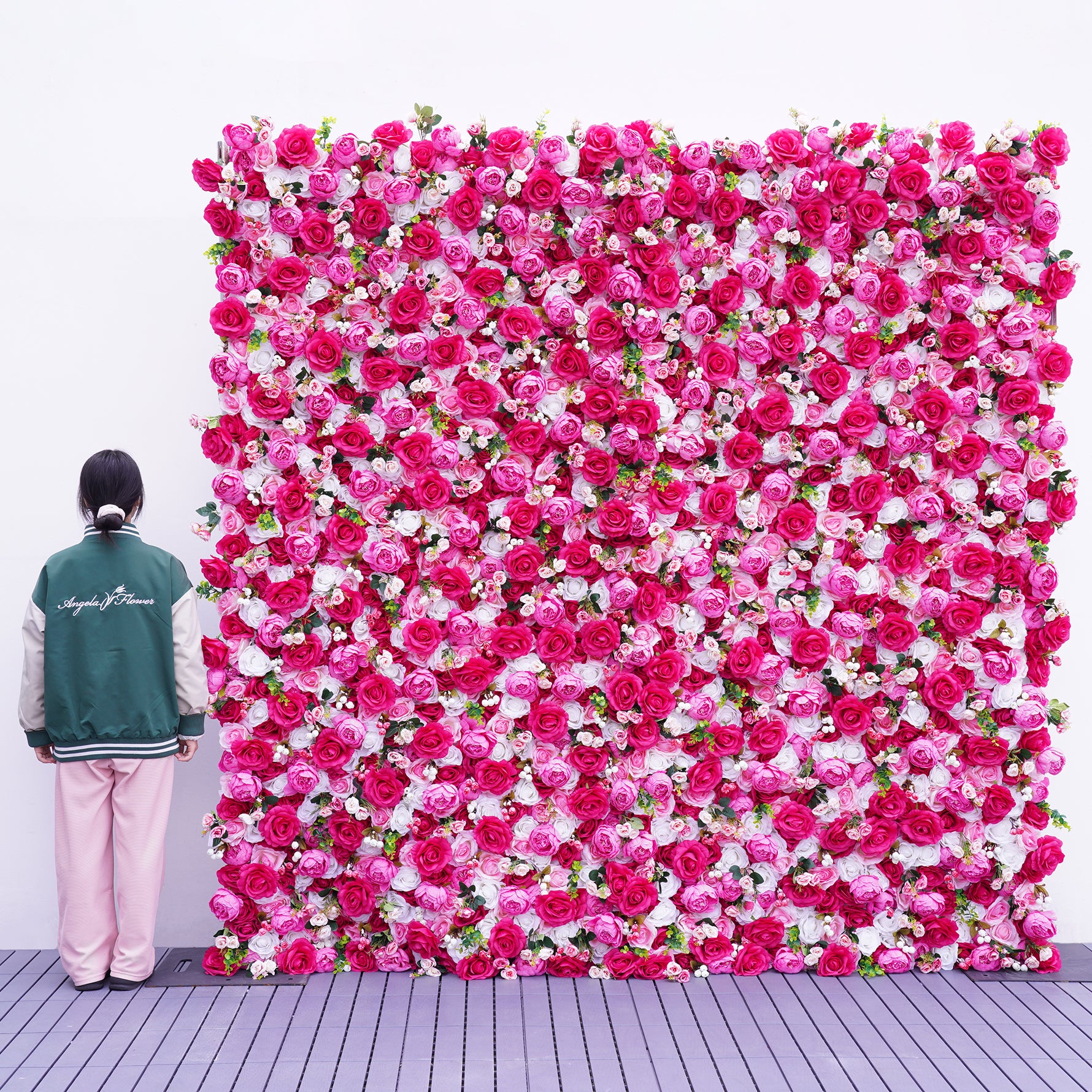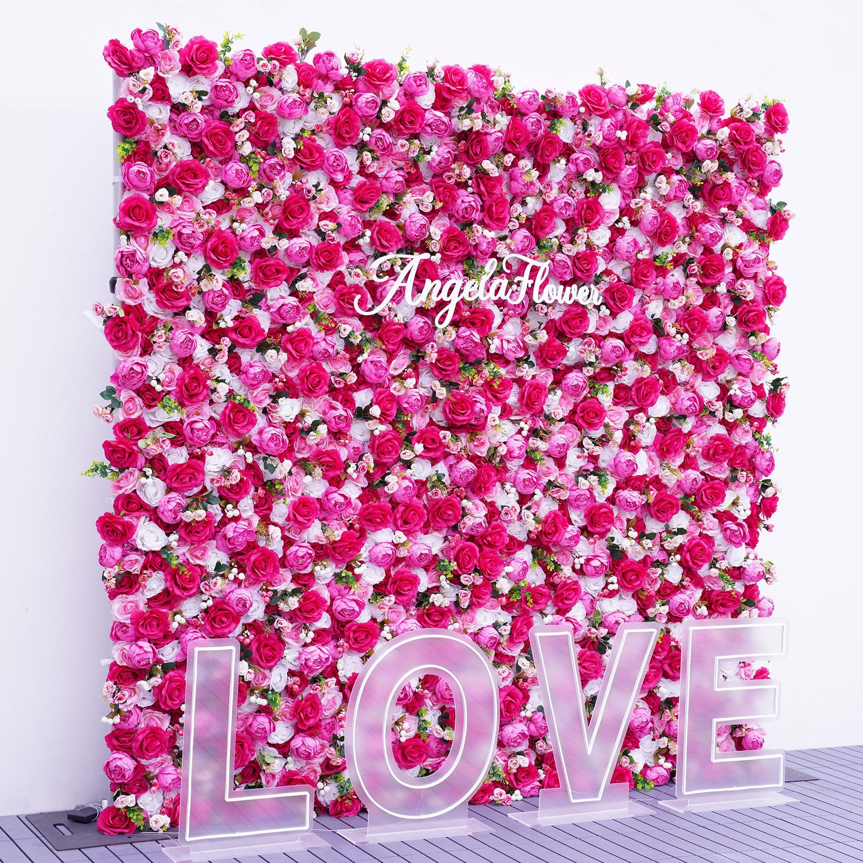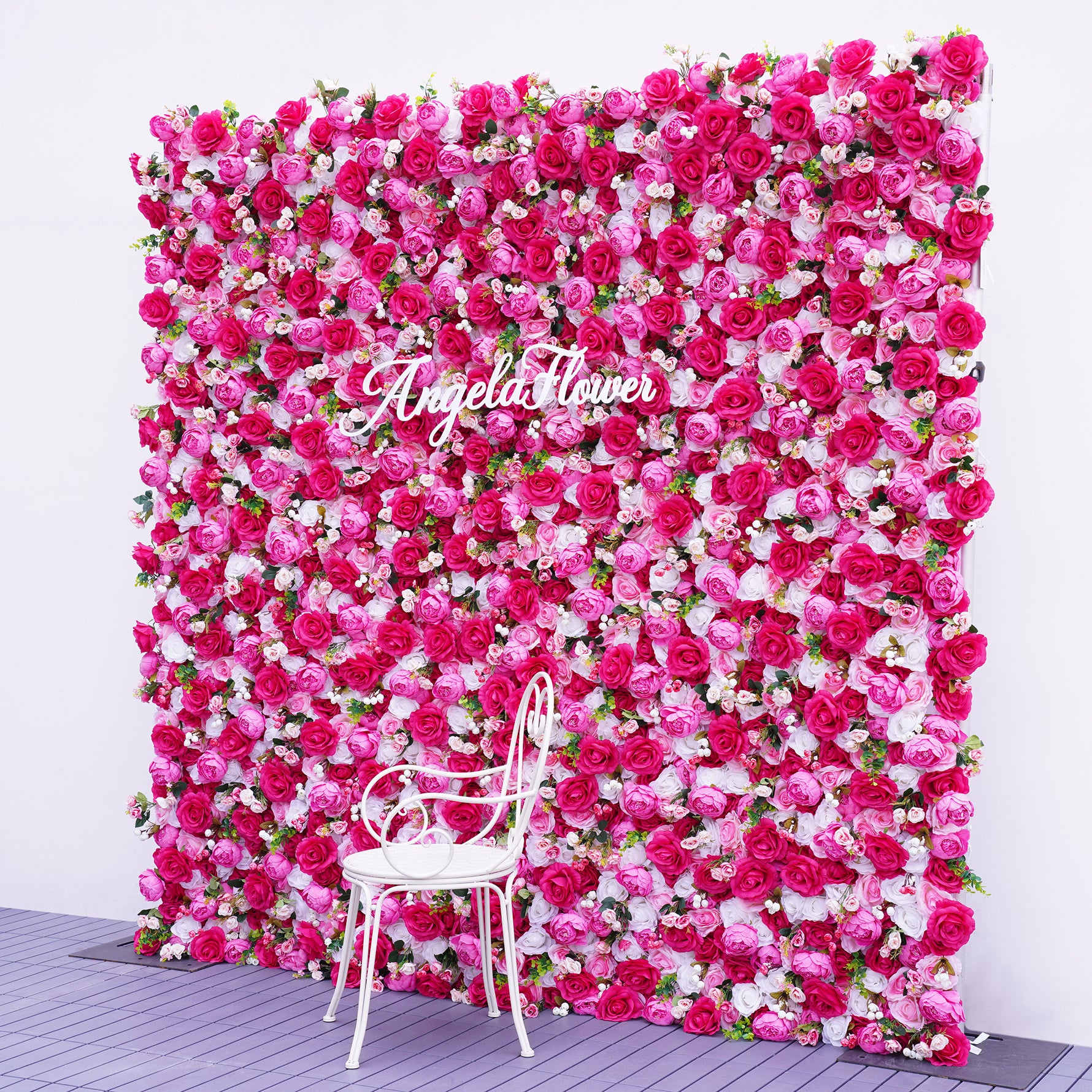 A4787 5D Red Artificial Rose Cloth Flower Wall Wedding Backdrop Fabric Floral Wall