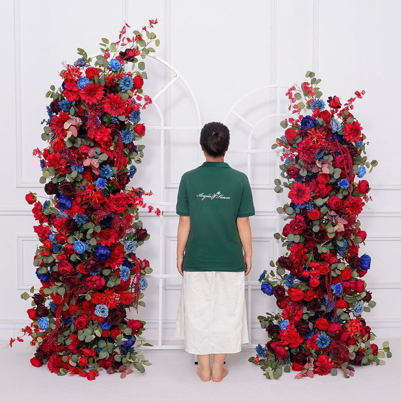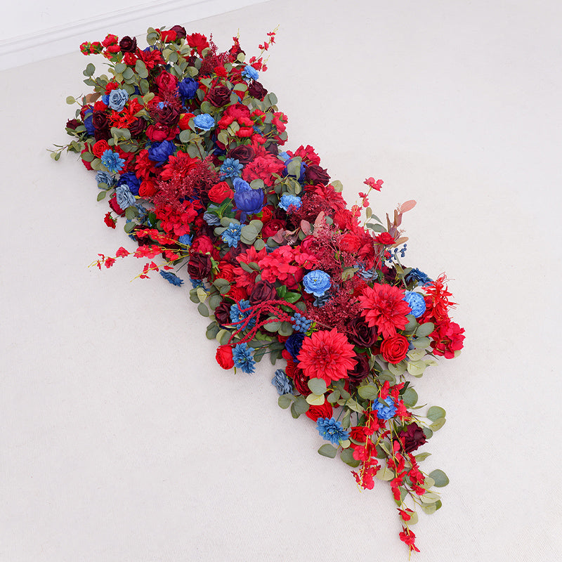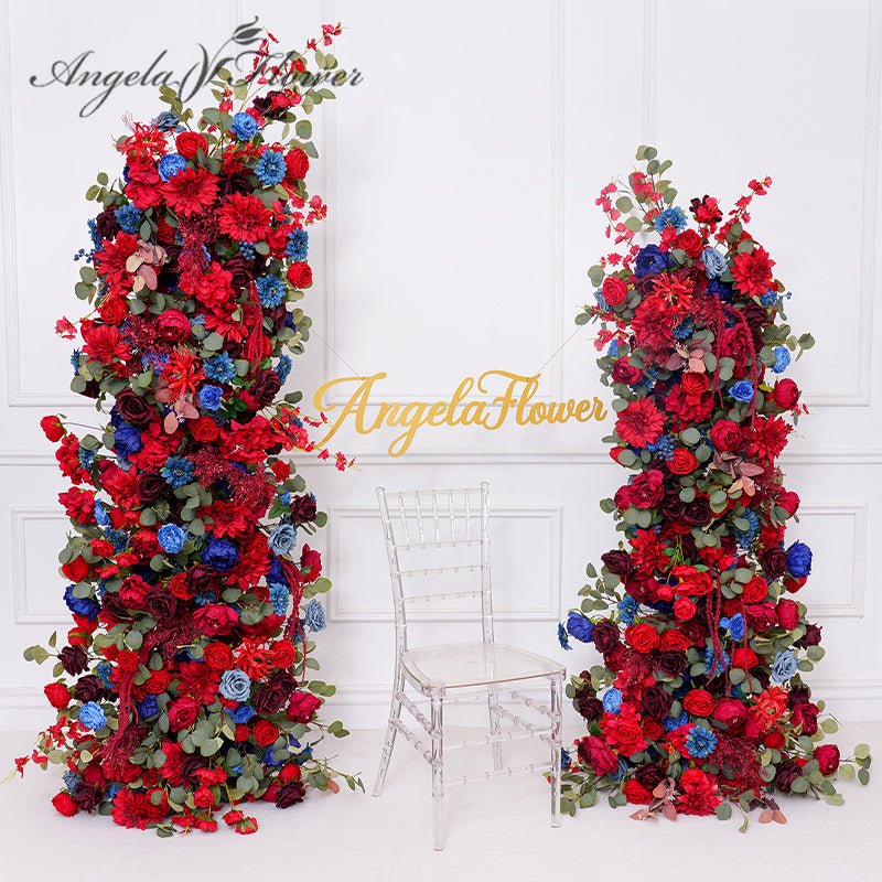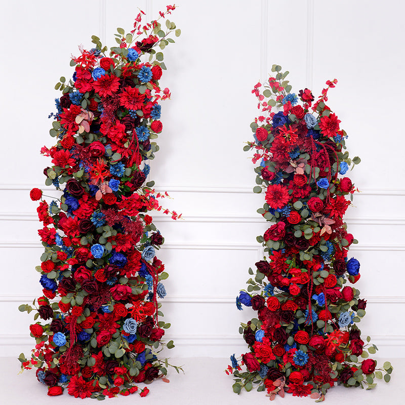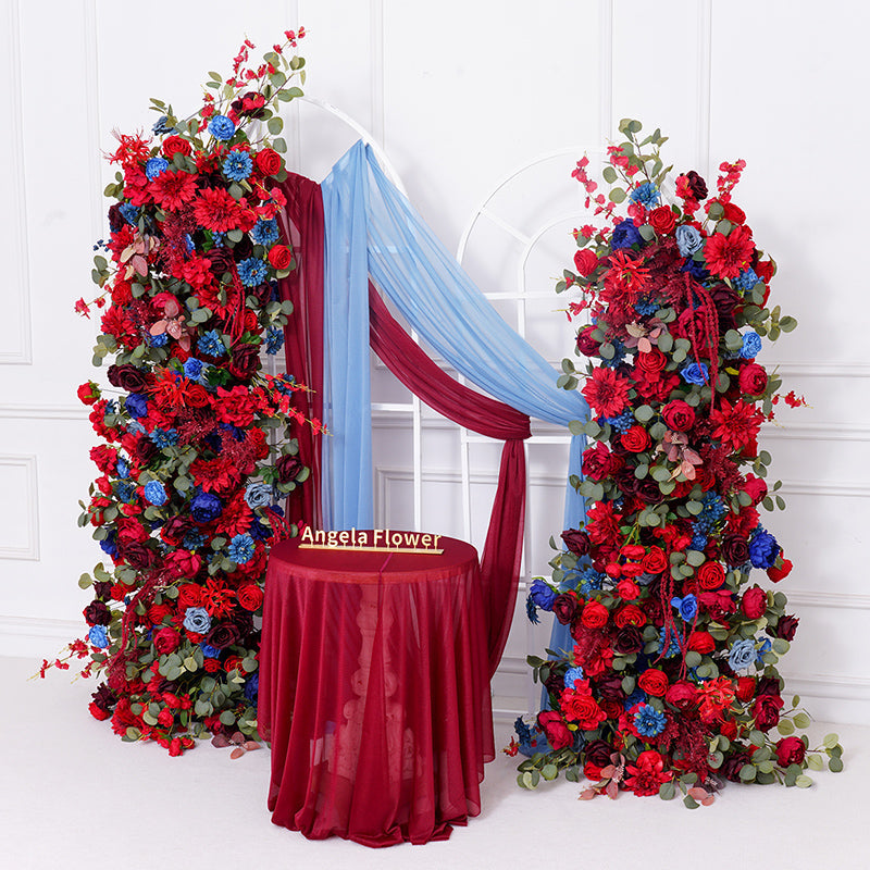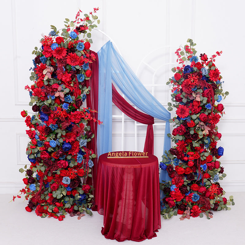 A8724 Blue Red Series Green Leaf Wedding KT Board Decor Floral Row Arrangement