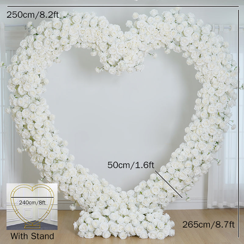 White Heart-Shaped Large Shelf With Floral Arrangement Wedding Arch Backdrop Deco Rose Flower Row Party Prop A4011 A6625 A7726