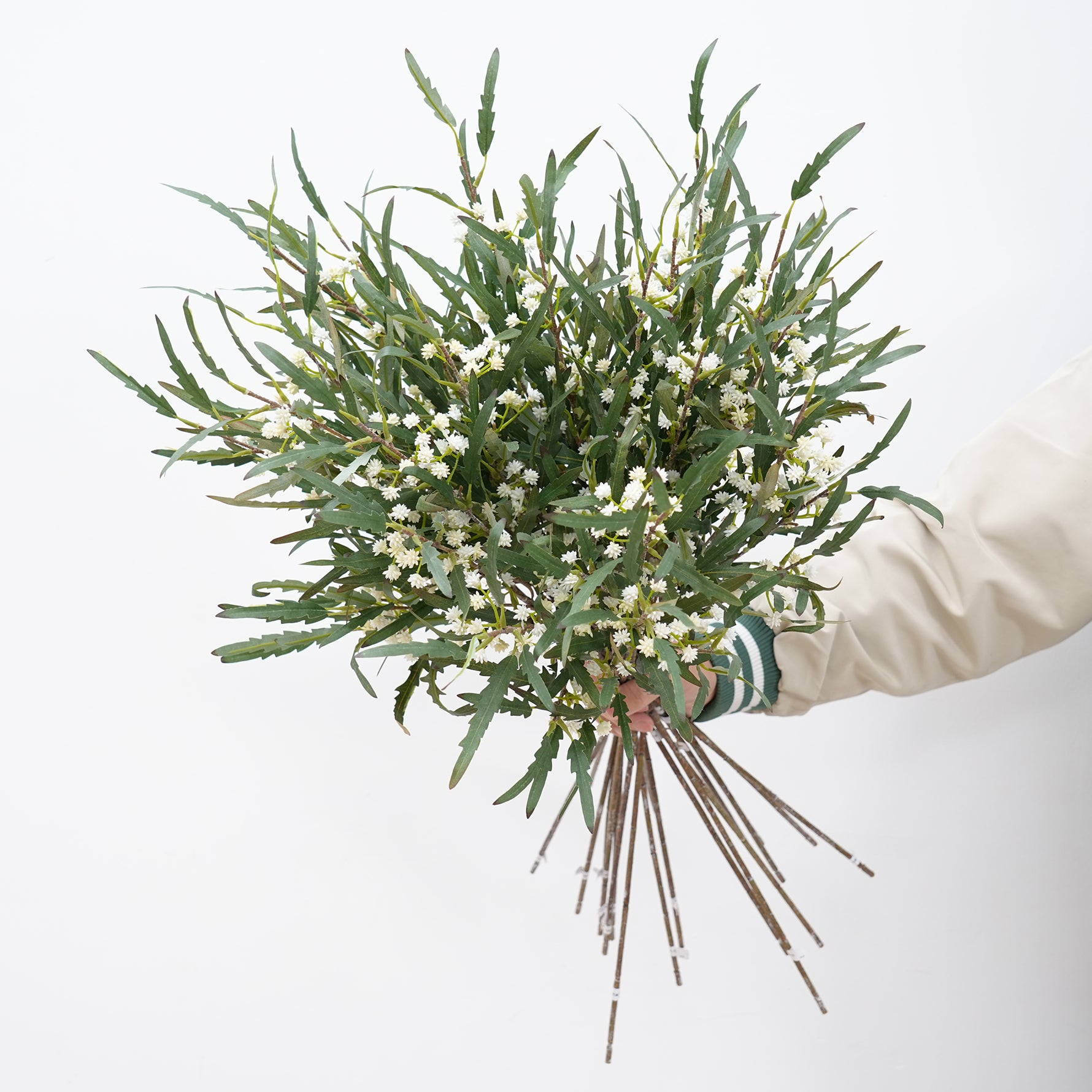 Product selling point: This artificial small flower plant branch can not only beautify the environment, but also can be used as room and living room decoration. The embellishment of small white flowers makes the greenery more realistic, and it can also be used as a diy flower material to create a flower arrangement that you are satisfied with.