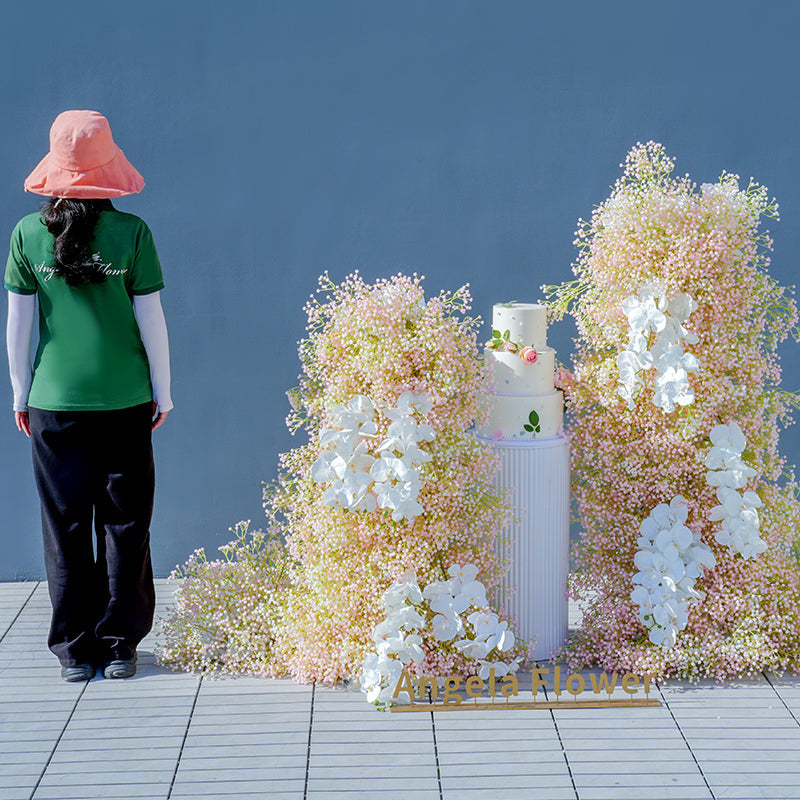 A8688 Pink Babysbreath White Orchid Wedding KT Board Decor Floral
