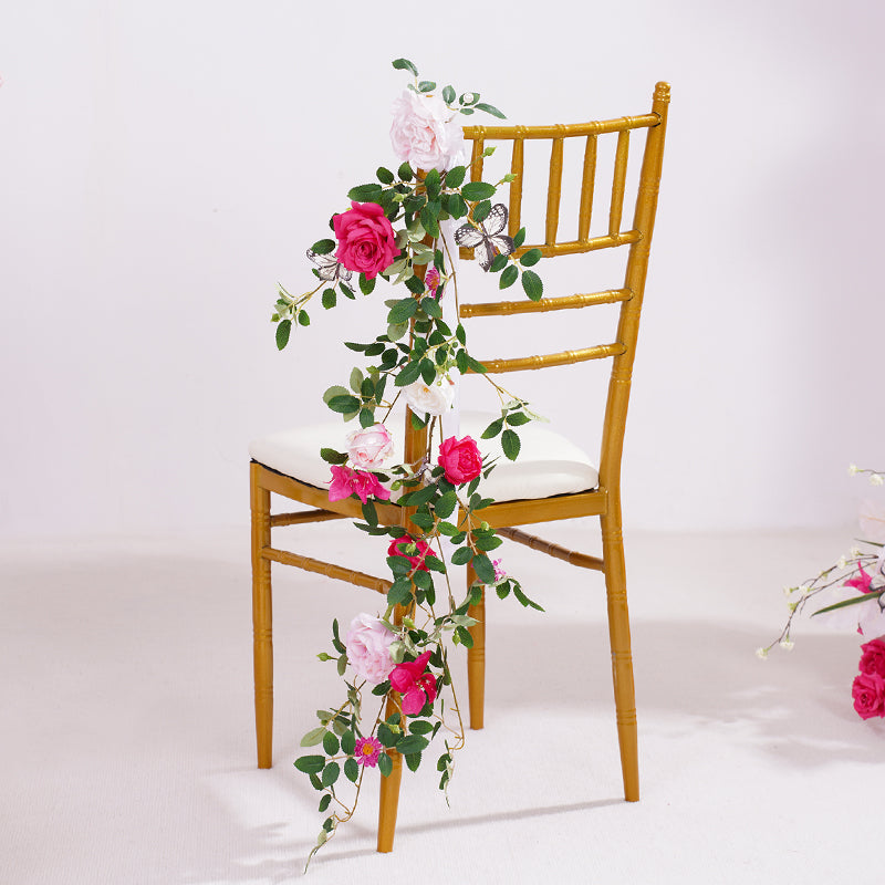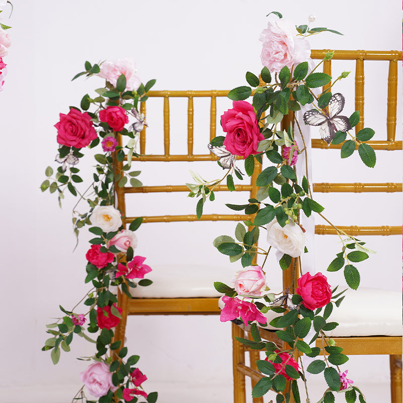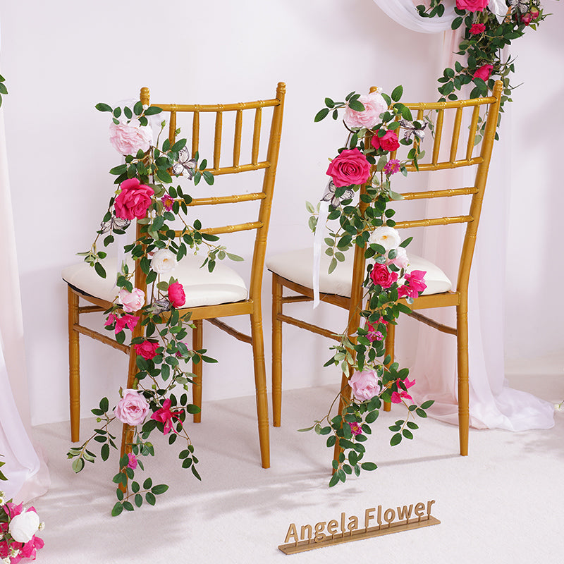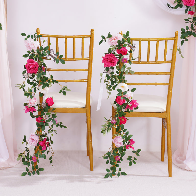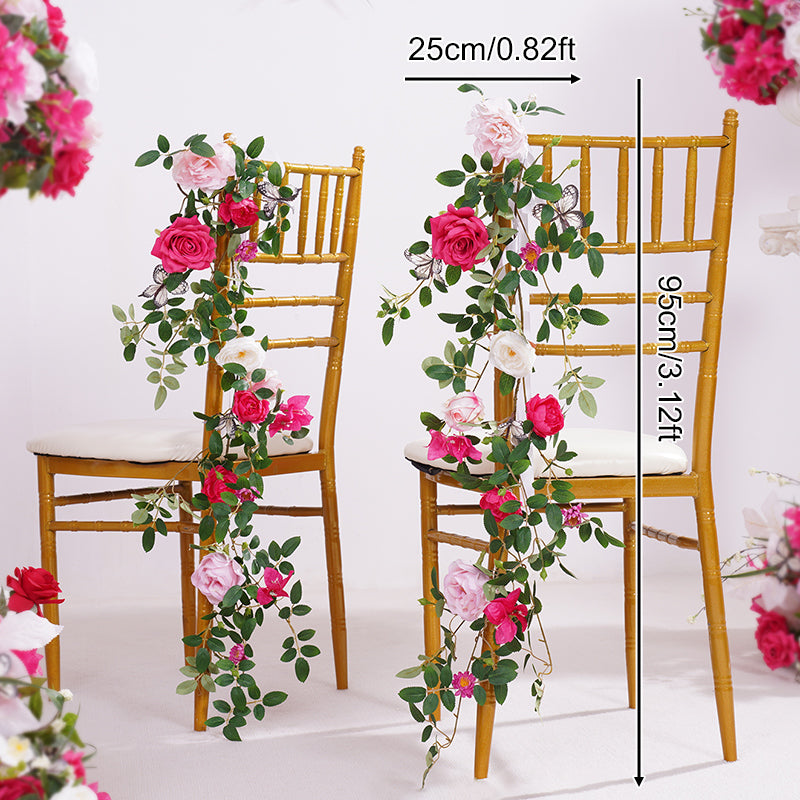 A866310 Hot Pink Green Plant Vine Chair Flower Wedding Banquet Decor Supplies