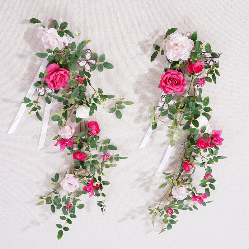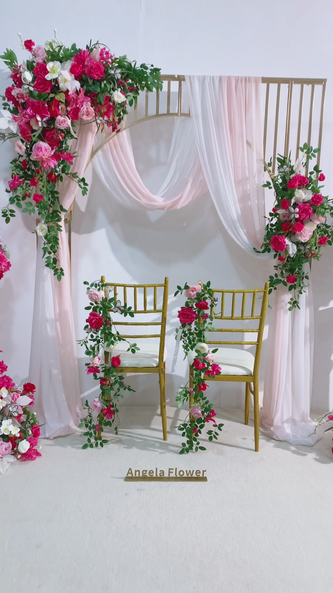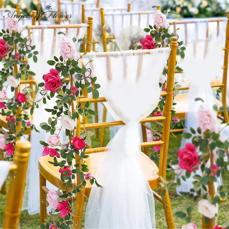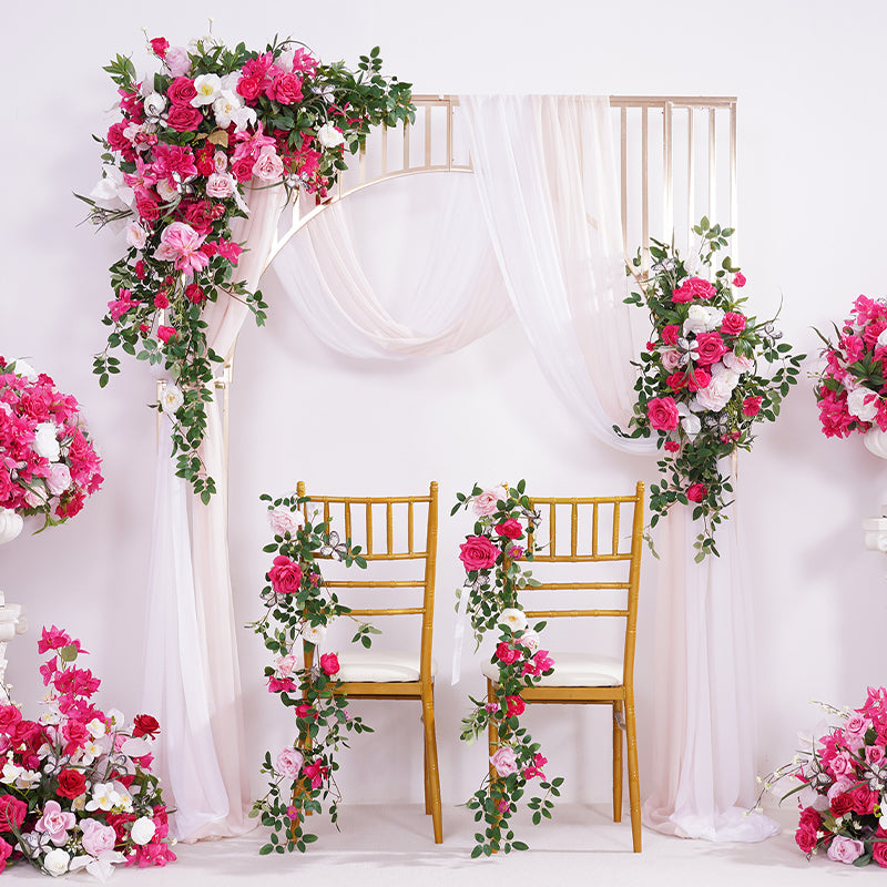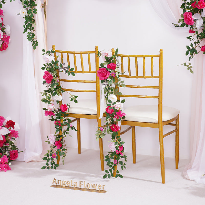 A866310 Hot Pink Green Plant Vine Chair Flower Wedding Banquet Decor Supplies