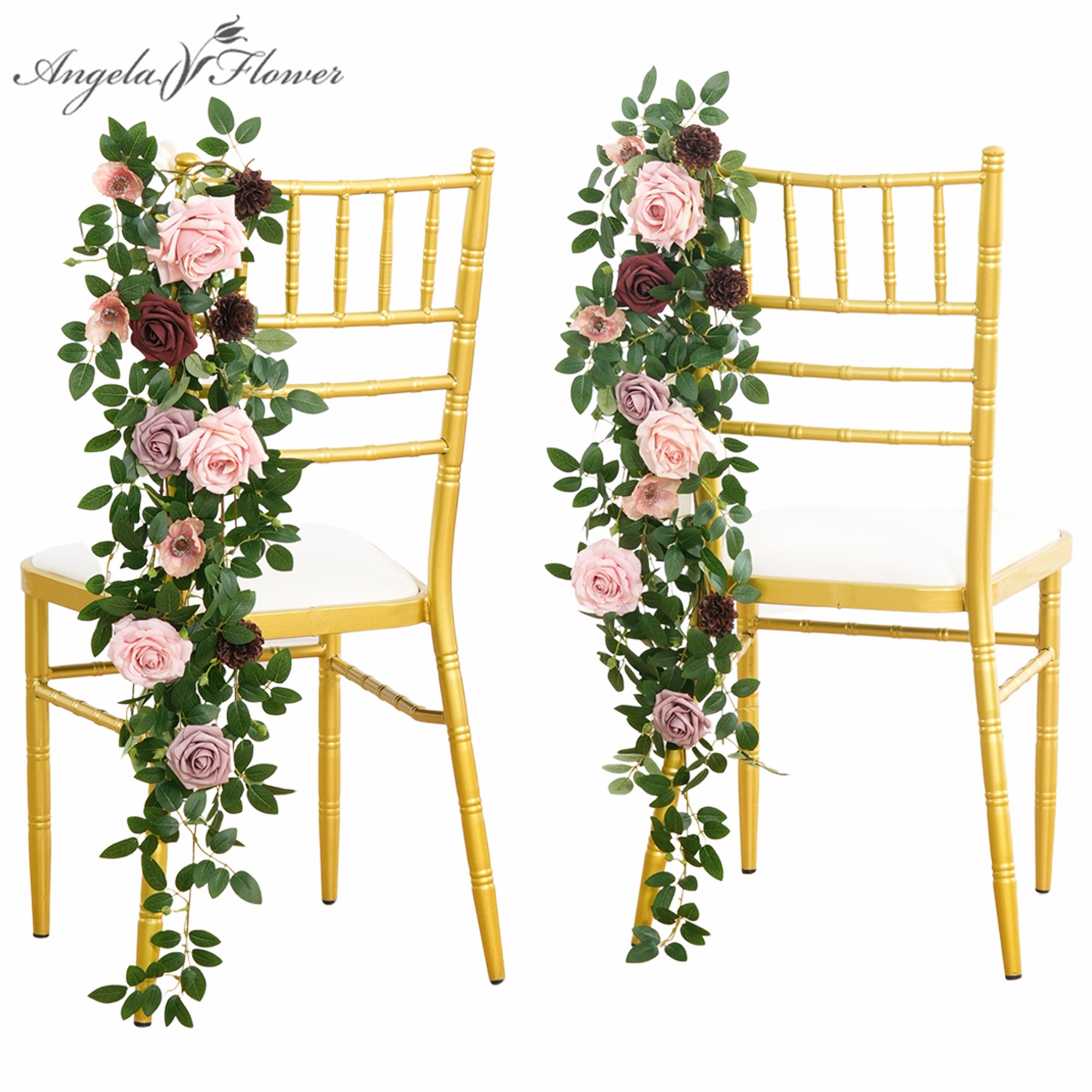 A8997 4pcs/set Bean Paste Rose Greenery Vine Chair Flower Wedding Decor Supplies