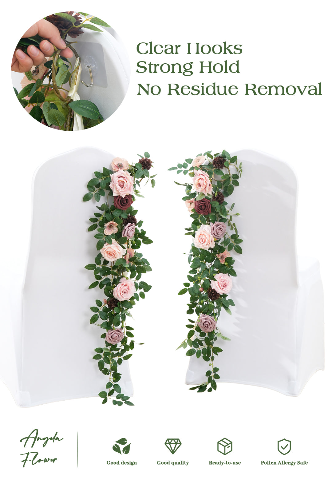 Size and package: The fully extended size is approximately 39.37'' length by 7.87'' width. Includes chair back flowers*4, traceless transparent hooks*4, high-grade ribbons*4.
