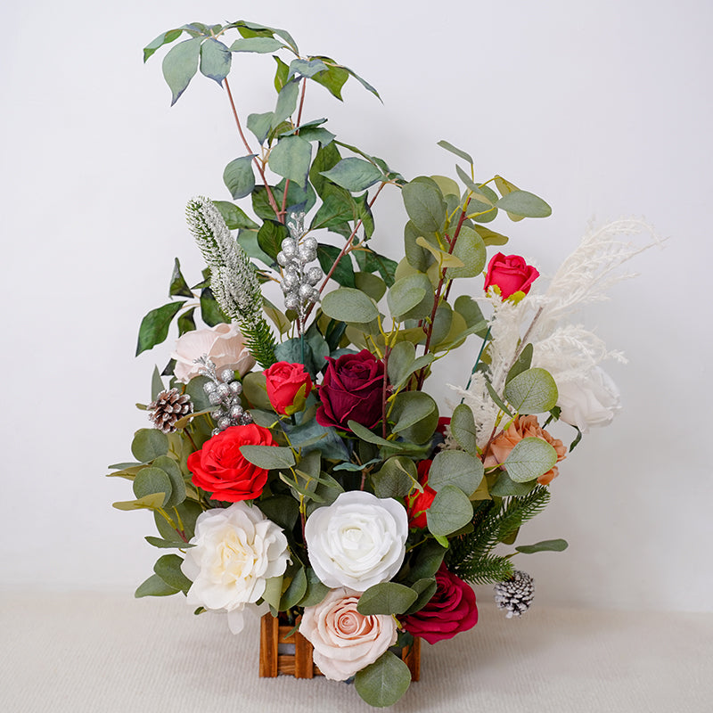 A866218 Christmas Series Greenery Fence With Flower Wedding Floral Arrangement Supplies