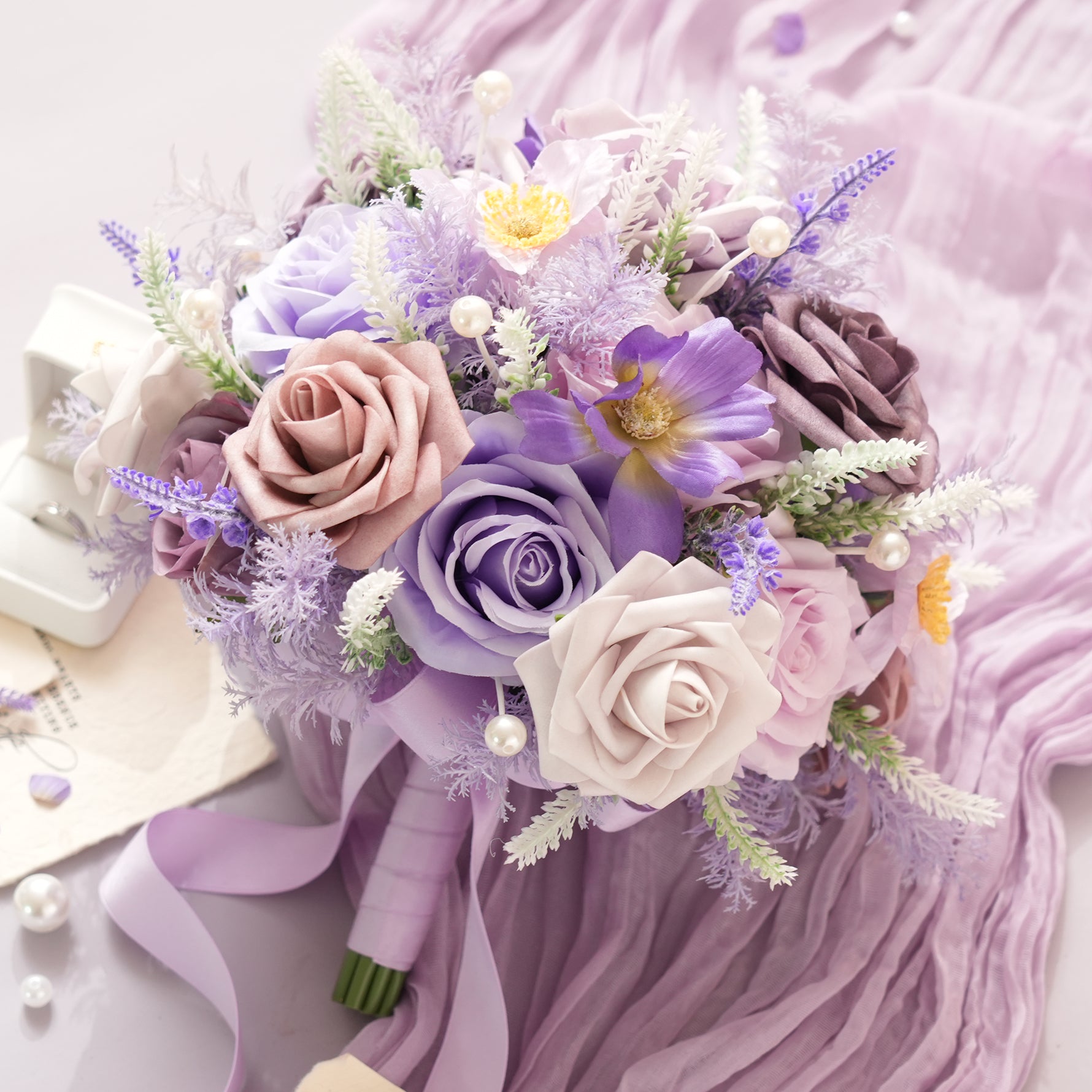 A9002 Artificial Romantic Purple Bridal Bouquet Wedding Event Accessories
