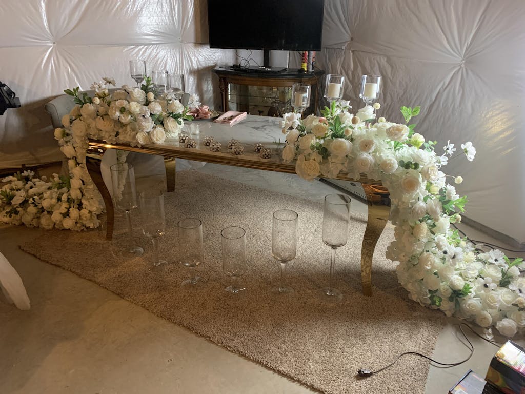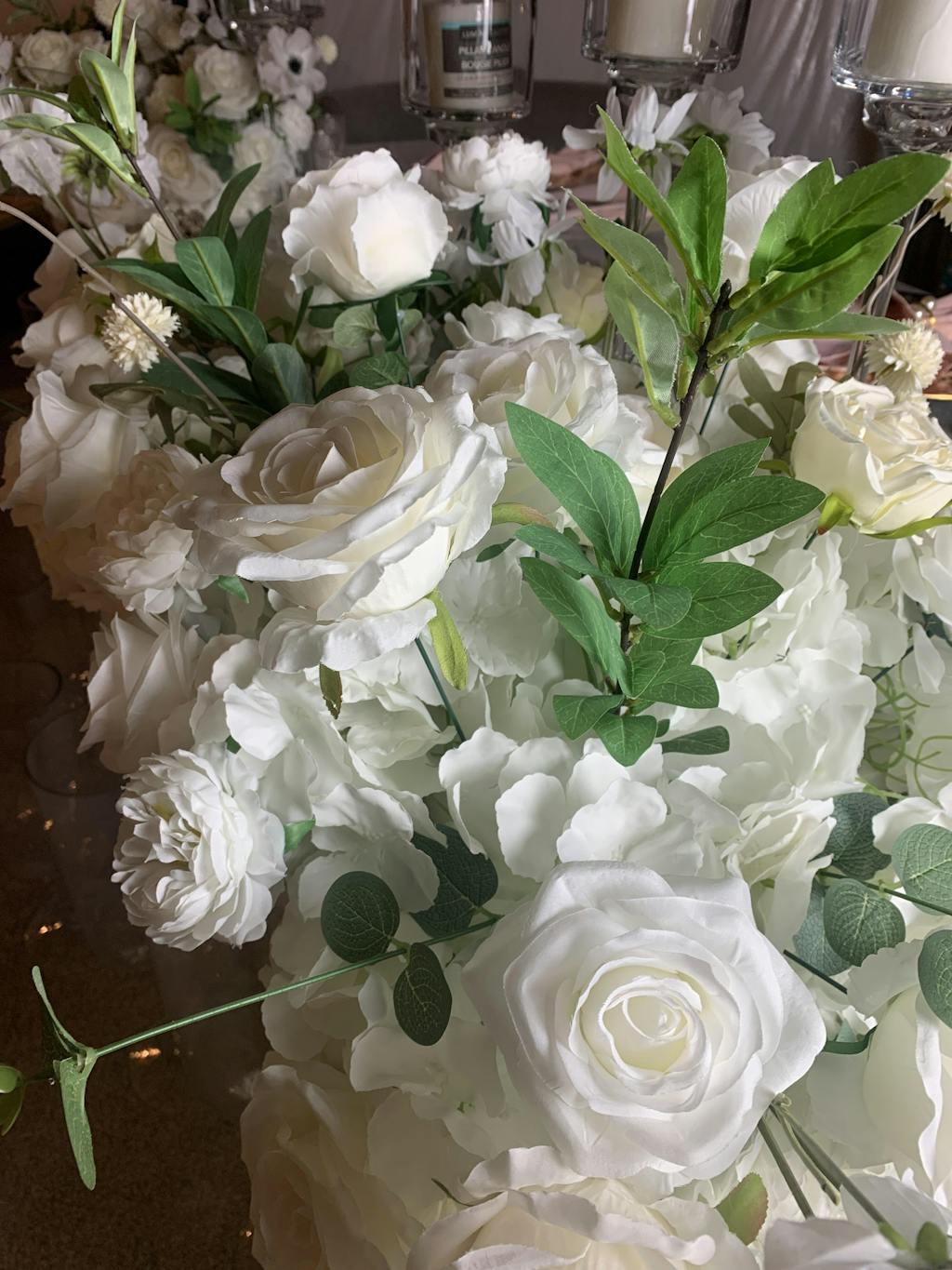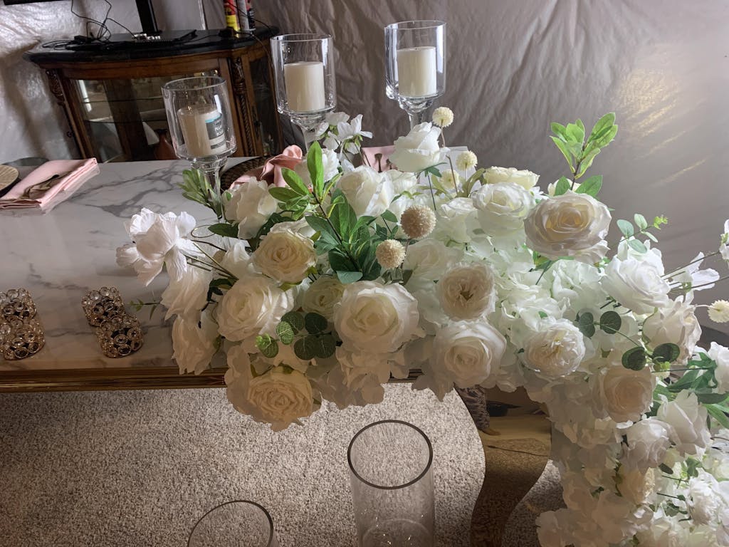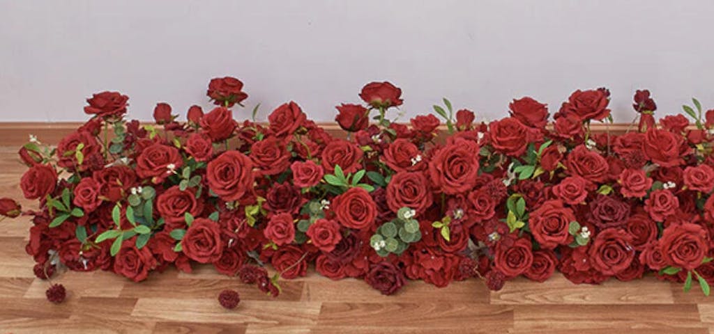 A7621 2M White Wedding Table Runner Floral Row Arrangement