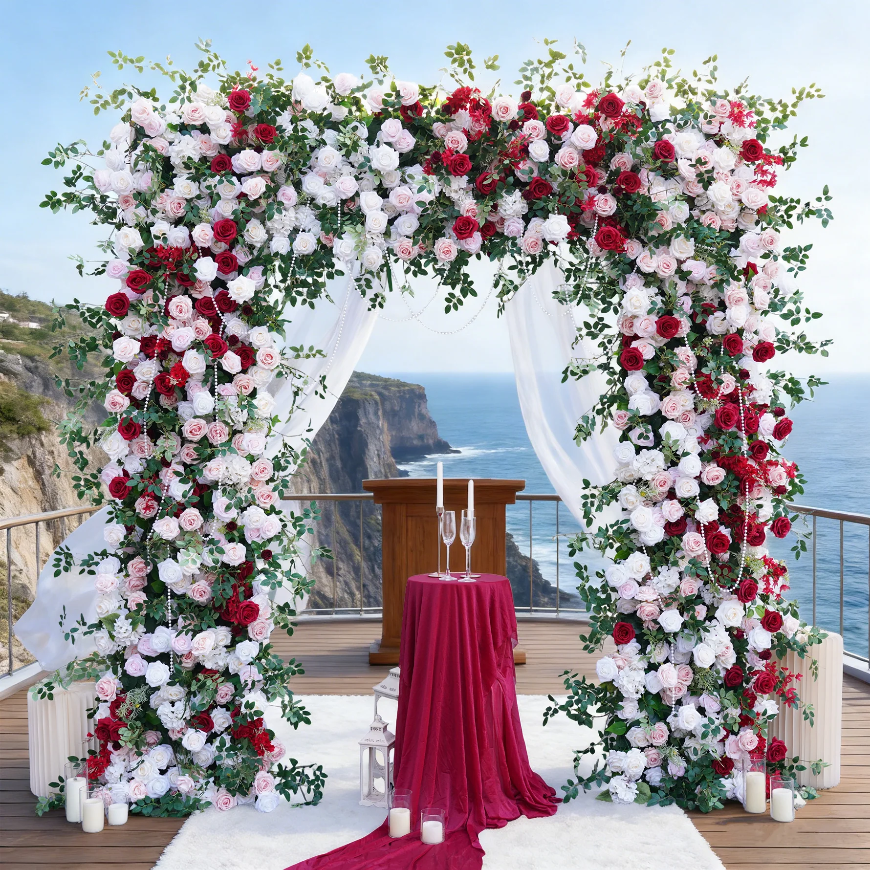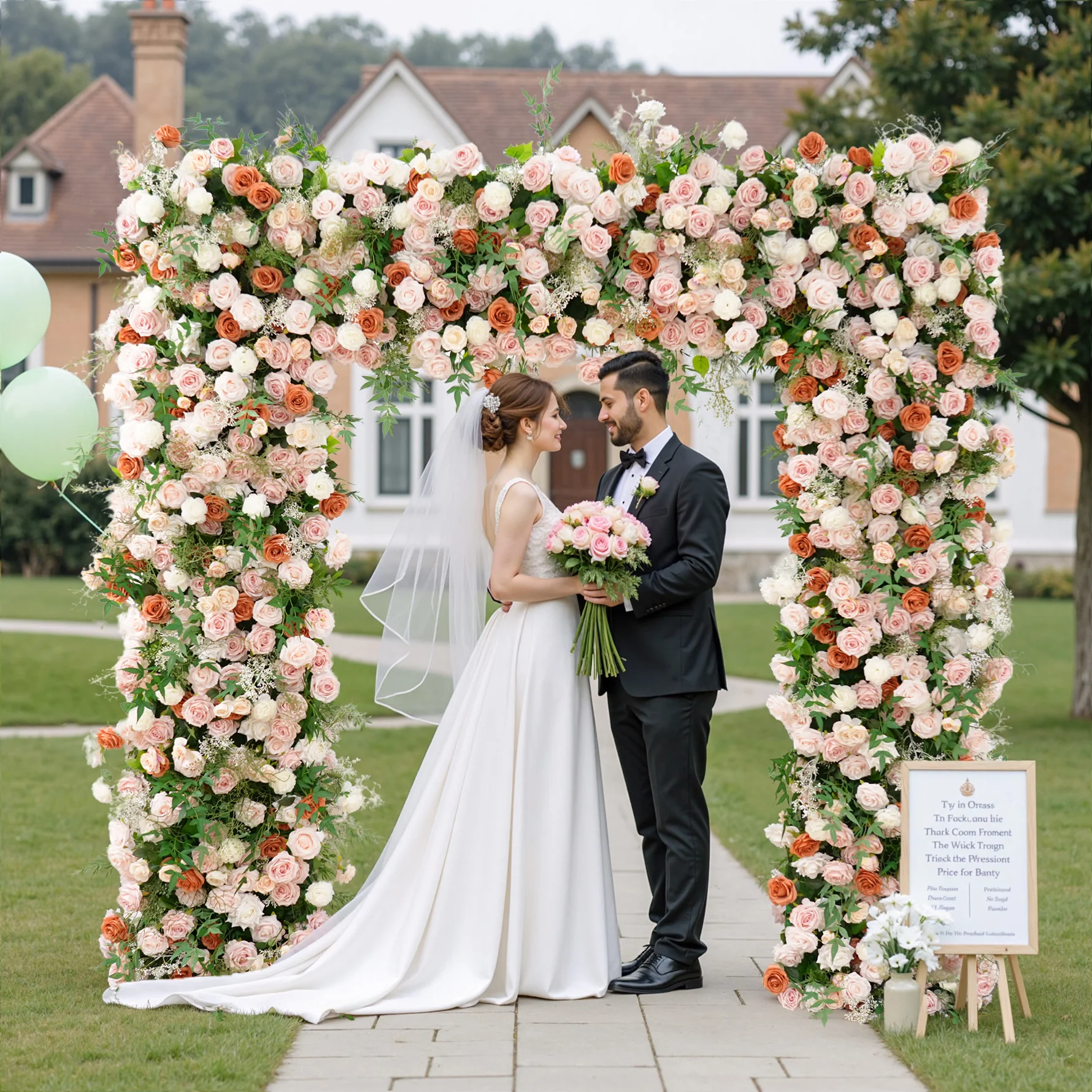 Foam-Based Archway: Constructed with rigid foam panels as the base, covered with artificial flowers and greenery, and featuring a frame typically made of gold or black metal. This design offers enhanced visual depth and a touch of understated luxury.