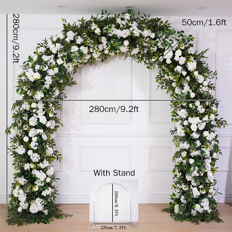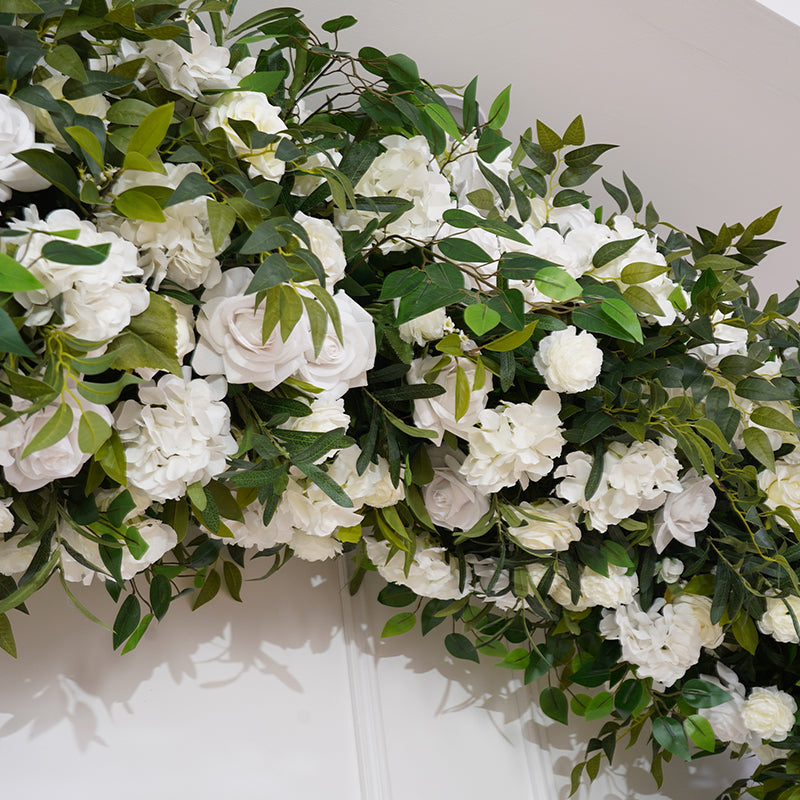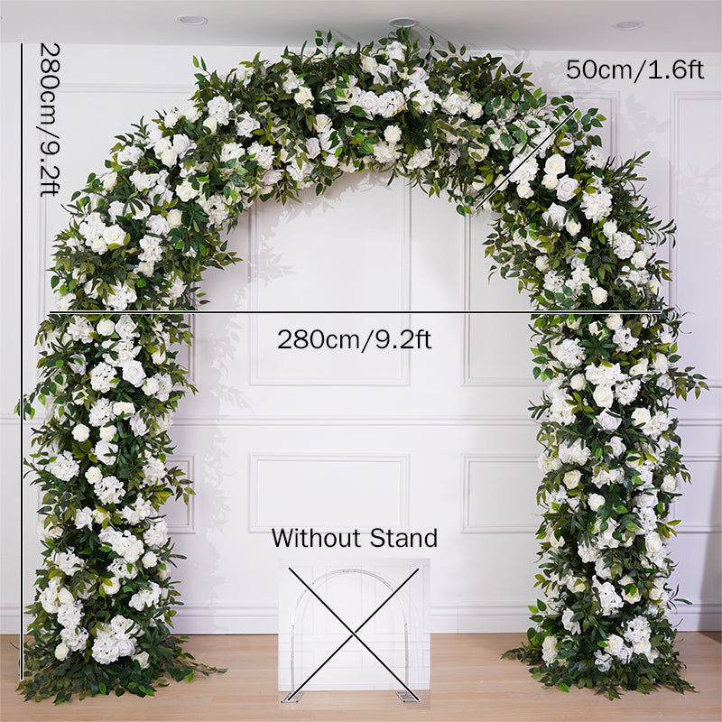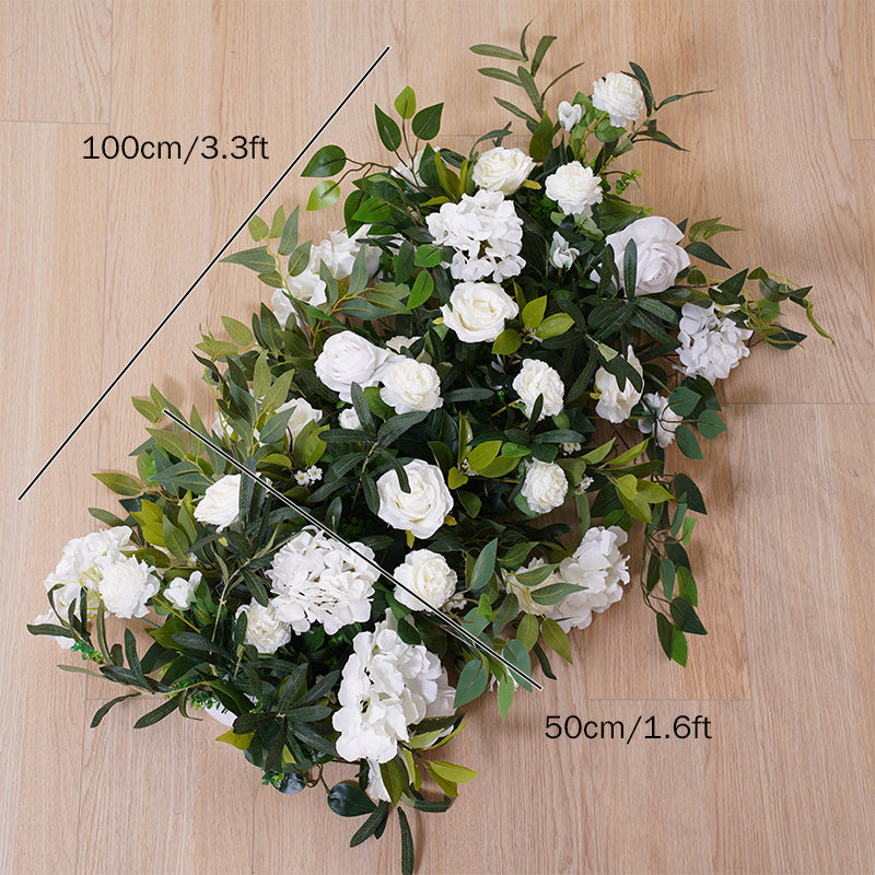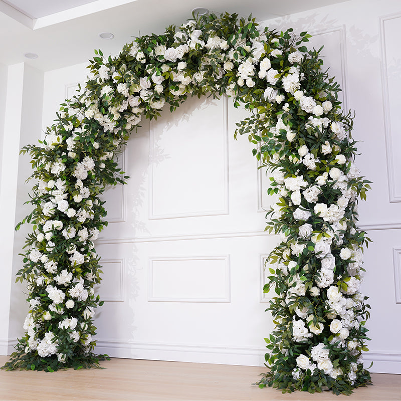 A7853 A4175 White Rose Green Leaves Flower Row Decor Wedding Backdrop Arch