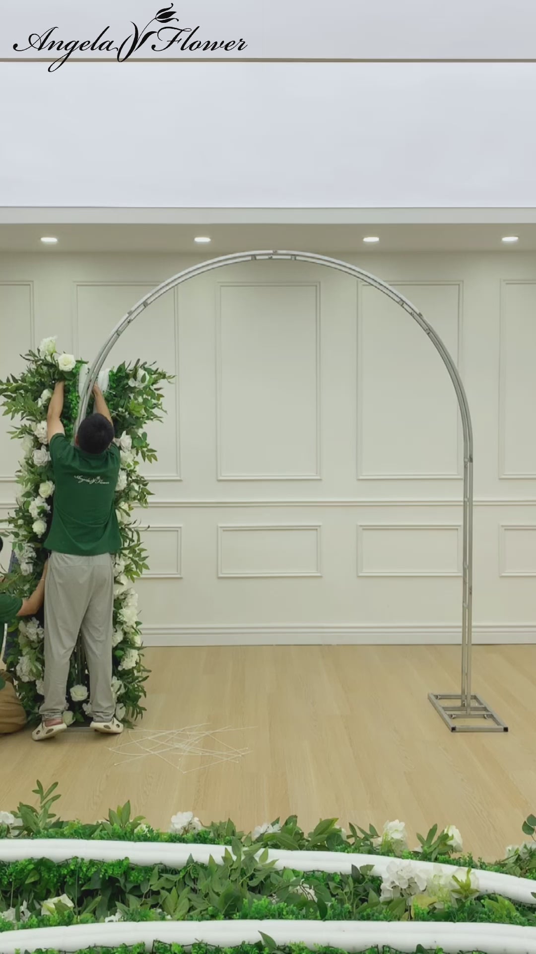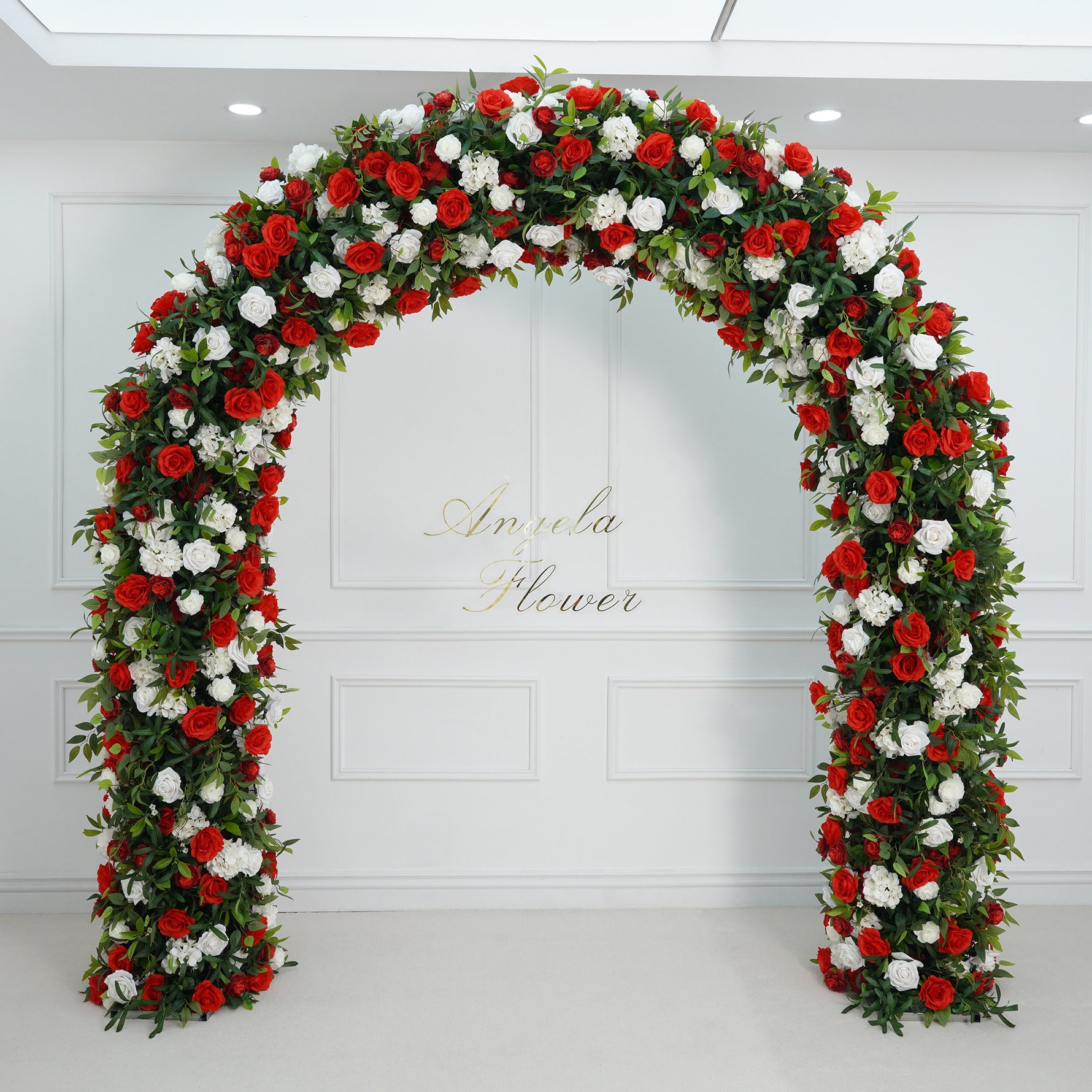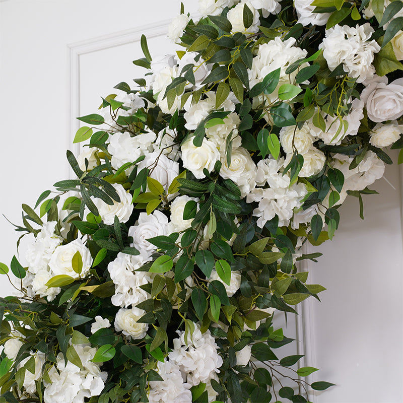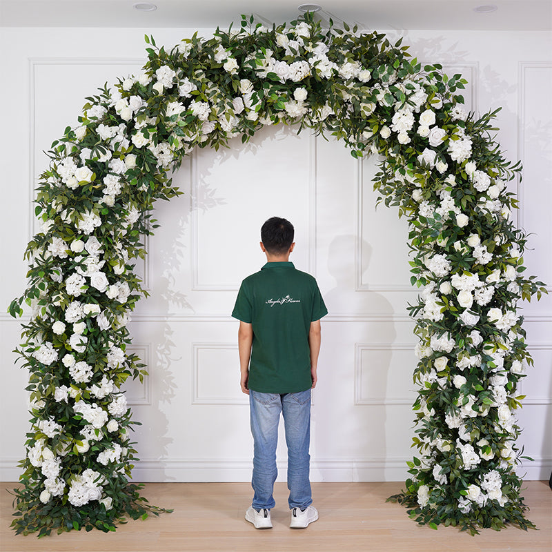 A7853 A4175 White Rose Green Leaves Flower Row Decor Wedding Backdrop Arch