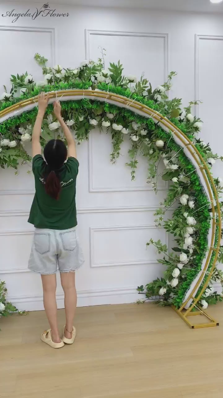 A8111 White Rose With Green Wedding Round Arch Decor Floral Arrangement