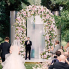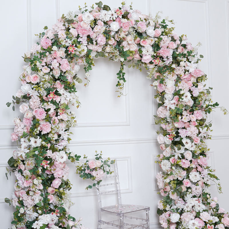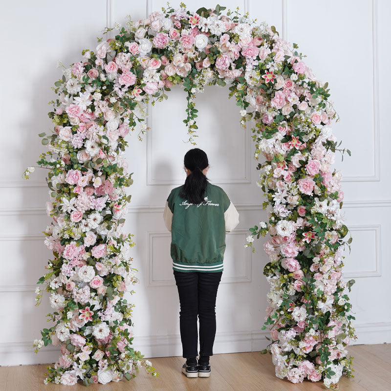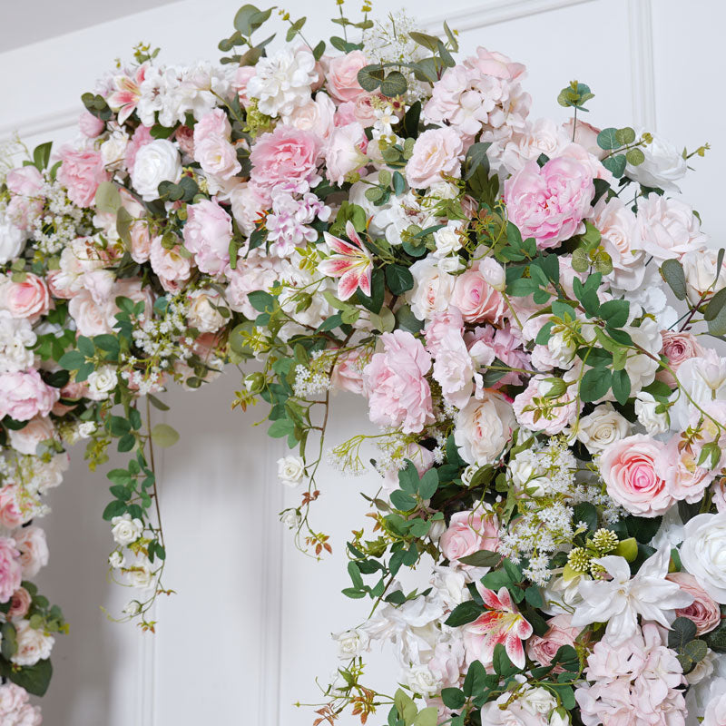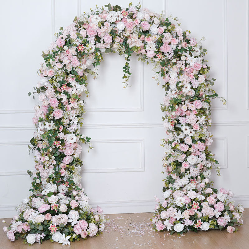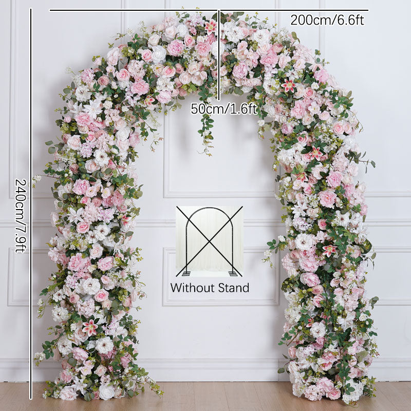 A8783 Pink Rose Green Leaf Floor Floral Arrangement Outdoor Wedding Backdrop