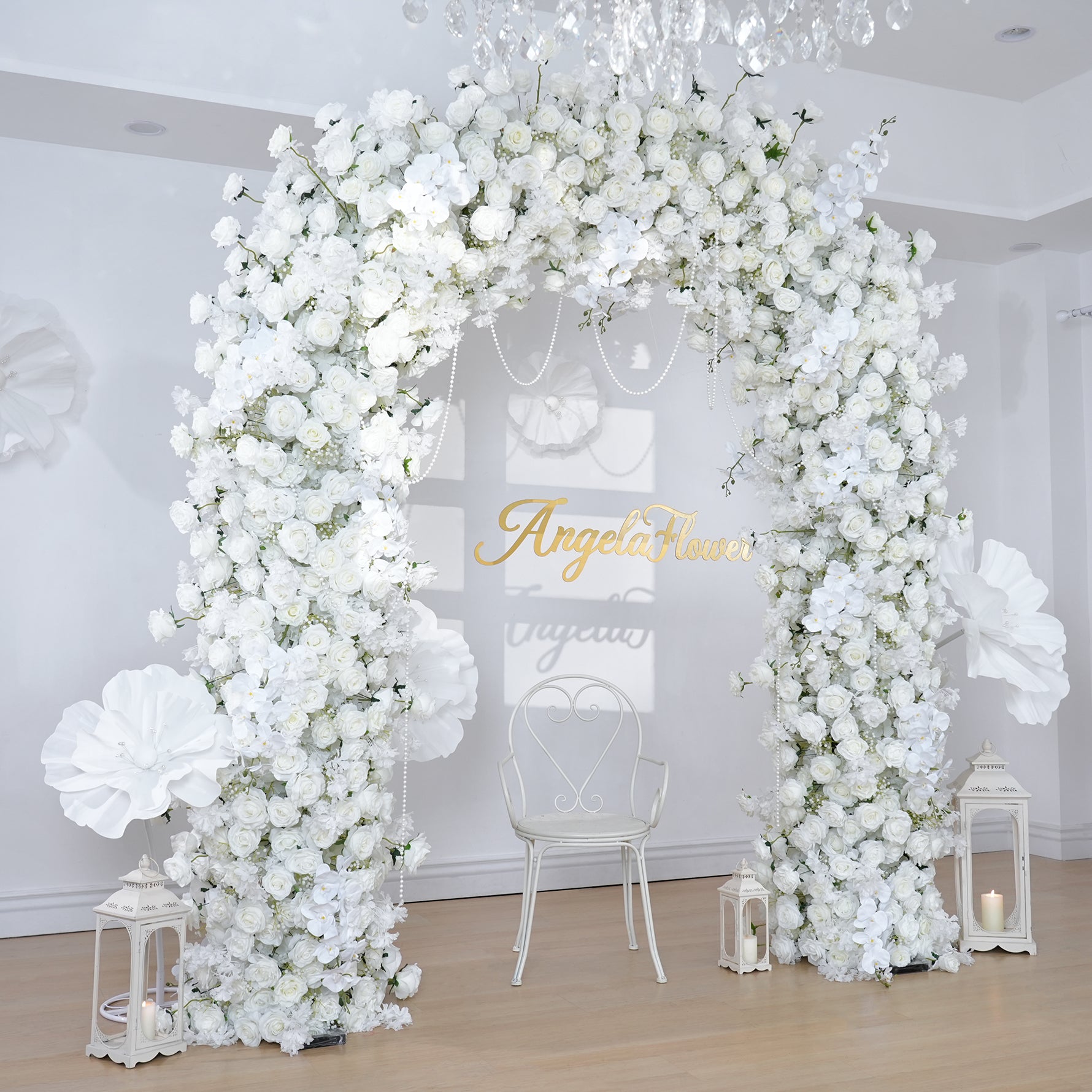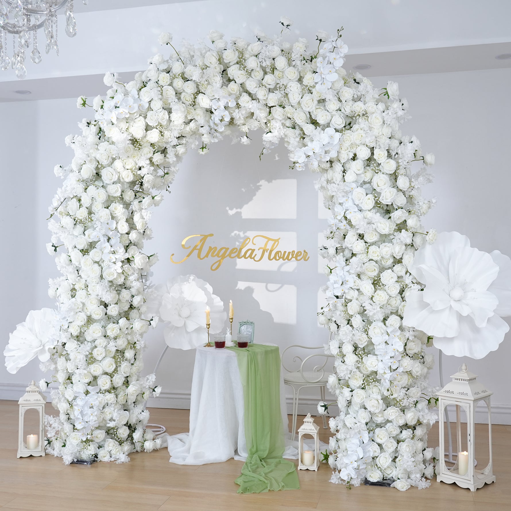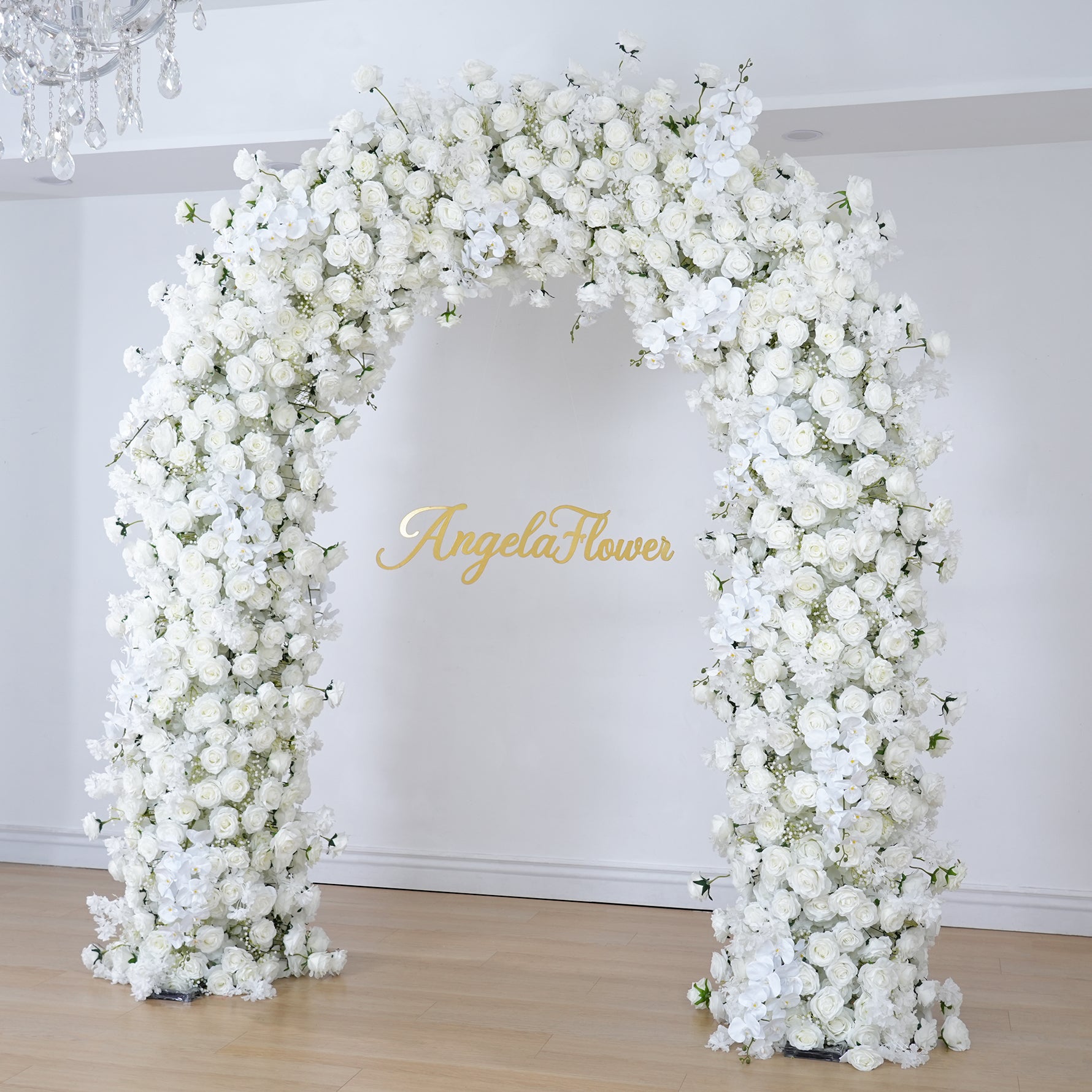 A8924 White Rose Orchid Babysbreath Floral Arrangement Wedding Backdrop Frame Arch