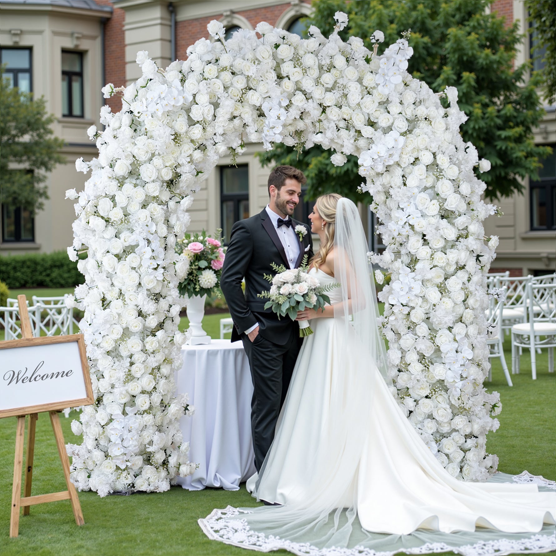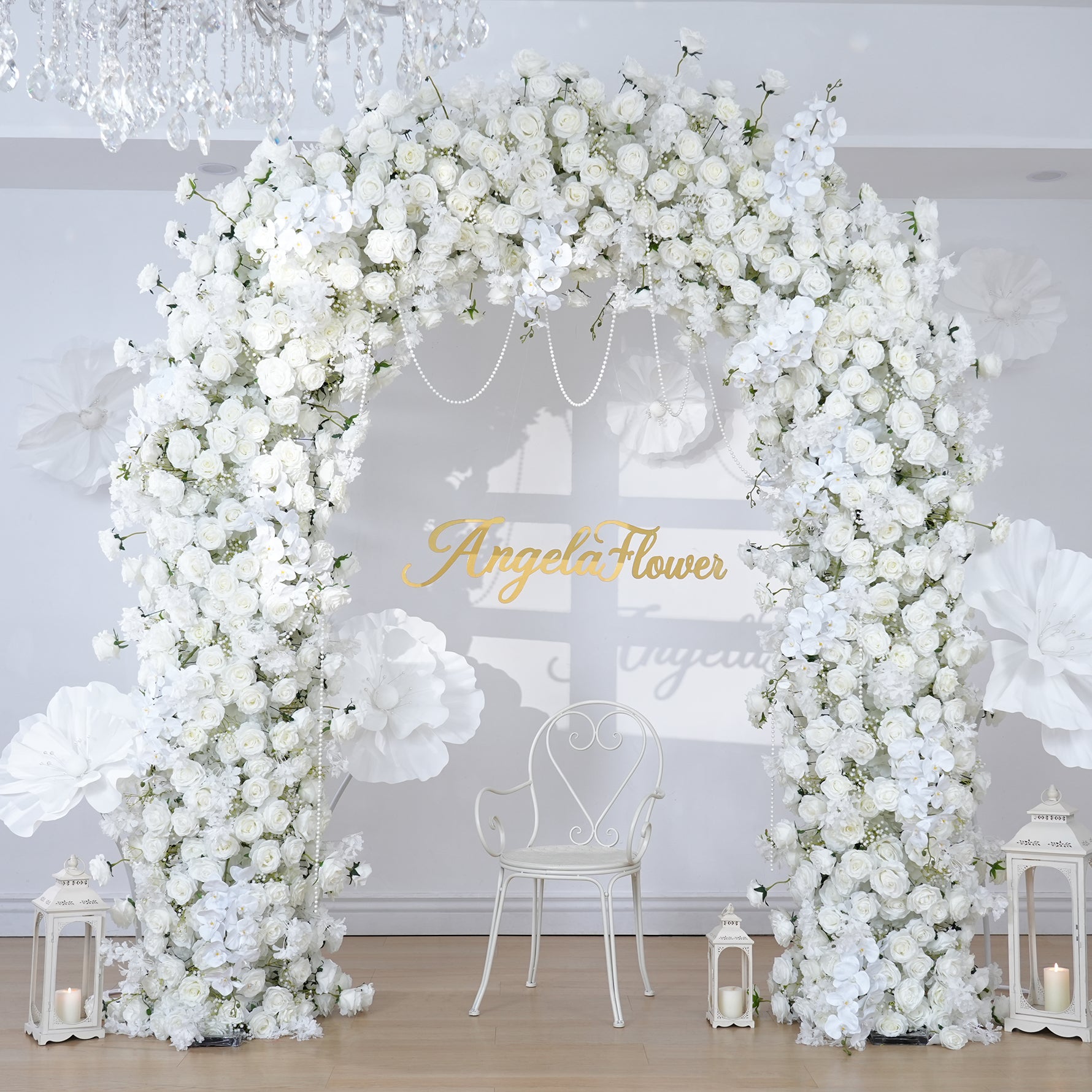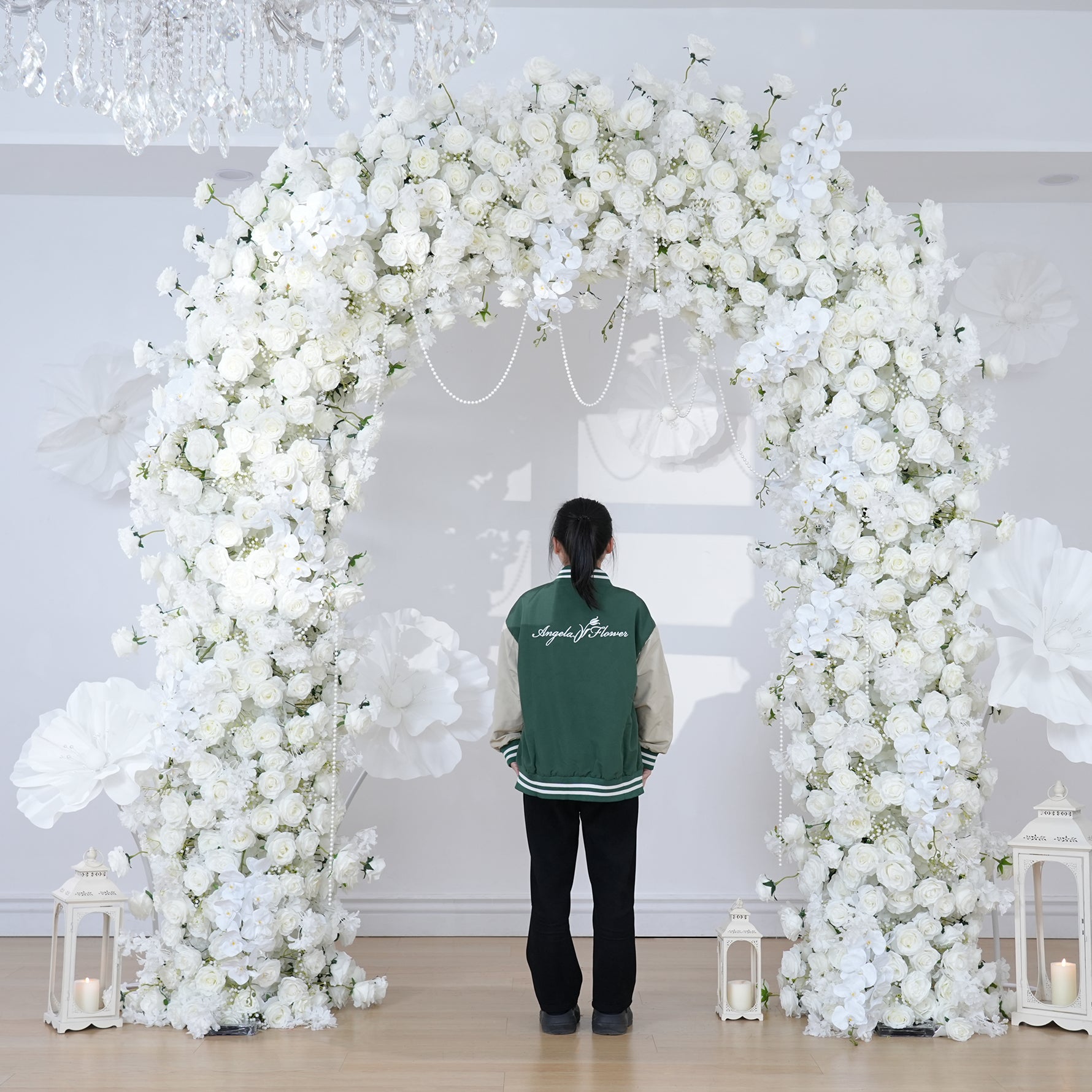 A8924 White Rose Orchid Babysbreath Floral Arrangement Wedding Backdrop Frame Arch
