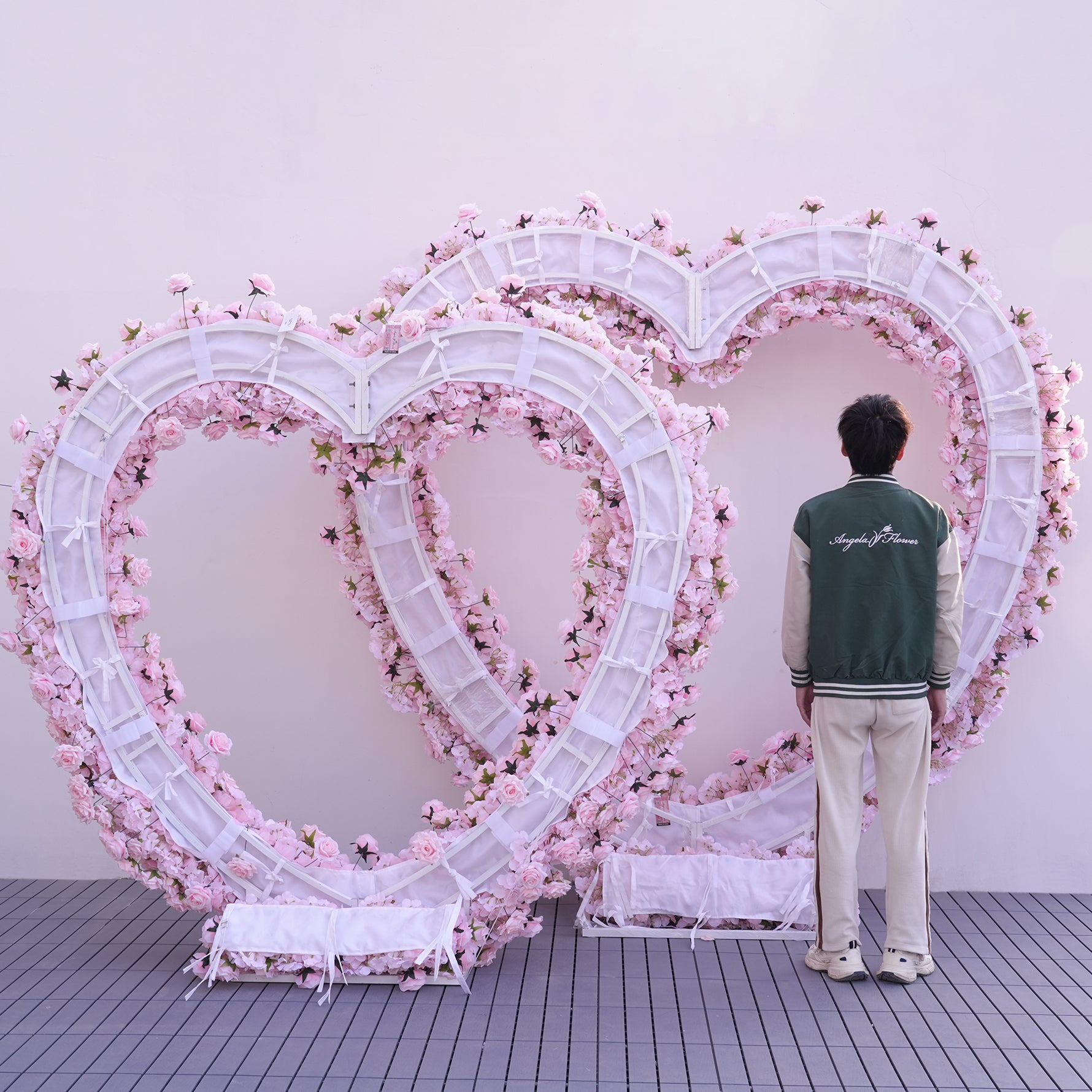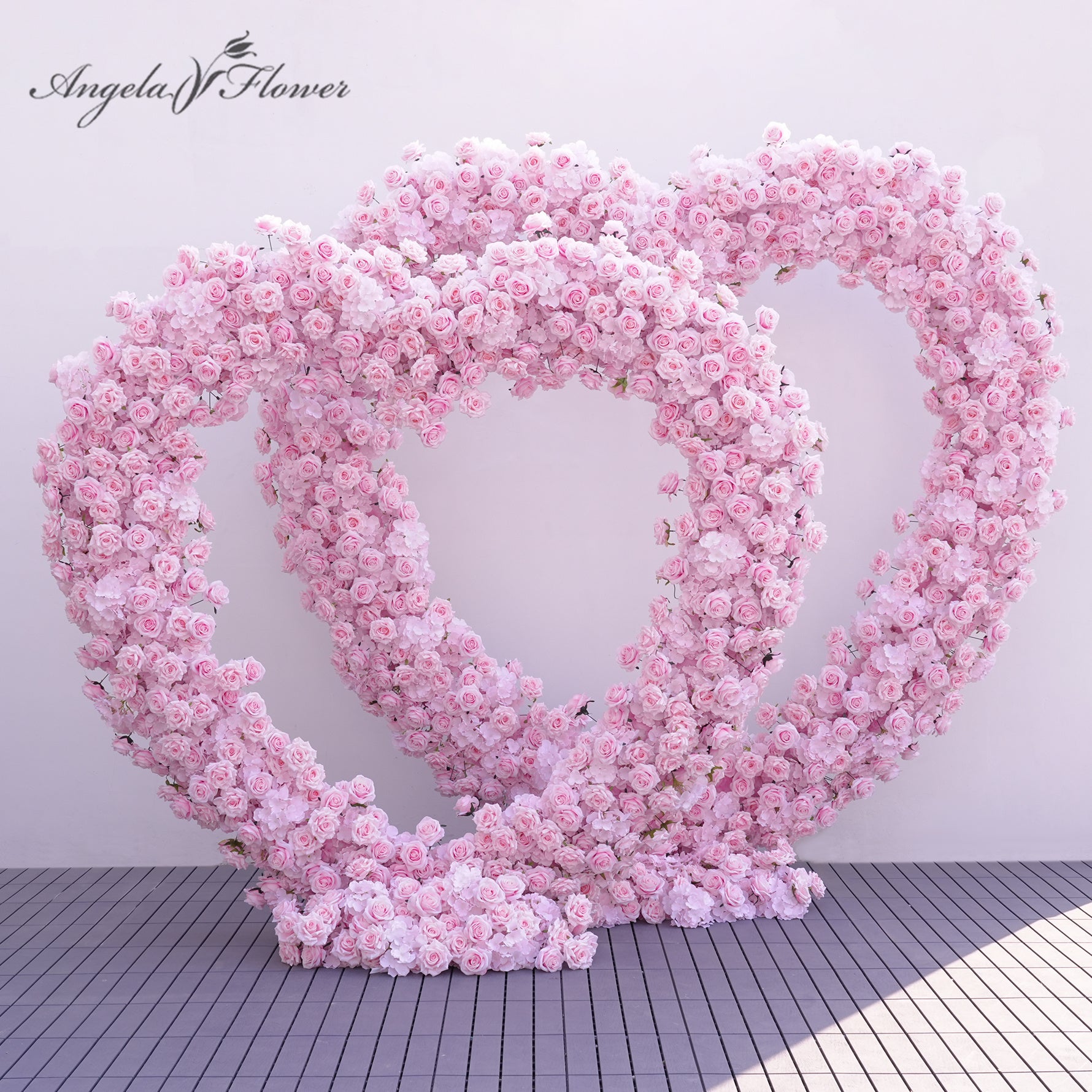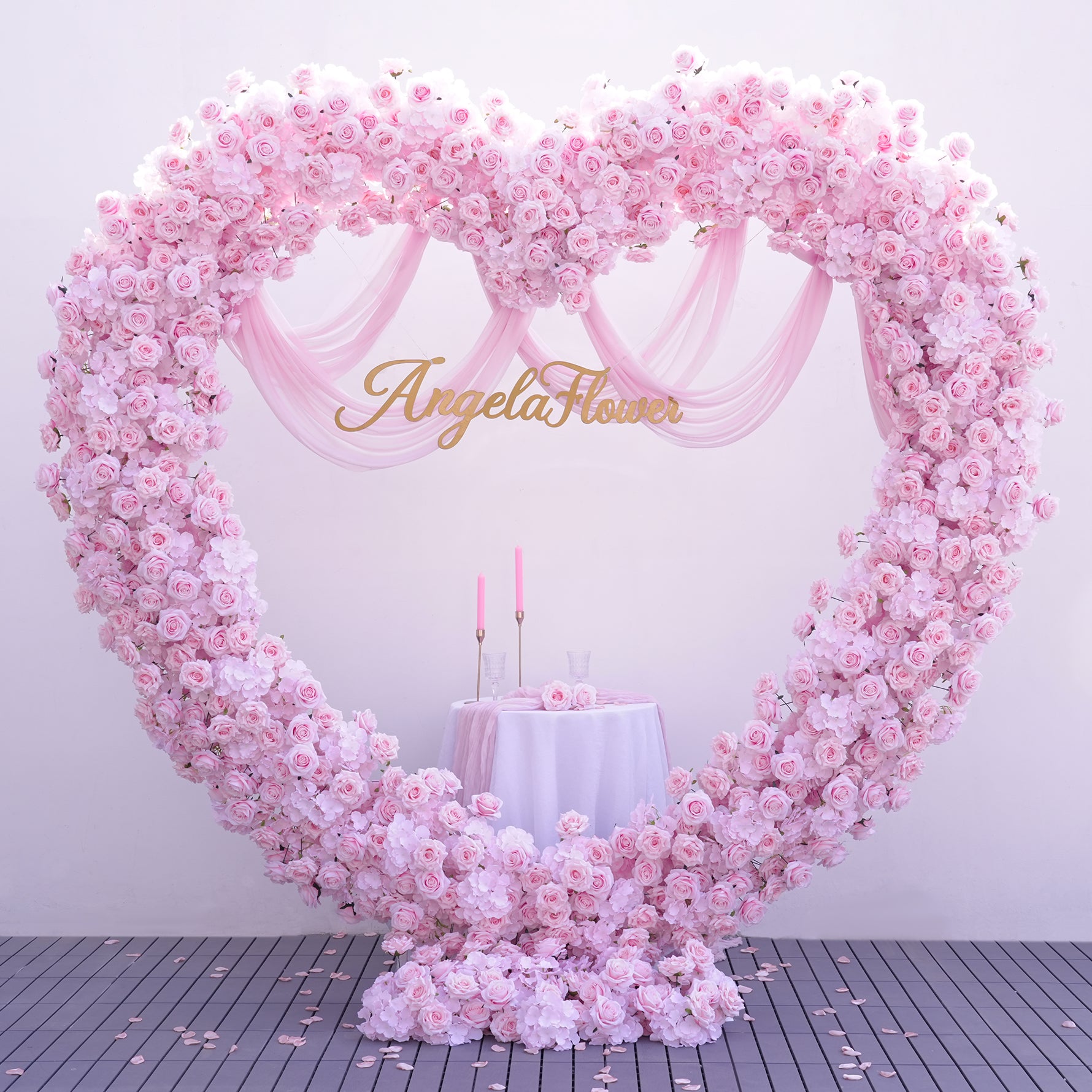 A8900 A8054 Pink Rose Hydrangea Cloth Base Heart-Shaped Arch Flower Wedding Event Props