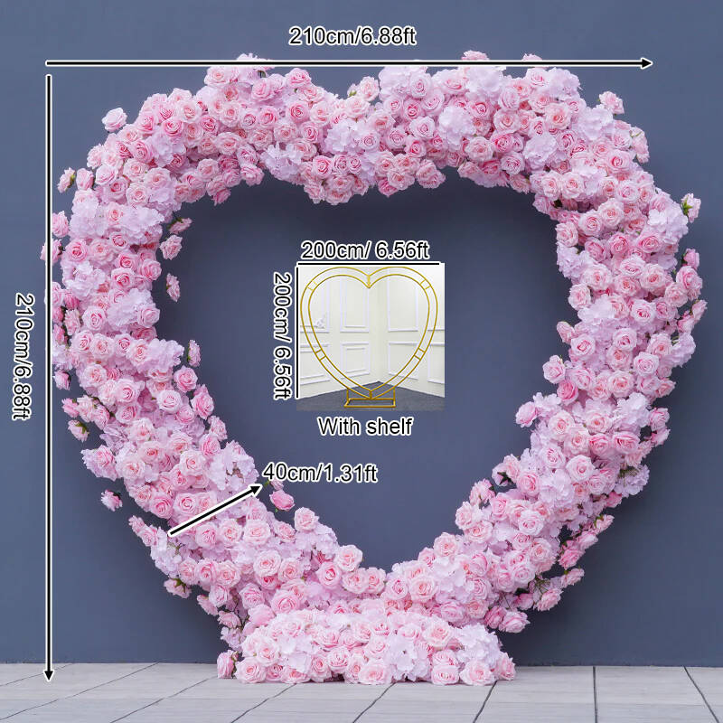 S-A8054 Pink Rose Hydrangea Cloth Base Arrangement Floral Wedding Backdrop Heart-Shaped Arch Decor Props