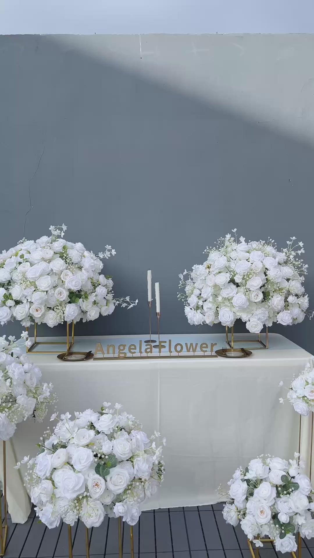 A2036 White Rose Baby's Breath Flower Ball For Table Centerpieces