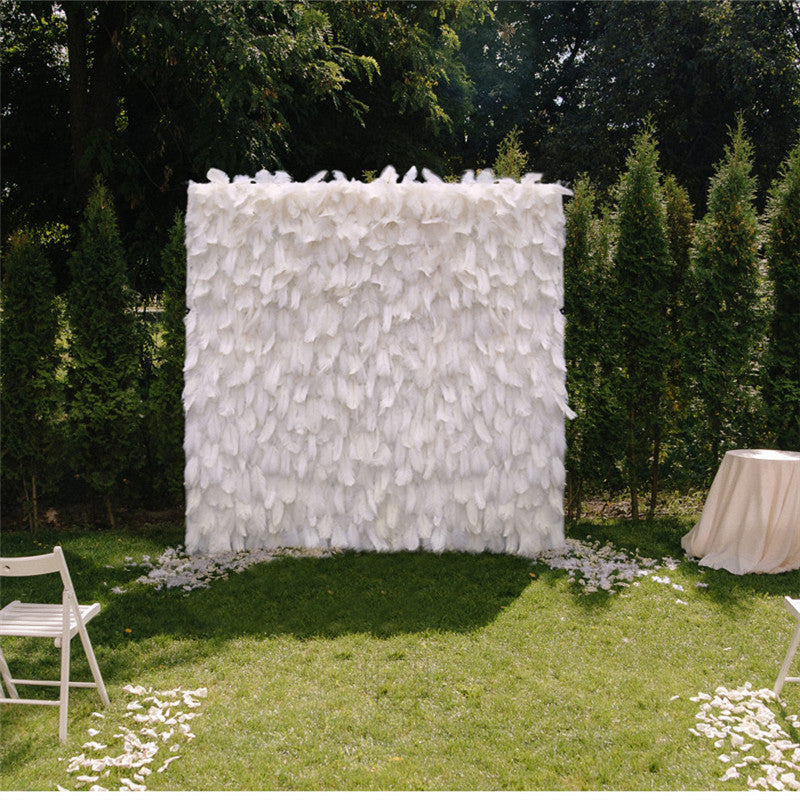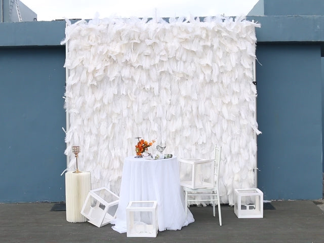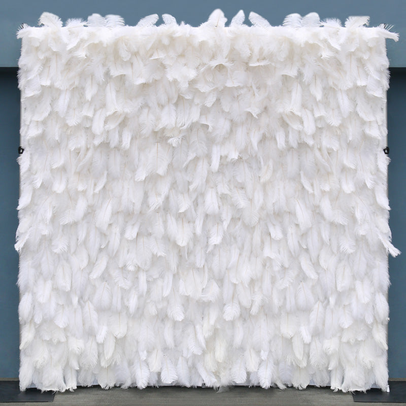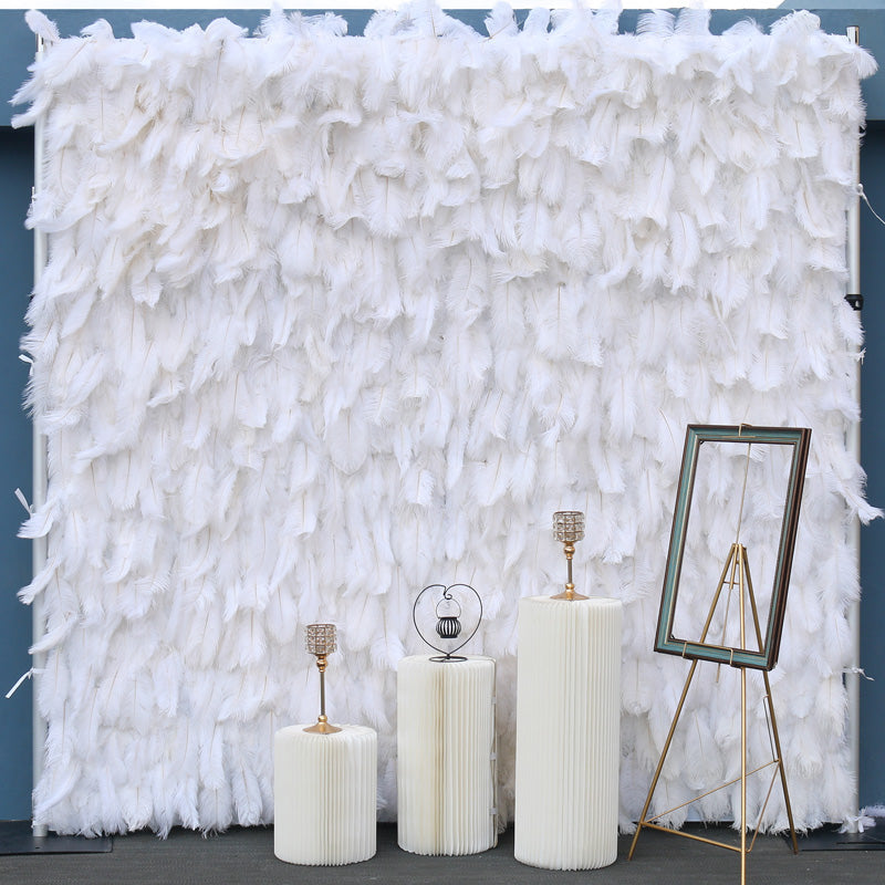 A7422 3D White Feather Fabric Rolling Up Curtain Flower Wall Wedding Event Decor