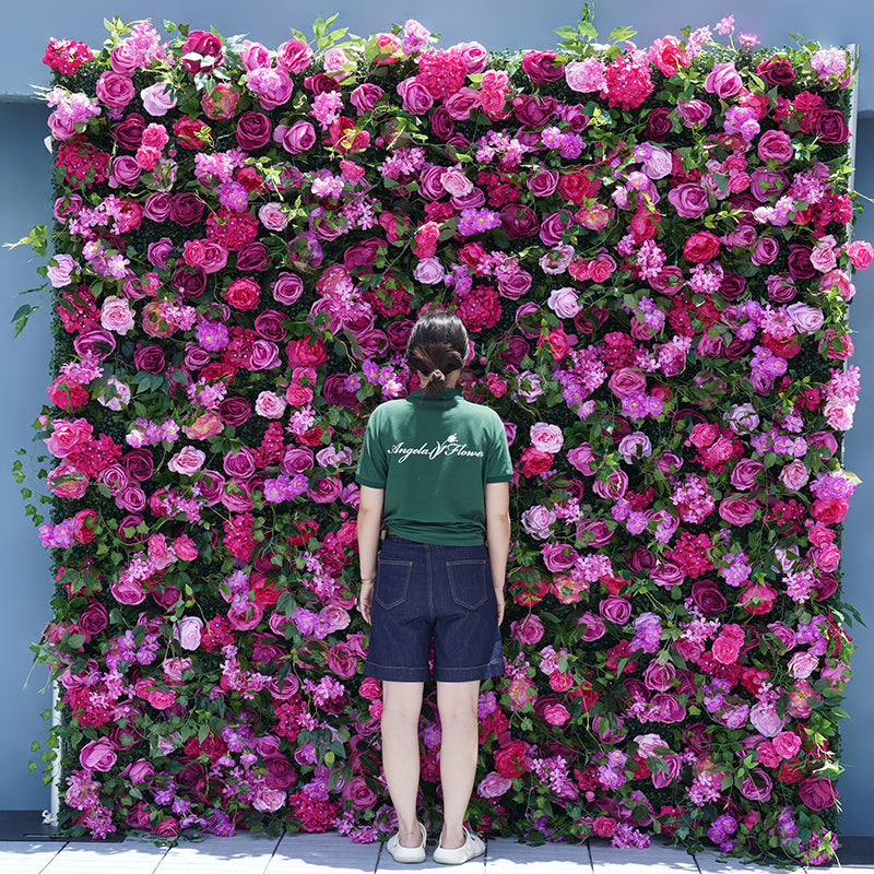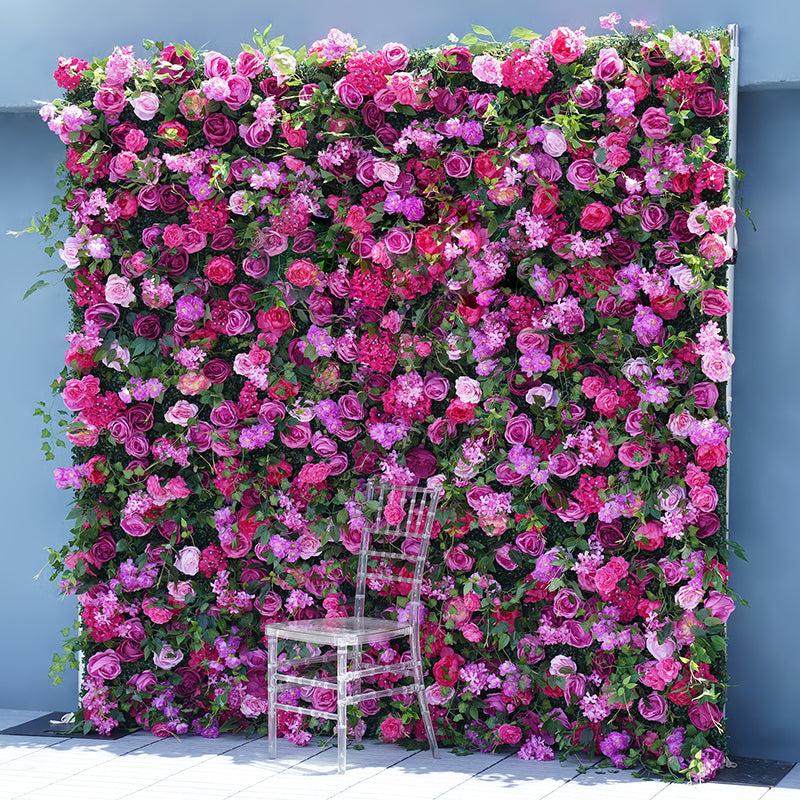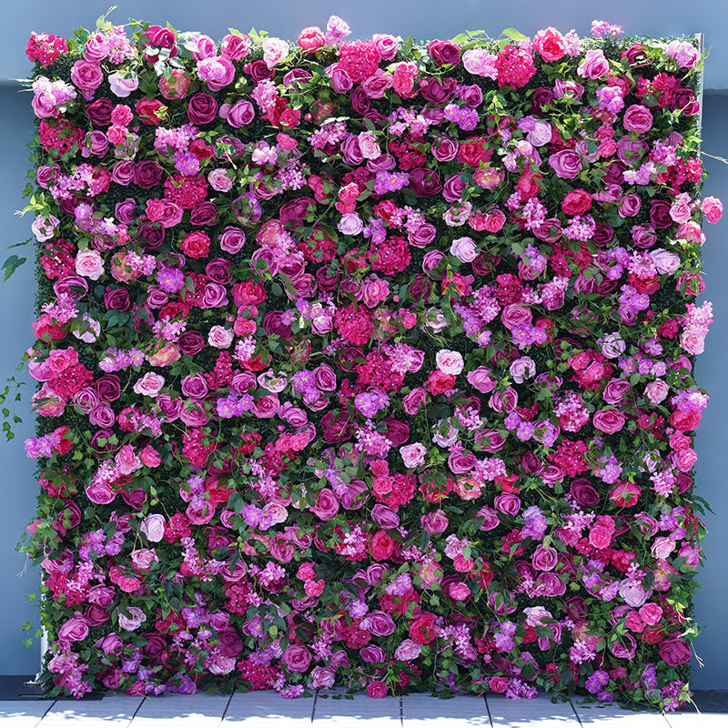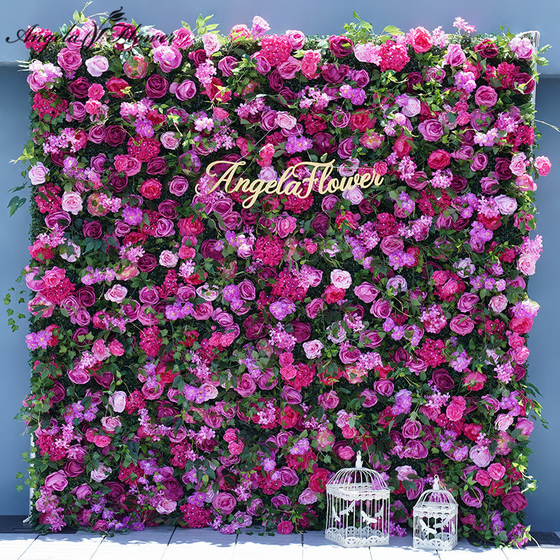 A7808 Red Purple Rose Peony Hydrangea Roll Up Cloth 5D Flower Wall Arrangement Wedding Backdrop Decor