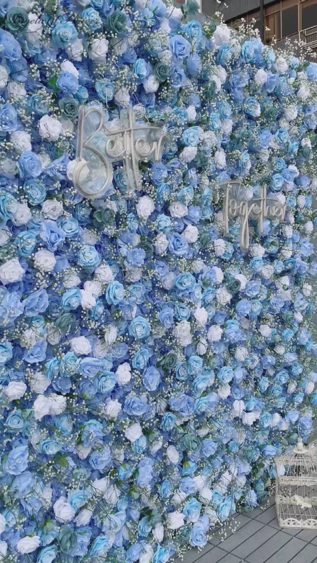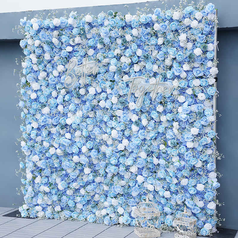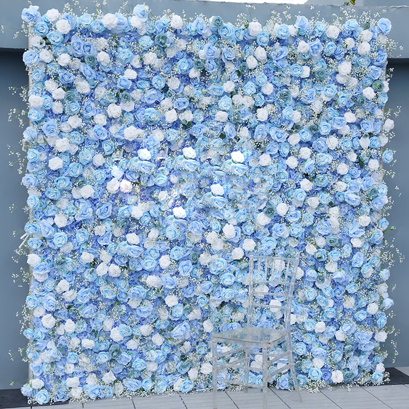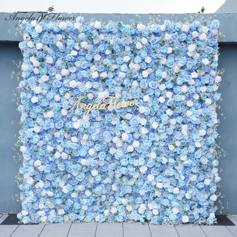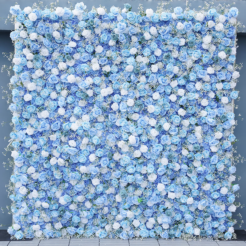 A7824 Wedding Backdrop Decor Blue Rose Babysbreath Cloth Floral Wall