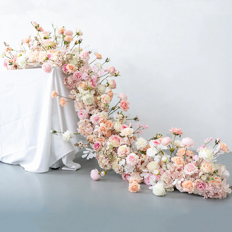 A7970 Wedding decoration table Run Pink Purple flower row Rose Delphinium