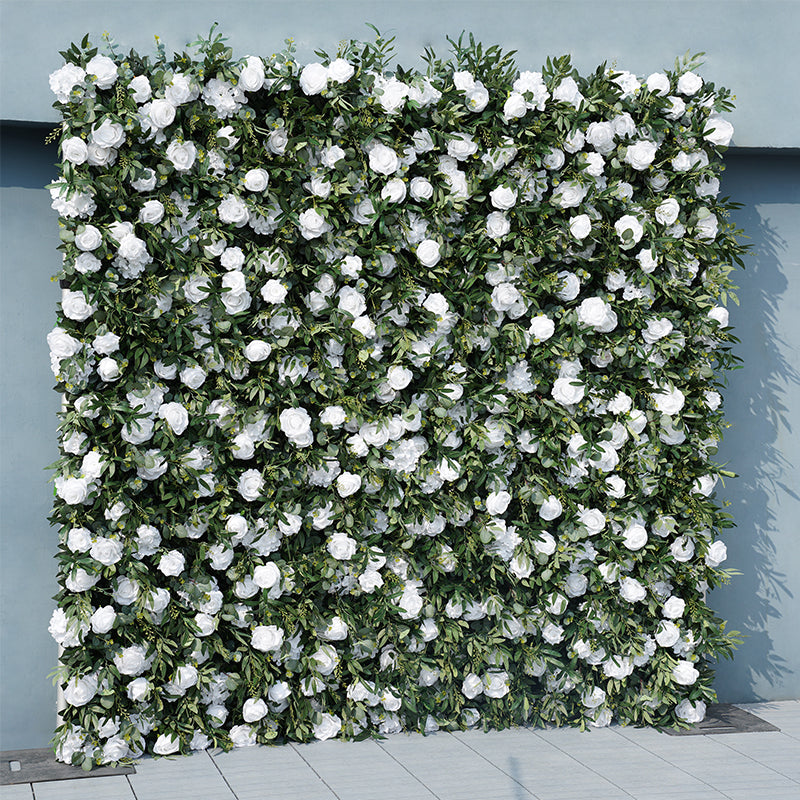 A8027 Wedding Backdrop Decor Green Willow Leaves White Rose Fabric Cloth Flower Wall