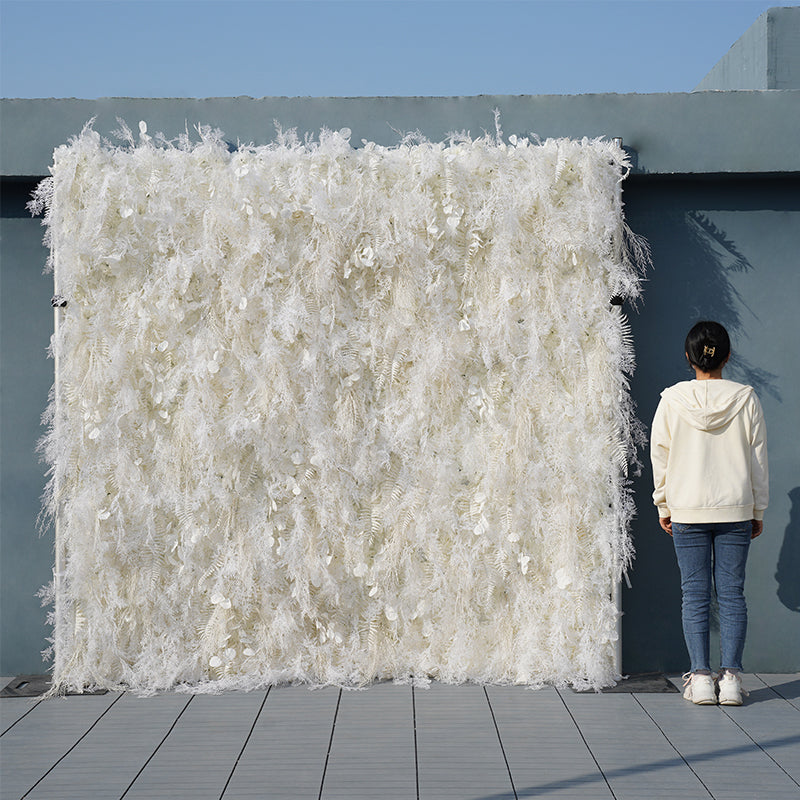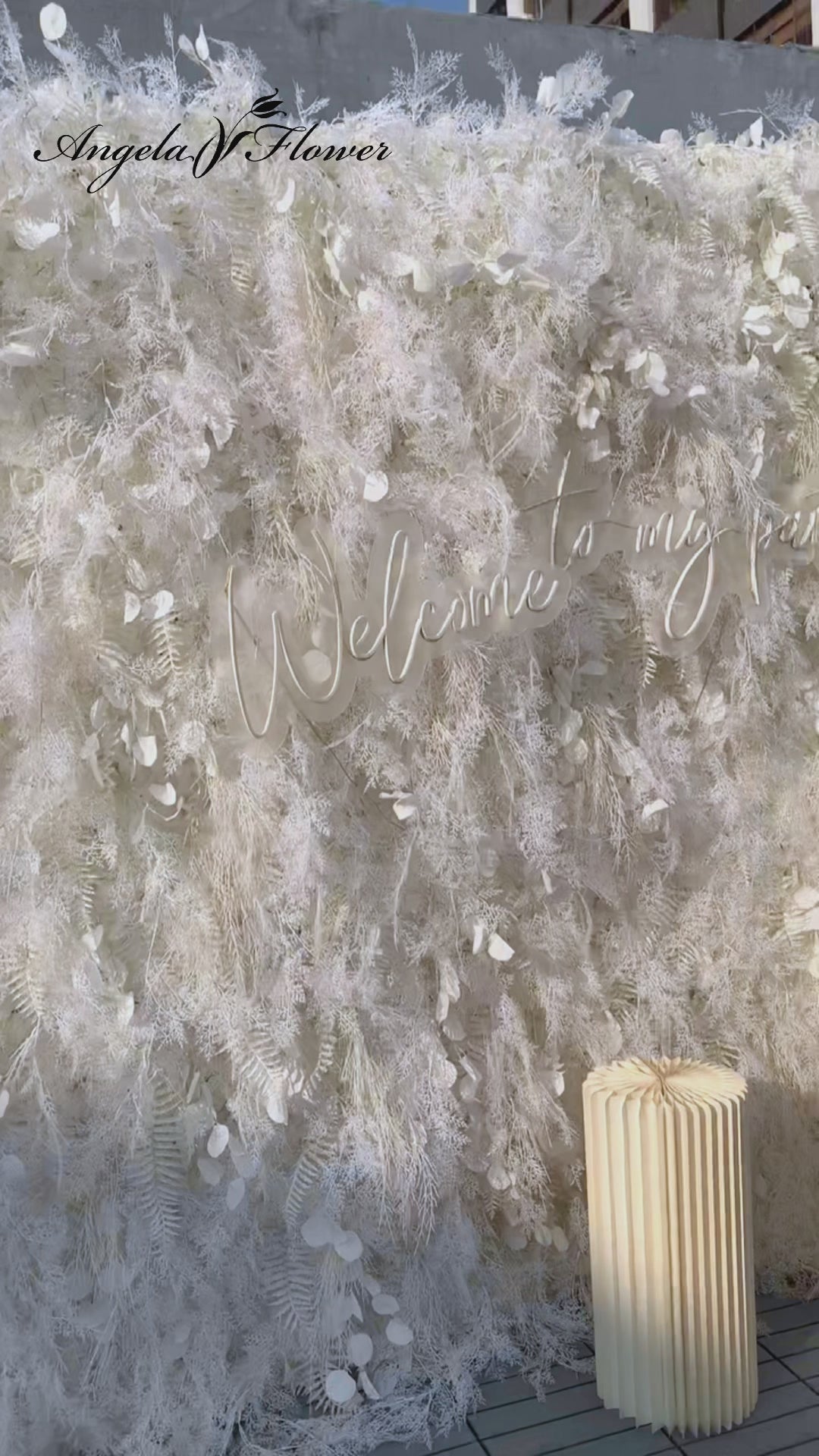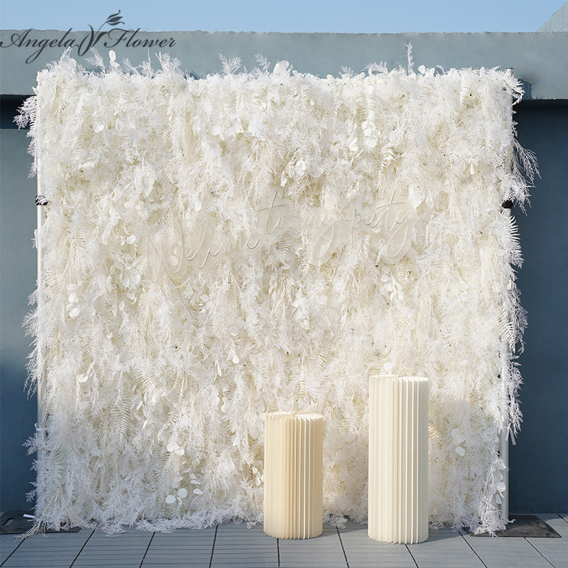 A8038 White Mist Grass Fern Leaf Wedding Backdrop 5D Fabric Cloth Flower Wall