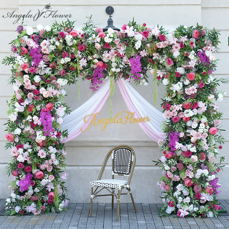 A8775 Pink Greenery Cloth Base Flower Row Decor Wedding Backdrop Square Frame