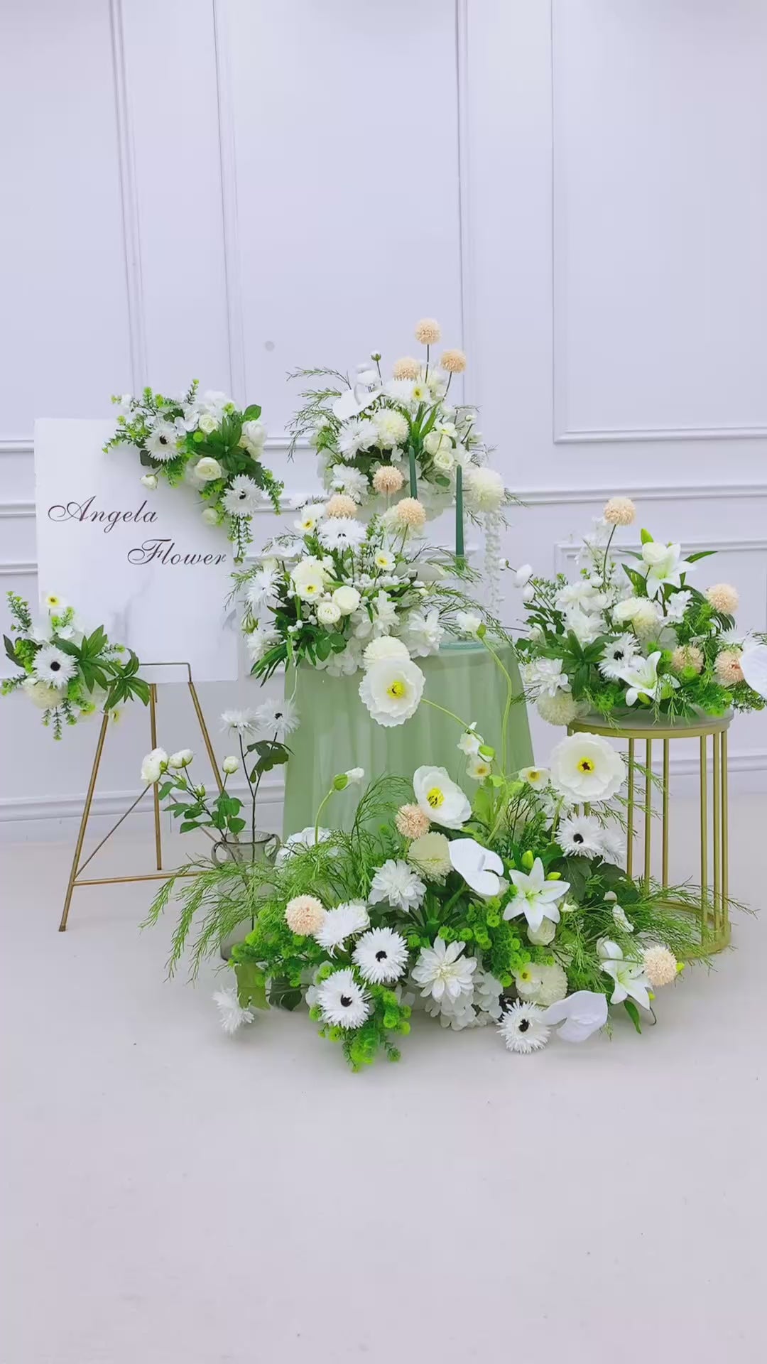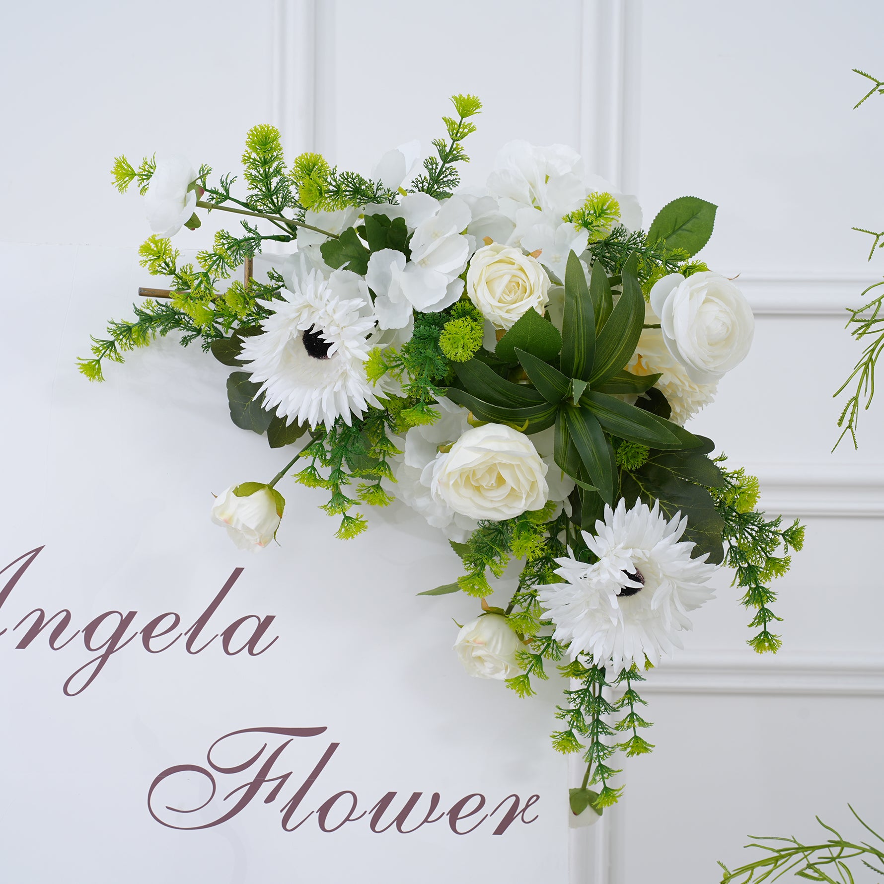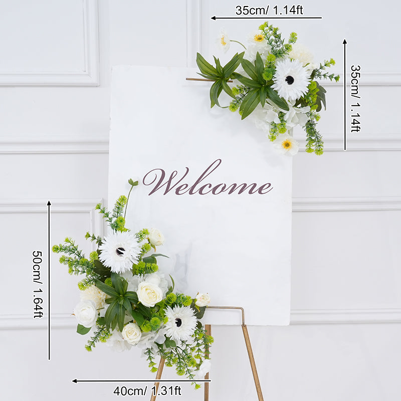 A8821 White Greenery Floor Row Hang Table Floral Welcome Sign Flower Wedding