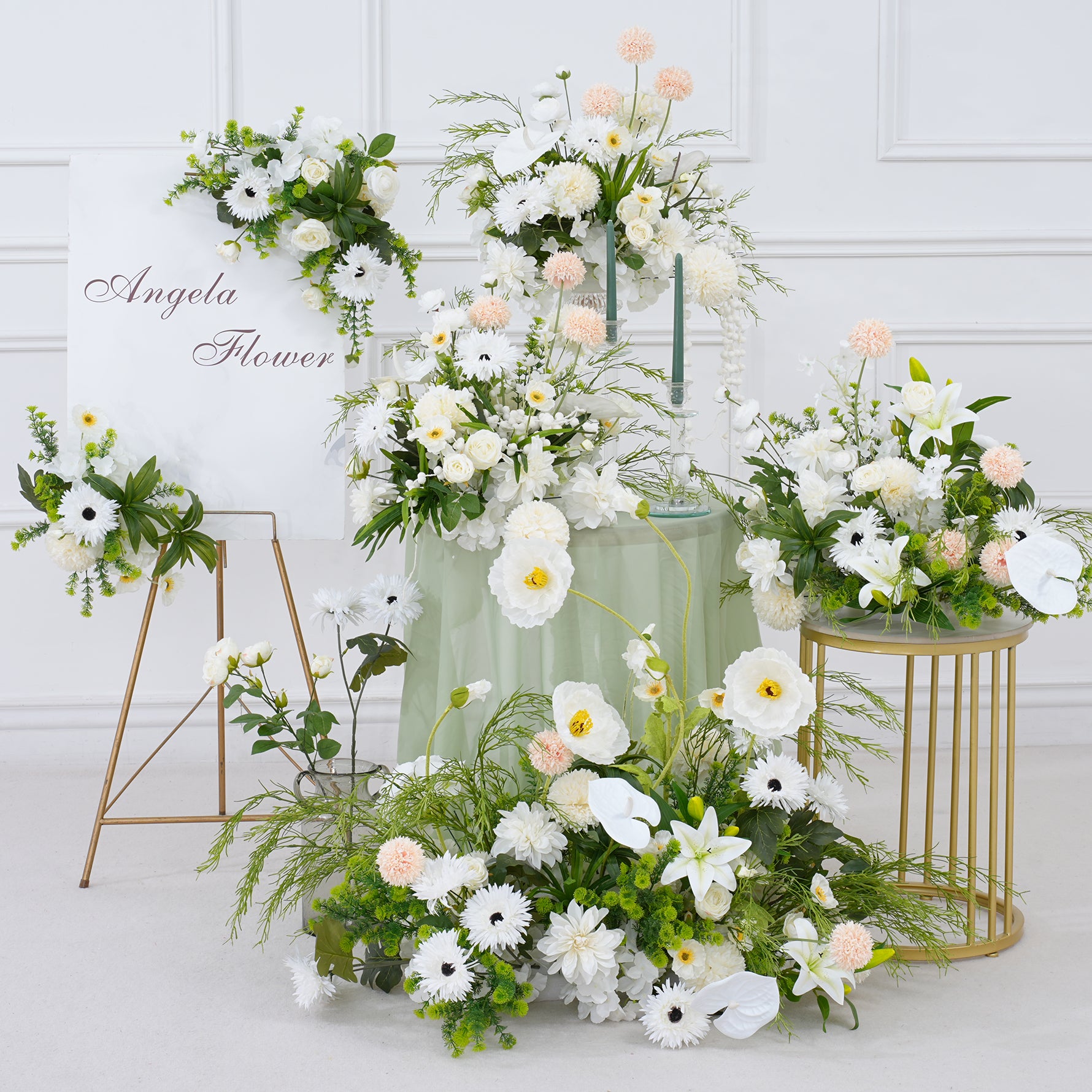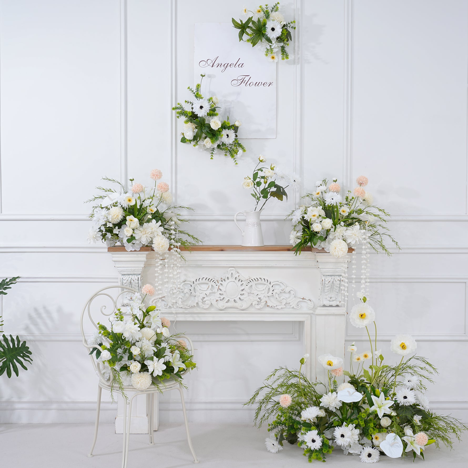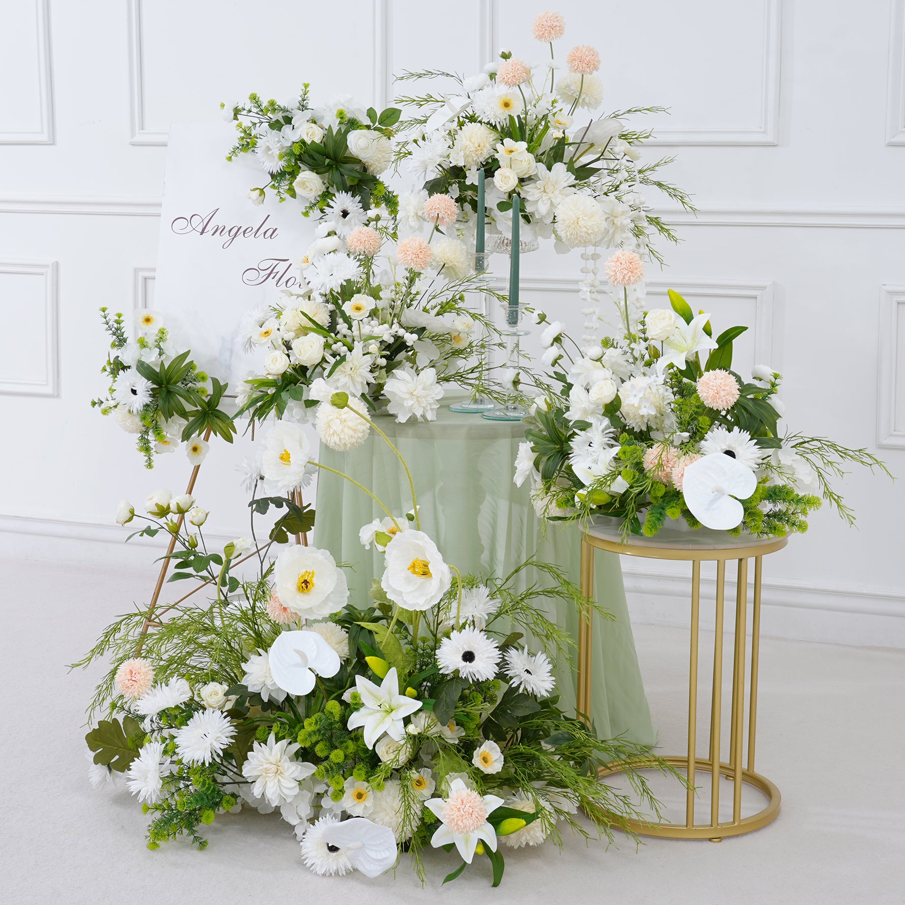 A8821 White Greenery Floor Row Hang Table Floral Welcome Sign Flower Wedding