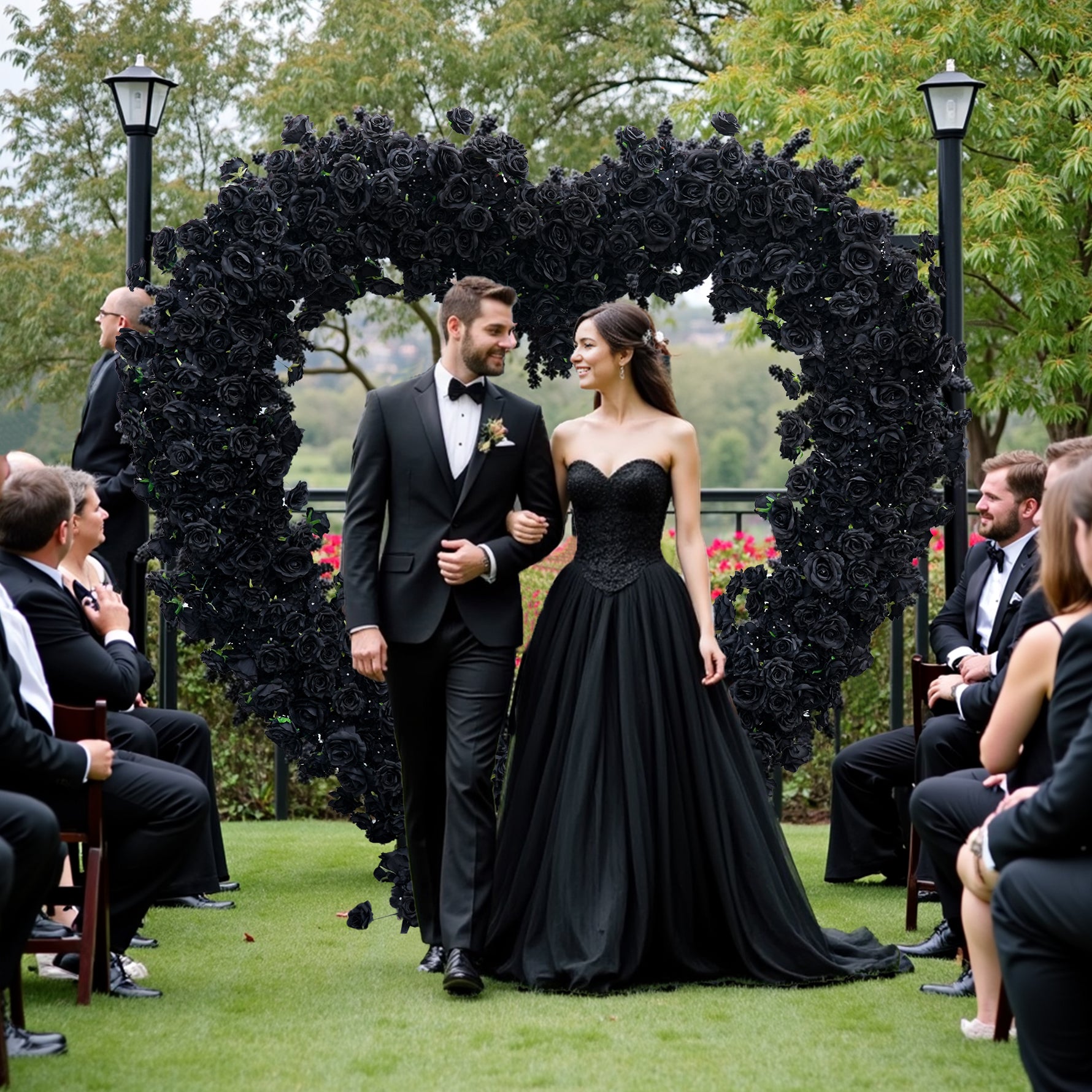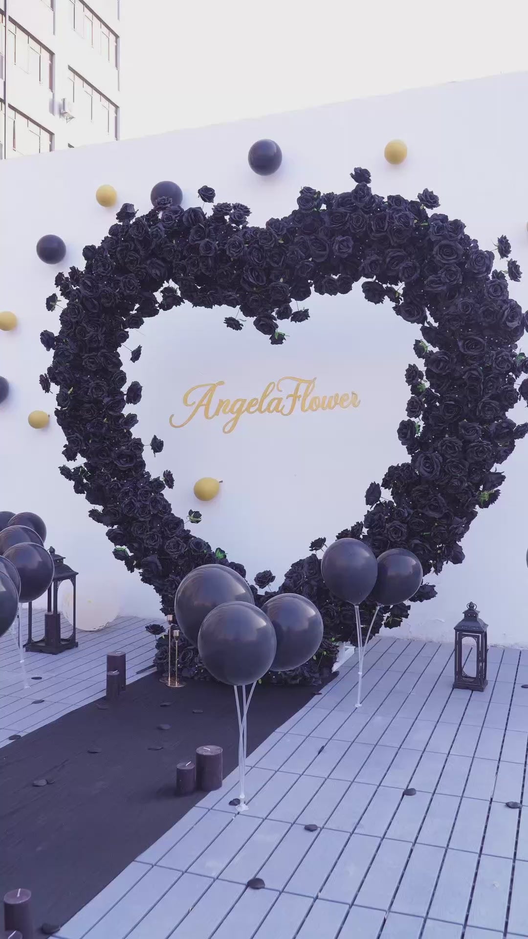 Color Inspiration: The Heart-Shaped Flower Arch is made of noble and luxurious black roses, a non-traditional, bold design full of character that conveys distinctive style and emotion, creating a wedding that the couple will never forget.