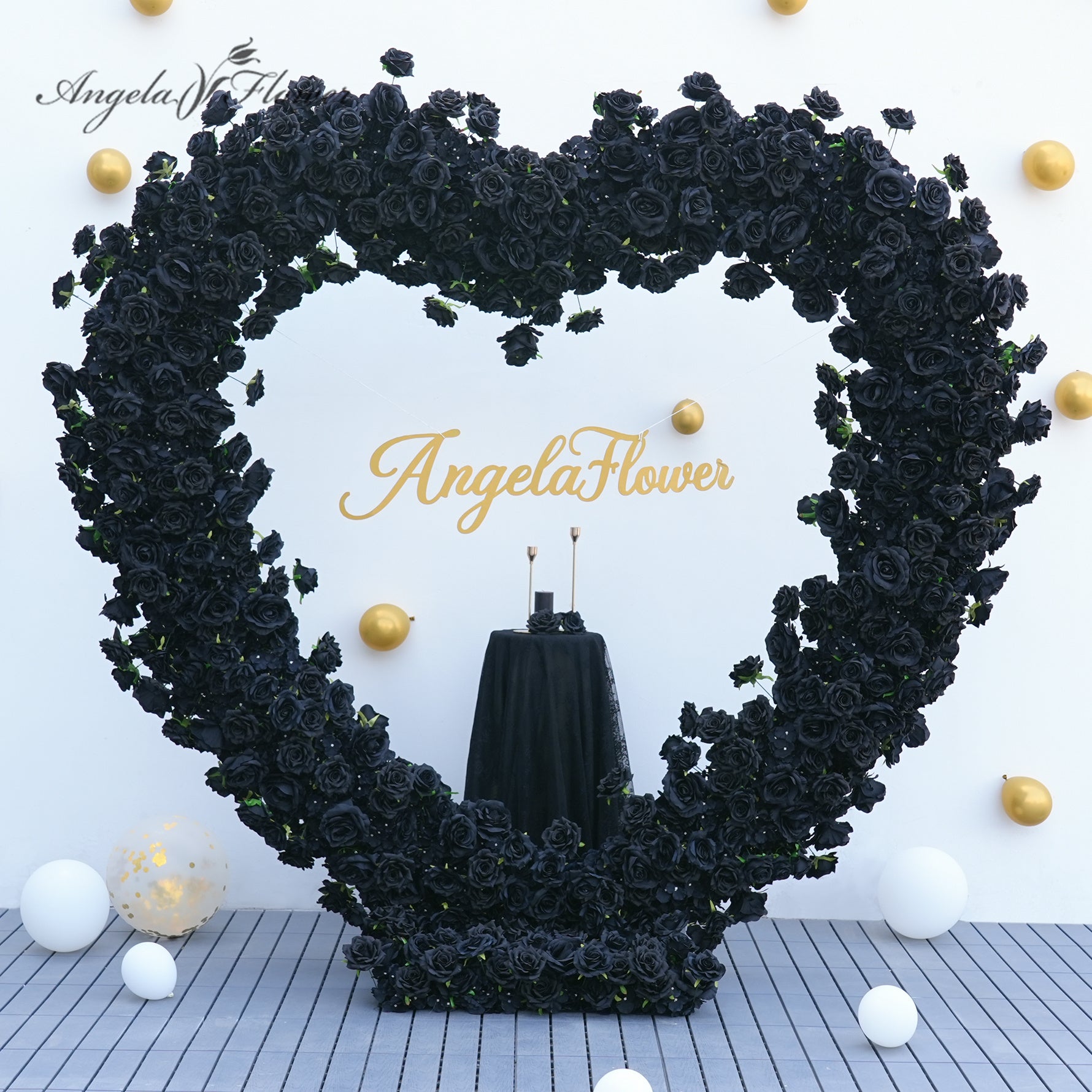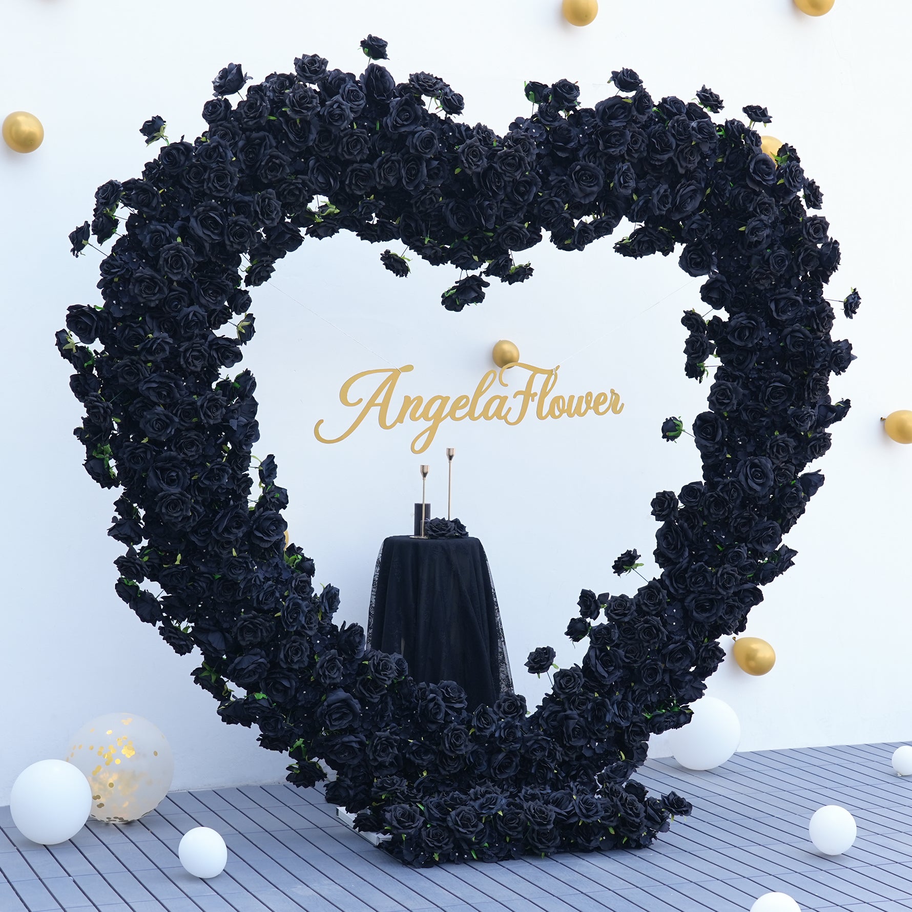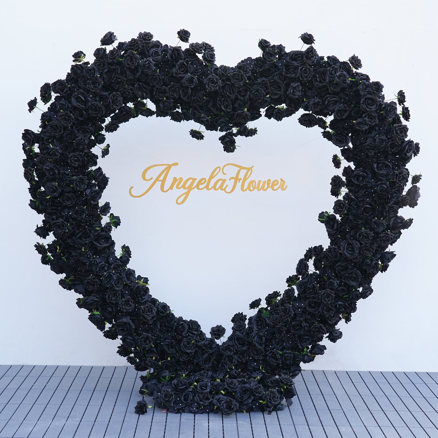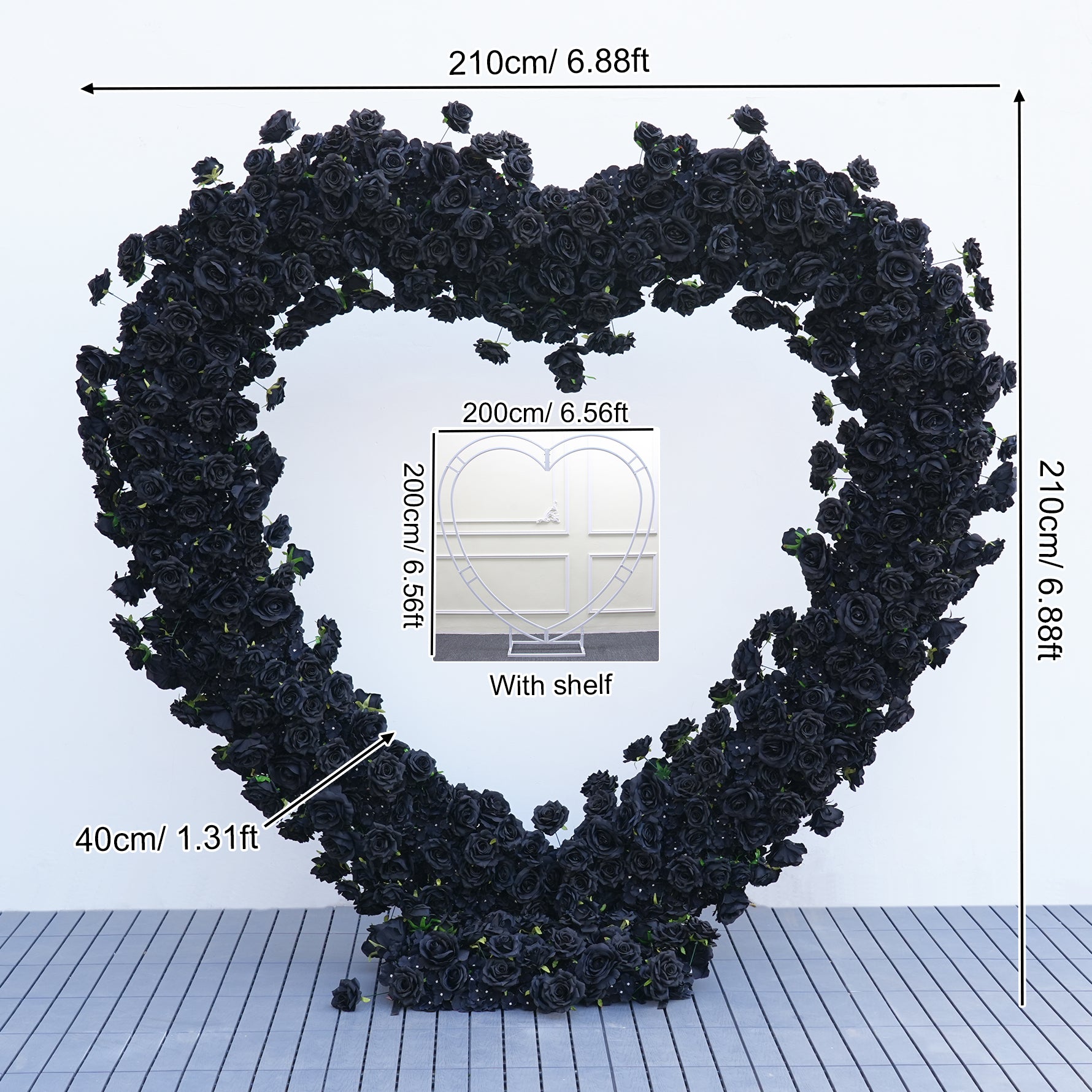 A8878 Luxury Black Rose Cloth Base Heart-Shaped Arch Wedding Backdrop Decor Props
