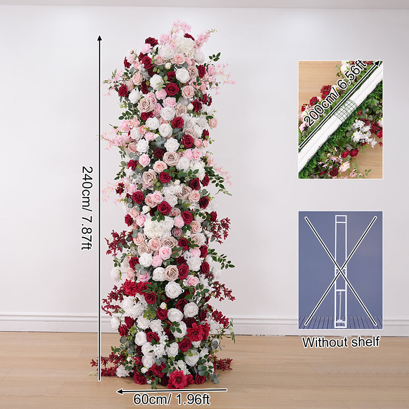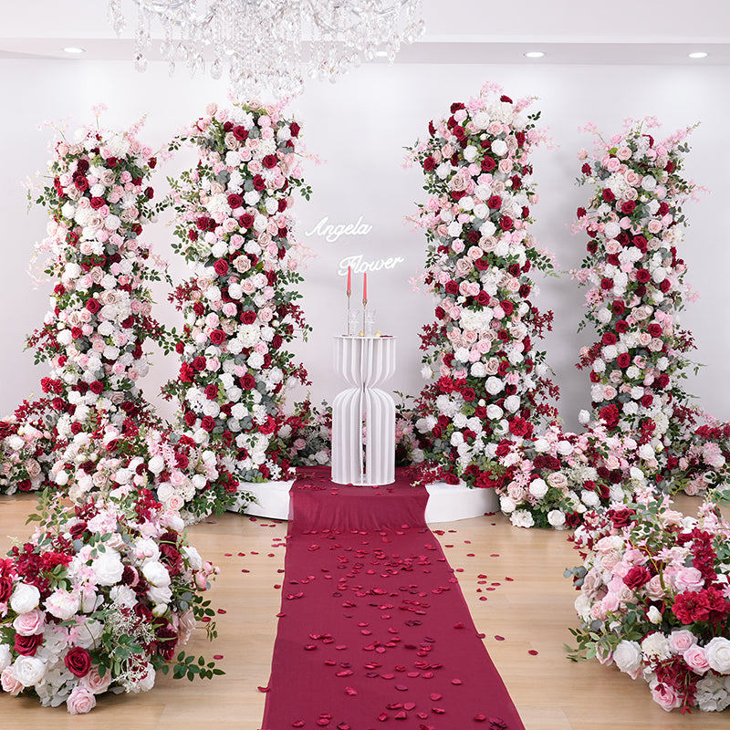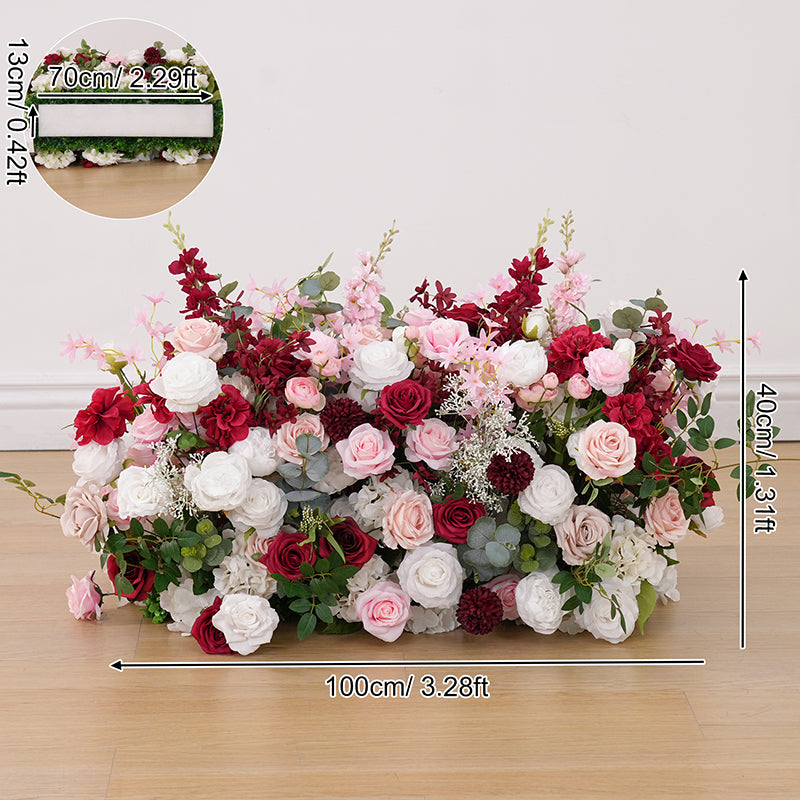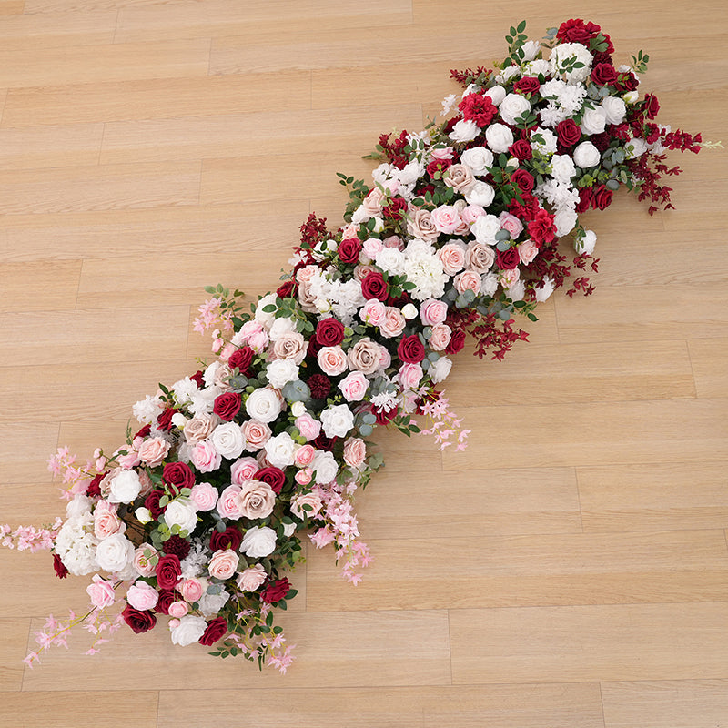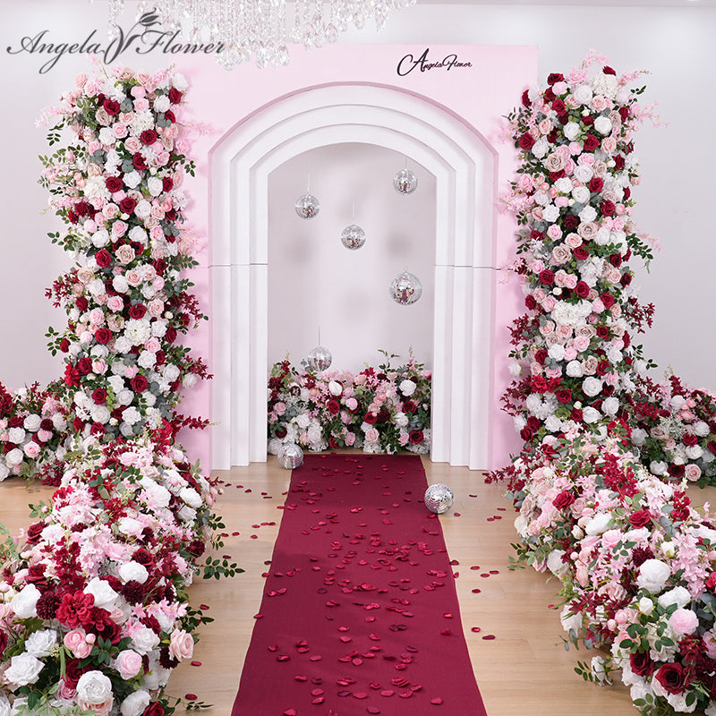 A8889 Bean Pink Wine Red Greenery Flower Row Wedding Backdrop Aisle Floor Floral