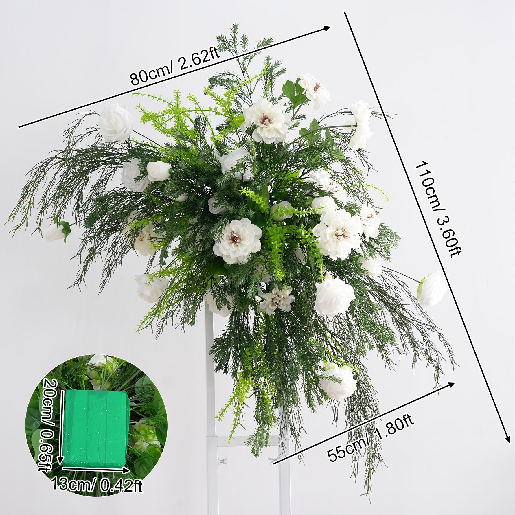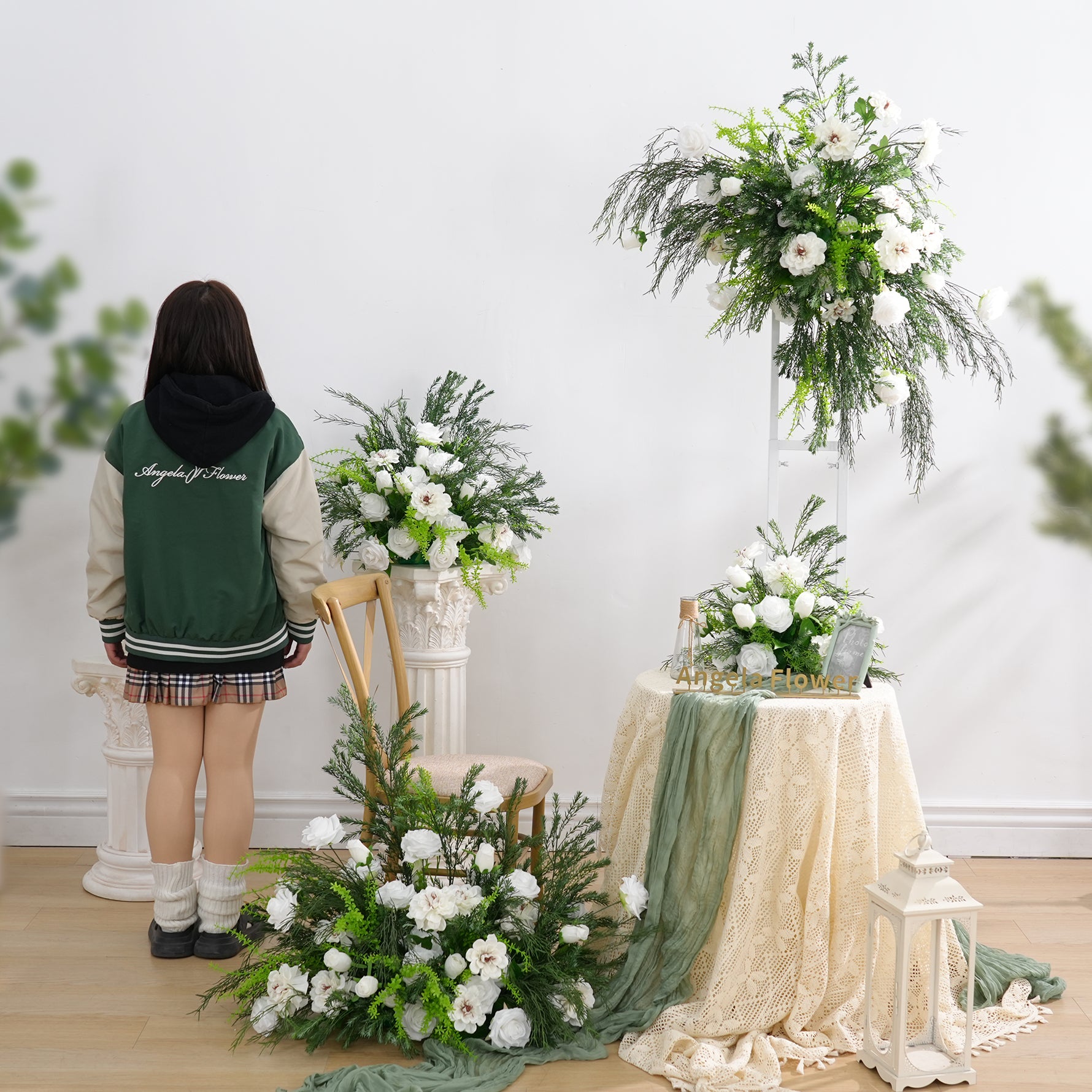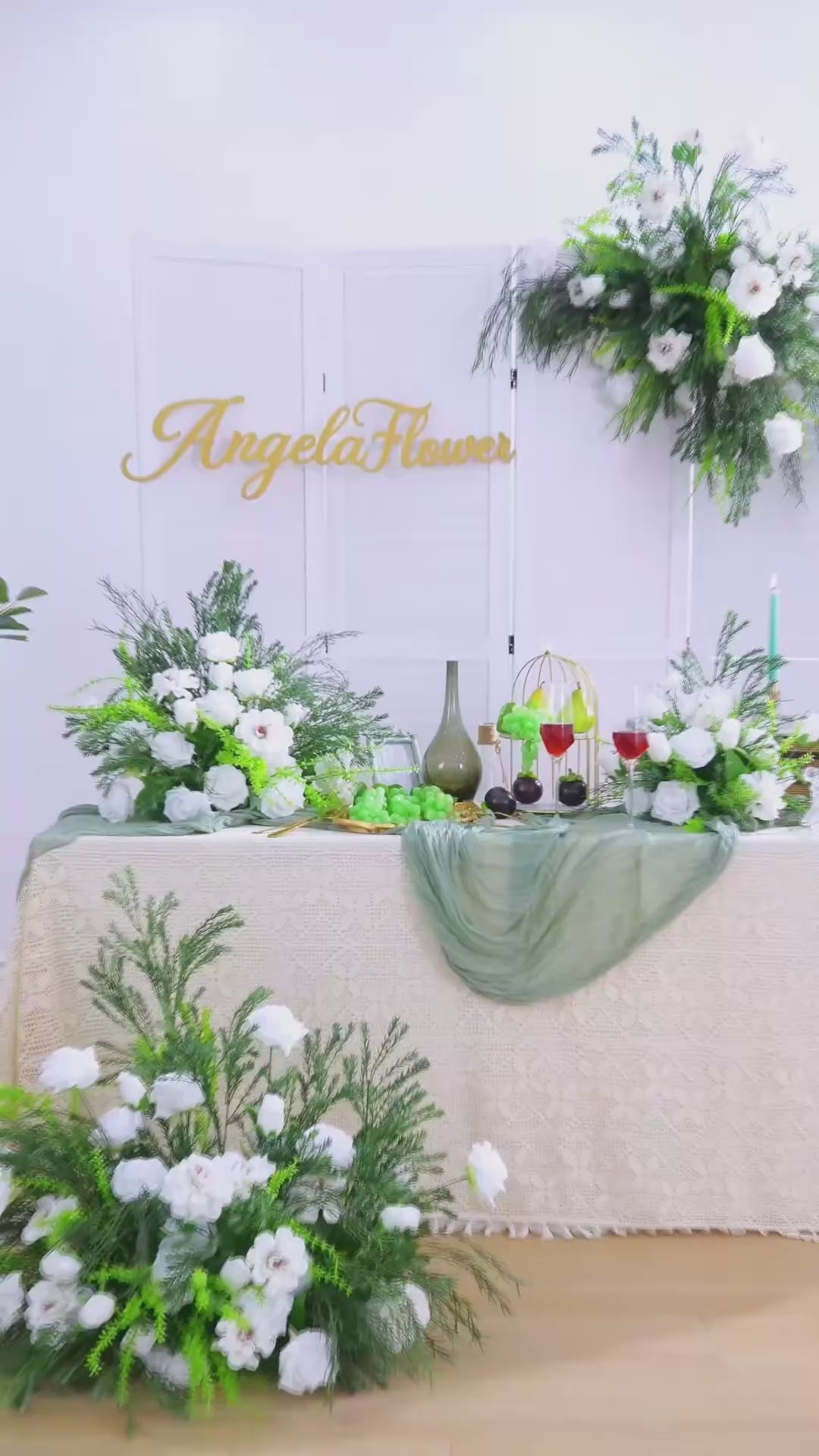 Color Inspiration: Inspired by the lush green spring. Vibrant grass, full and fluffy, with white roses representing pure love and some cute little buds, lively but not too cute, perfect for all occasions, whether outdoor or indoor, green and white is a timeless choice for your romantic wedding.