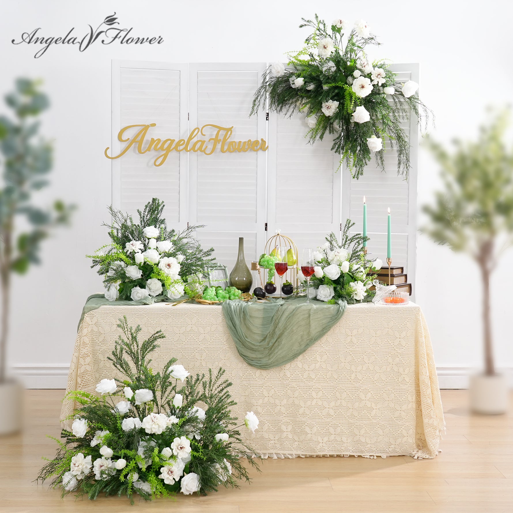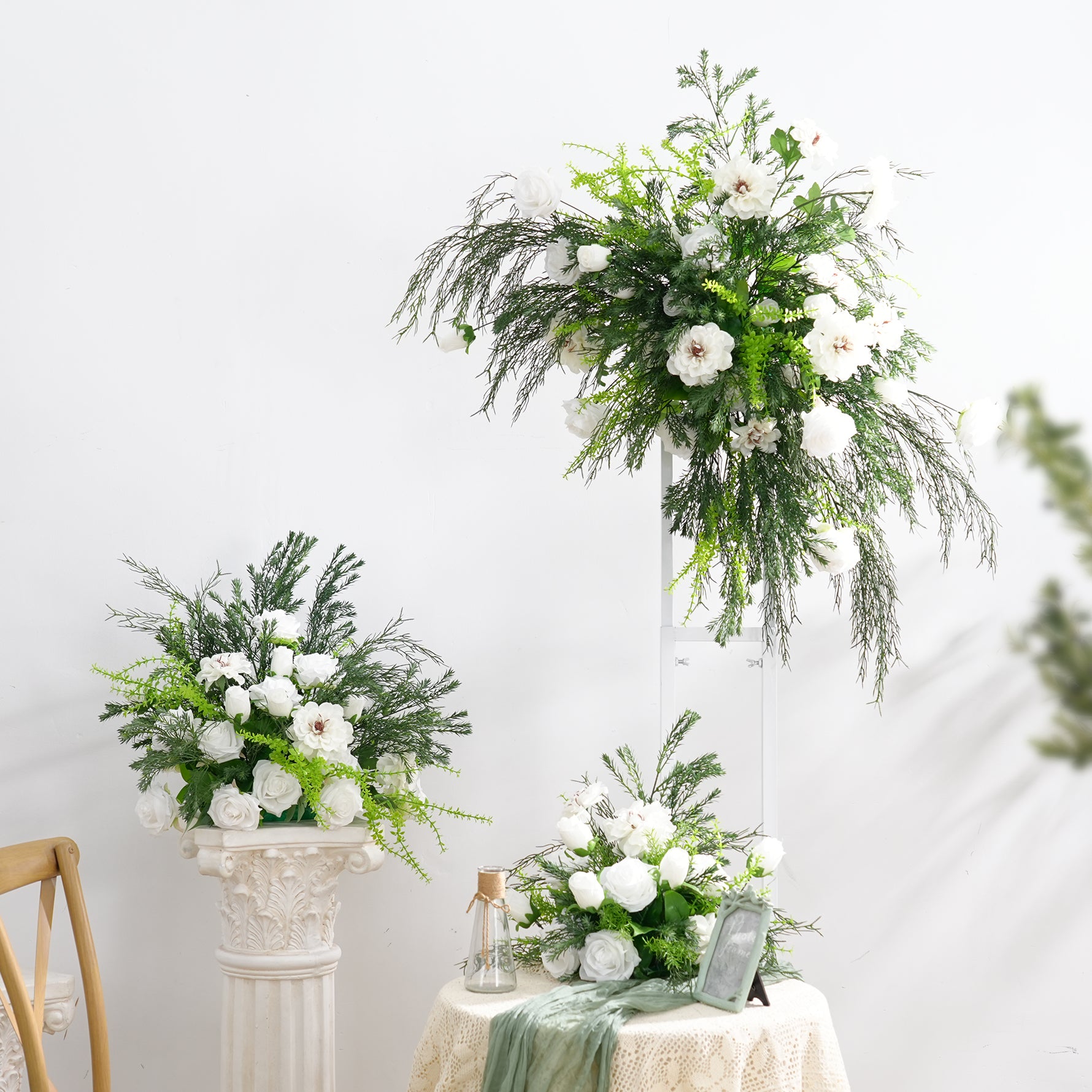 A8896 White Rose Greenery Hang Floral Table Centerpieces Aisle Flower Decor Props