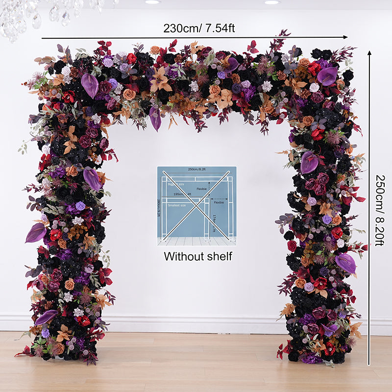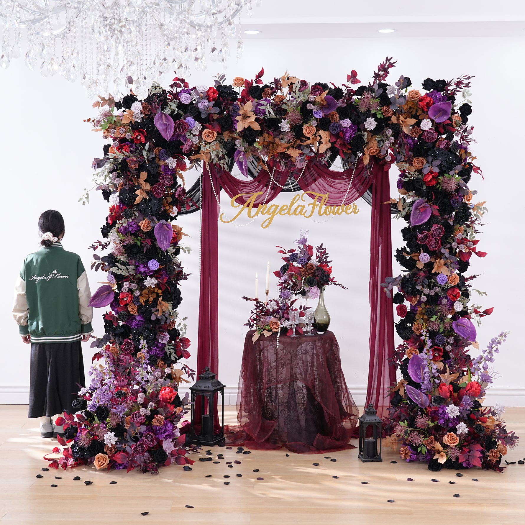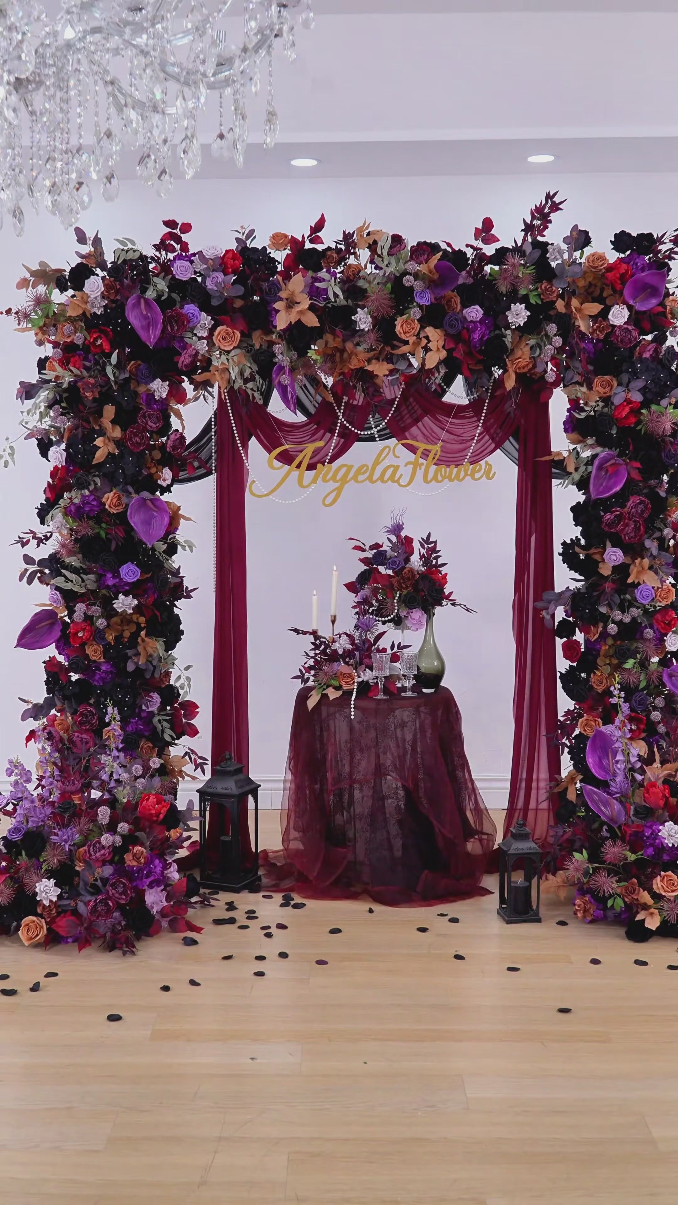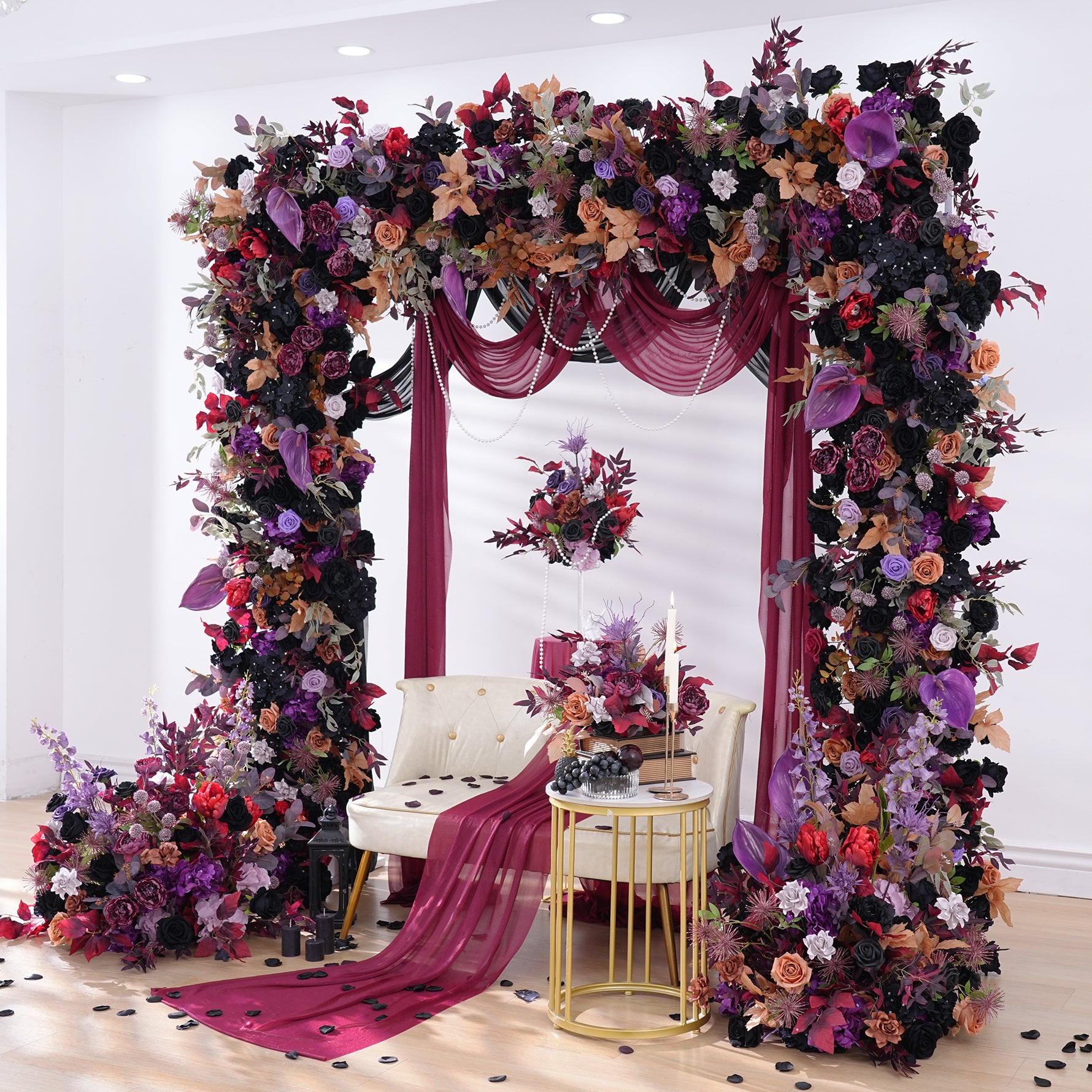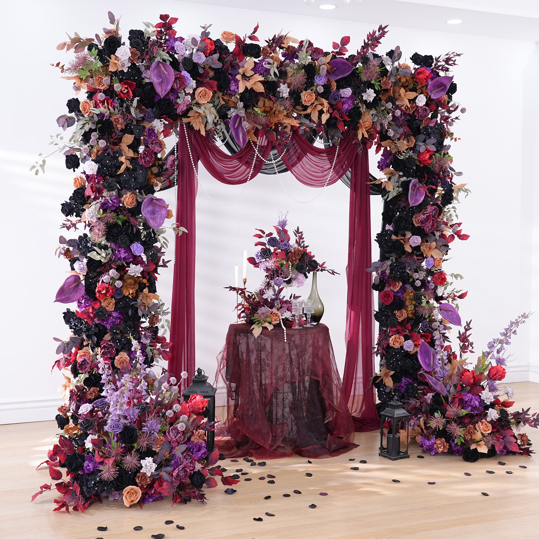 Color Inspiration: The black and purple arch combines the characteristics of black and purple to look luxurious and high-end, yet romantic and mysterious at the same time. A black and purple arch can be used as a focal point to direct the guests' attention and add layers to the wedding. Add a romantic and mysterious atmosphere to the wedding.
