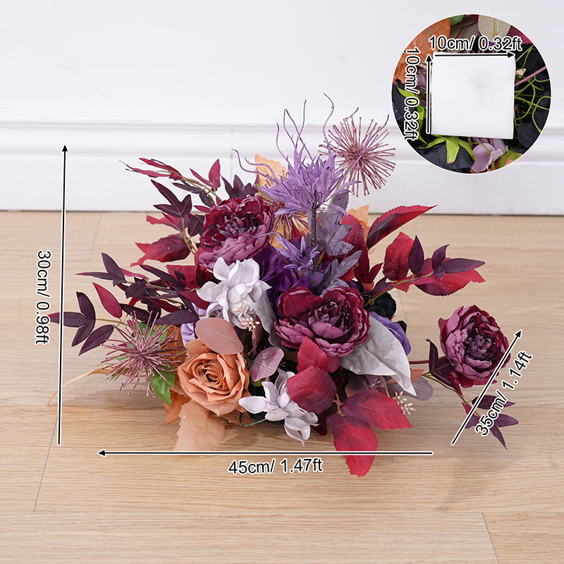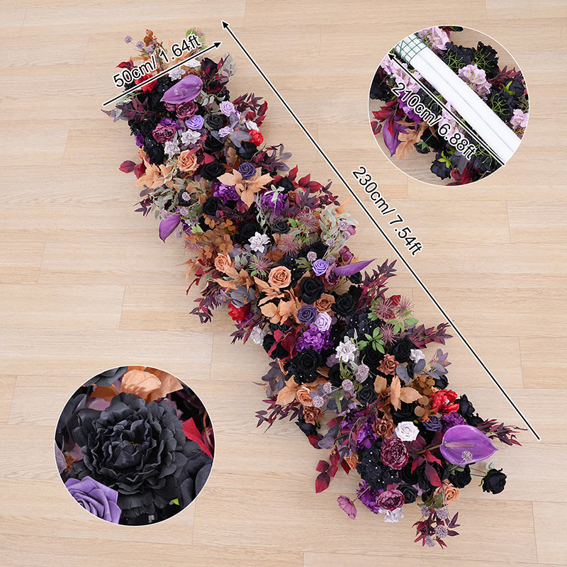 A8908 Black Purple Floral Row Table Aisle Flower Decor Wedding Backdrop Square Frame