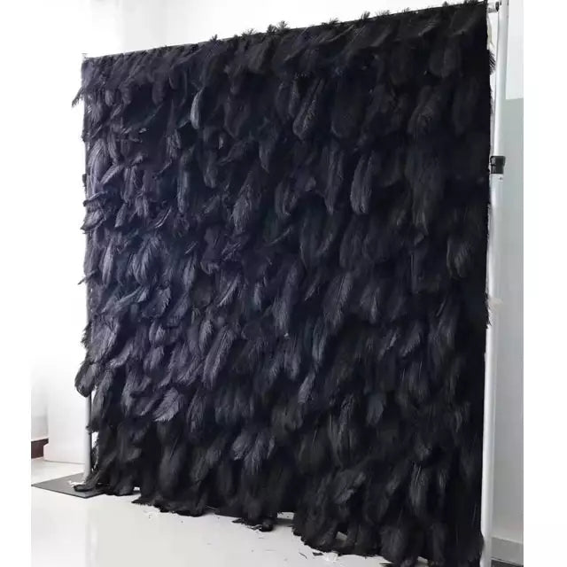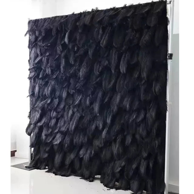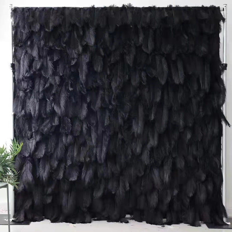 Black Feather Cloth Flower Wall Wedding Background Decoration Props A049 A7422