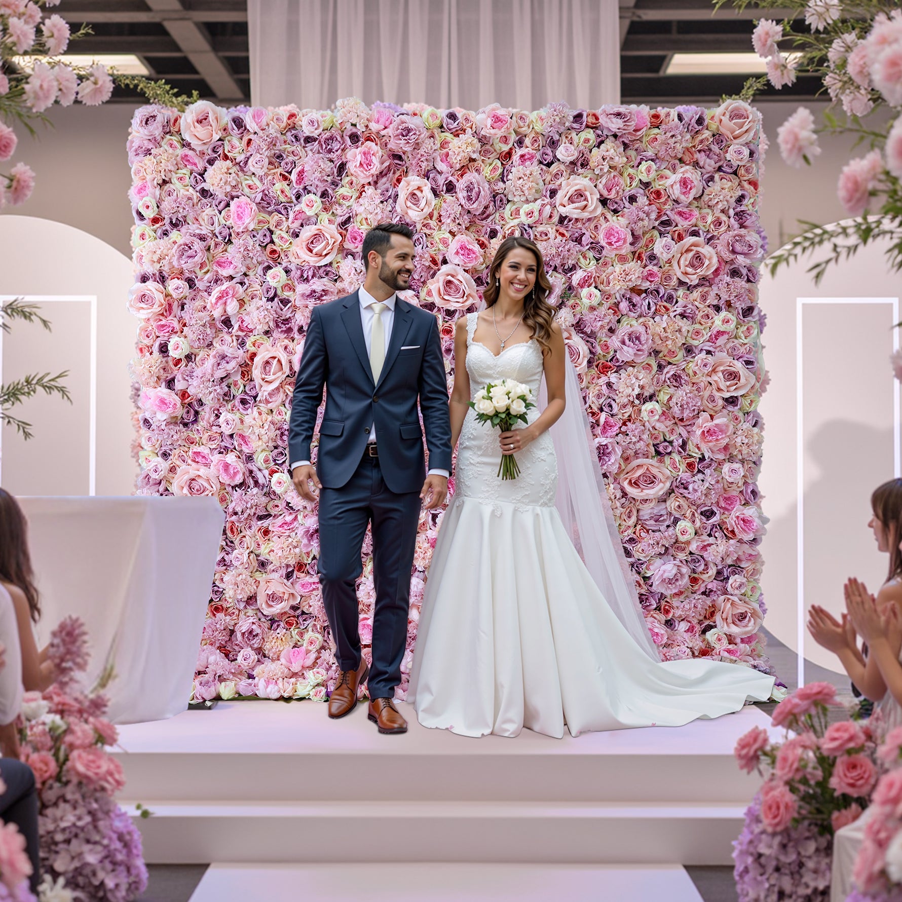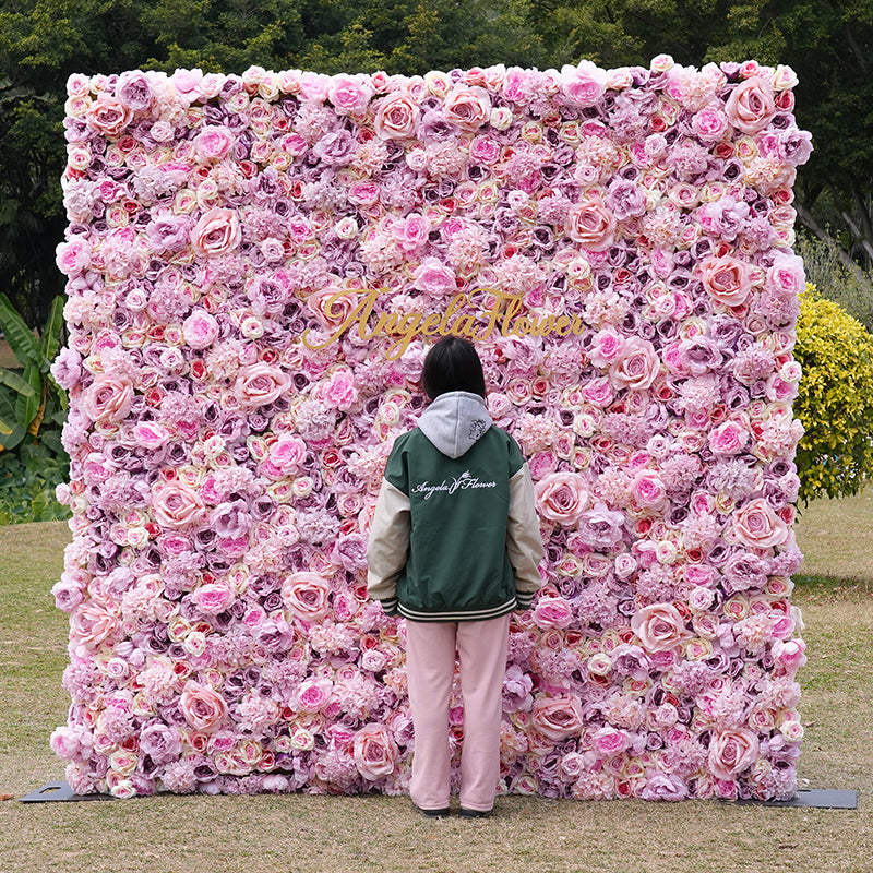 CB048 Pink Peony Rose Hydrangea 5D Flower Wall Cloth Base Wedding Decor Props