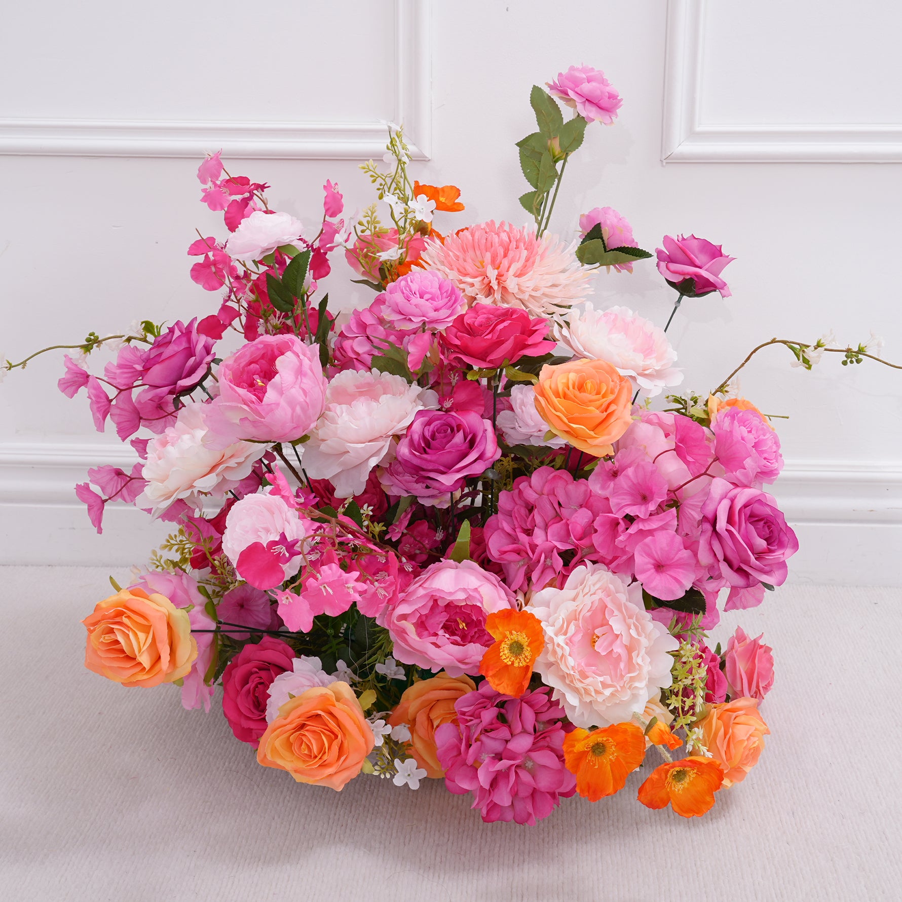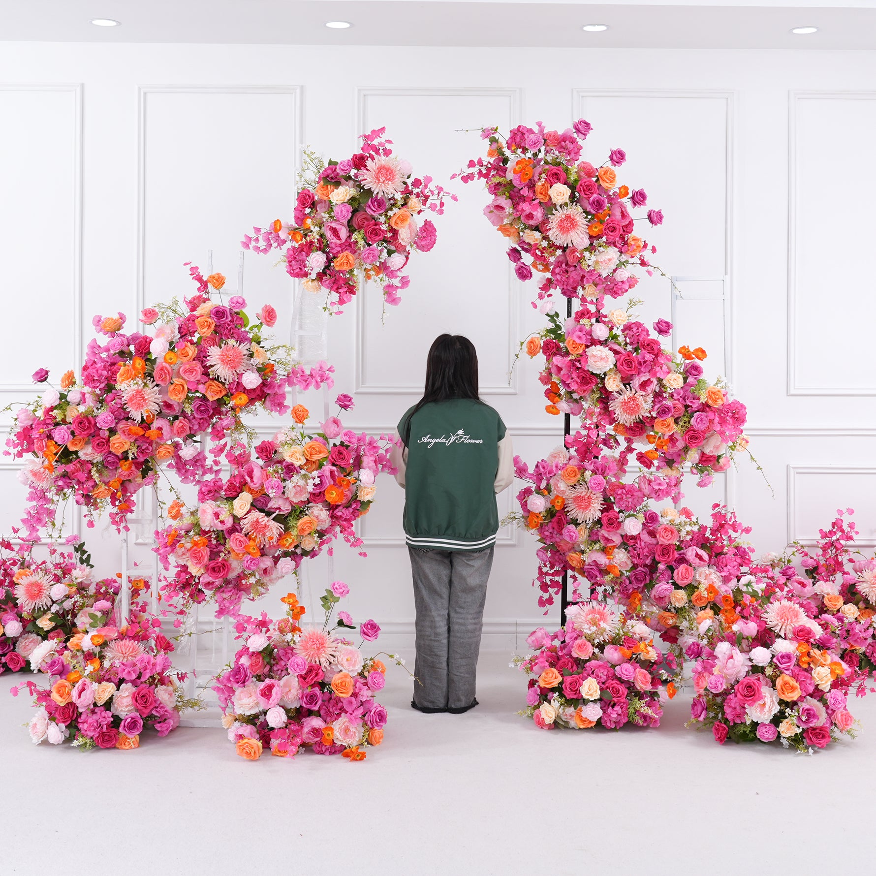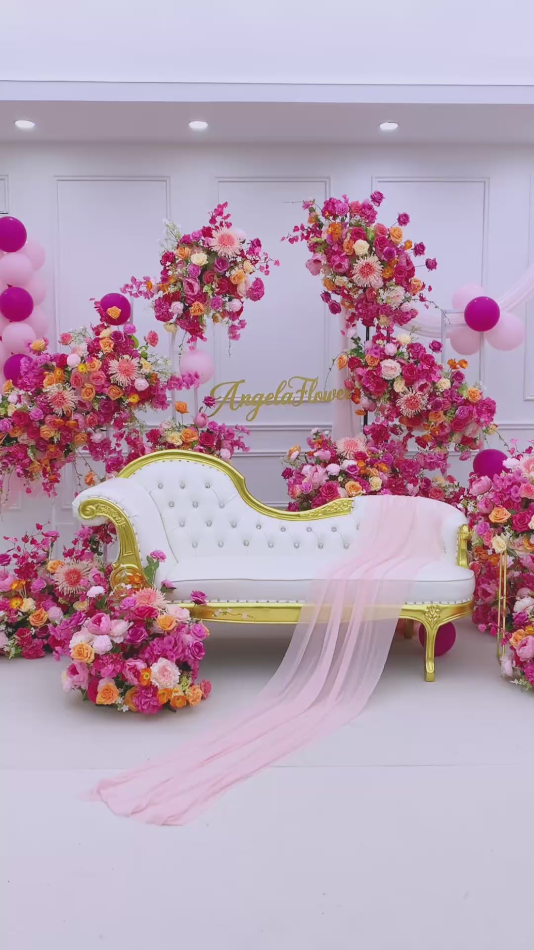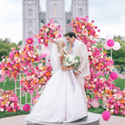 Color Inspiration: Inspired by the vibrant spring season. Hot pink flowers coupled with orange roses, both equally bright and colorful but cleverly blended together, for the wedding to bring beautiful colors. Create a sweet and thrilling romantic wedding for you.