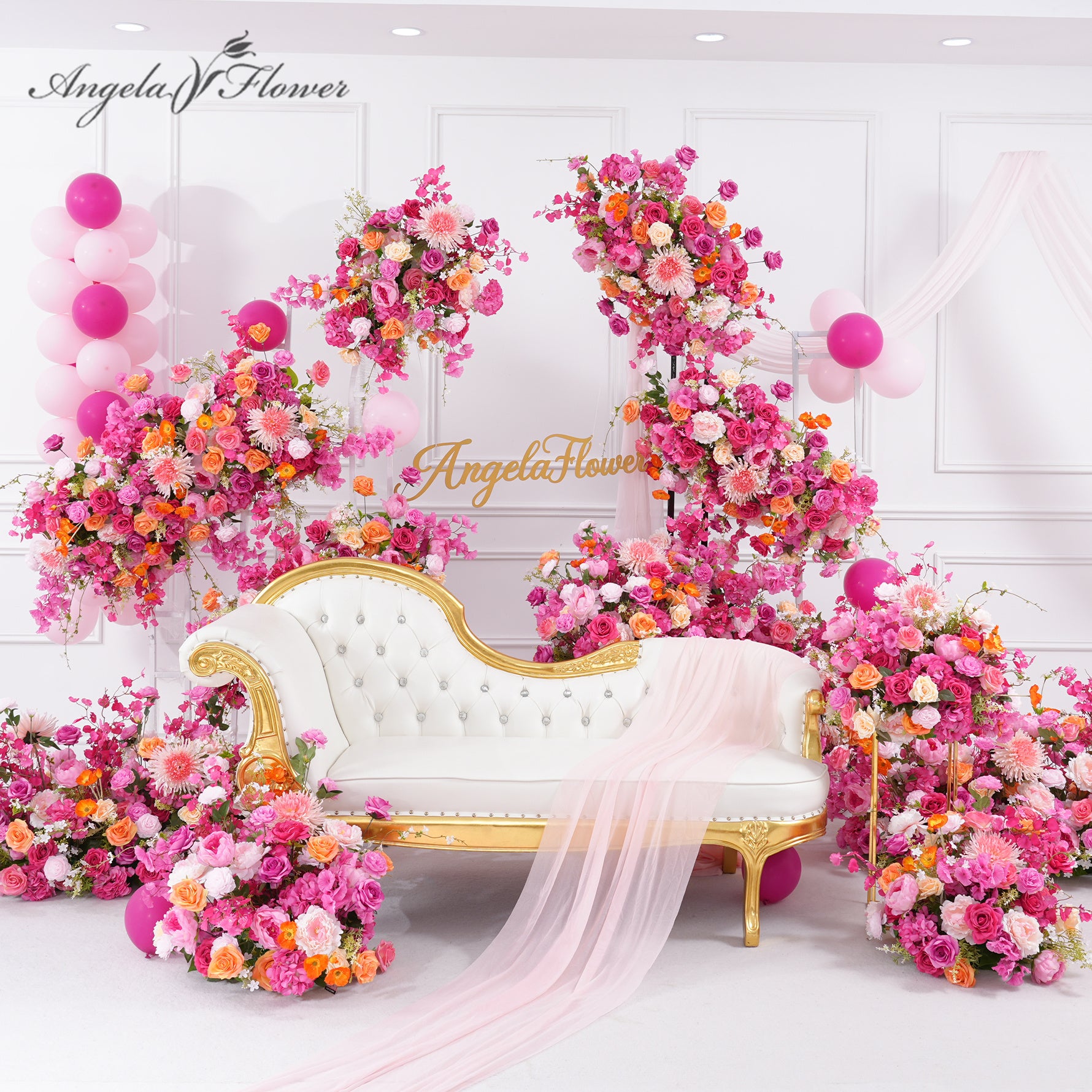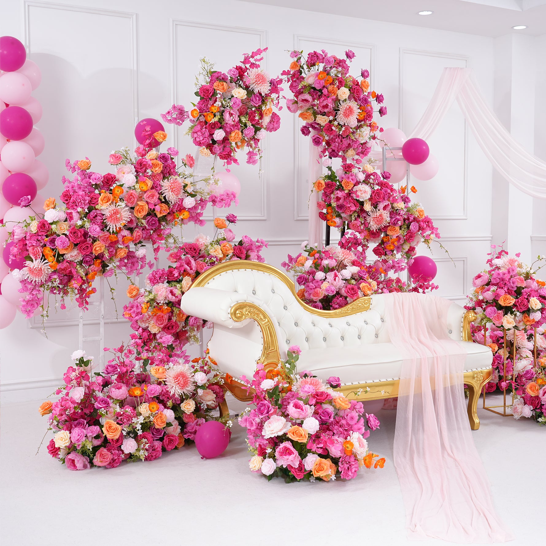 A8823 Hot Pink Chrysanthemum Rose Hang Row Floor Flower Wedding Backdrop Props