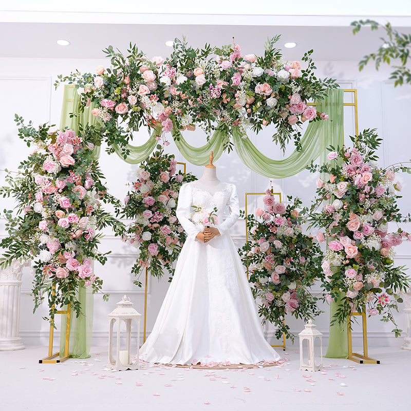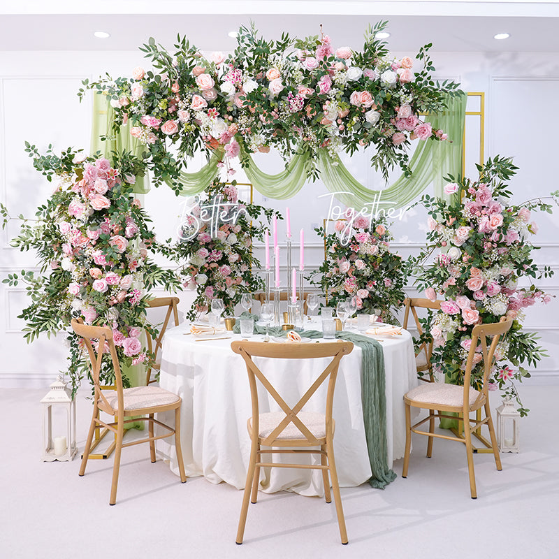 Color Inspiration: The inspiration comes from the pink flowers blooming in the lush forest on a romantic spring day. The pink series of rose peonies and vivid white babysbreath add a romantic atmosphere to this spring wedding. When the newlyweds step into the carefully arranged wedding venue hand in hand, their faces will be filled with happy smiles, and they cannot help but marvel at how wonderful it is.